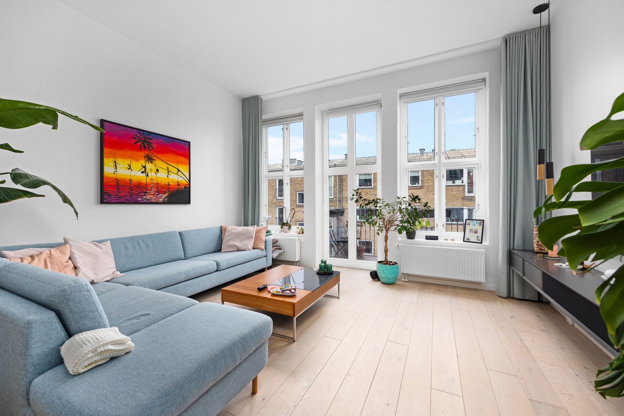 På en attraktiv adresse på Holmbladsgade udbydes denne indflytningsklare og veldisponerede lejlighed, hvor lys, luft og udsigt går op i en højere enhed. Her får du et imponerende langt kig ud over Kløvermarken og videre mod byens skyline, en udsigt, der giver en helt særlig ro i hverdagen og som virkelig skal opleves live.