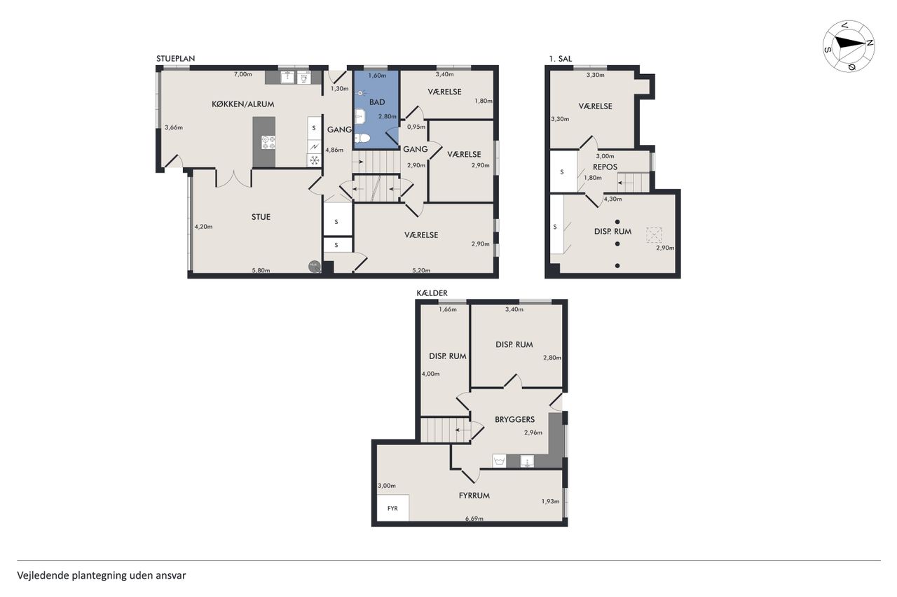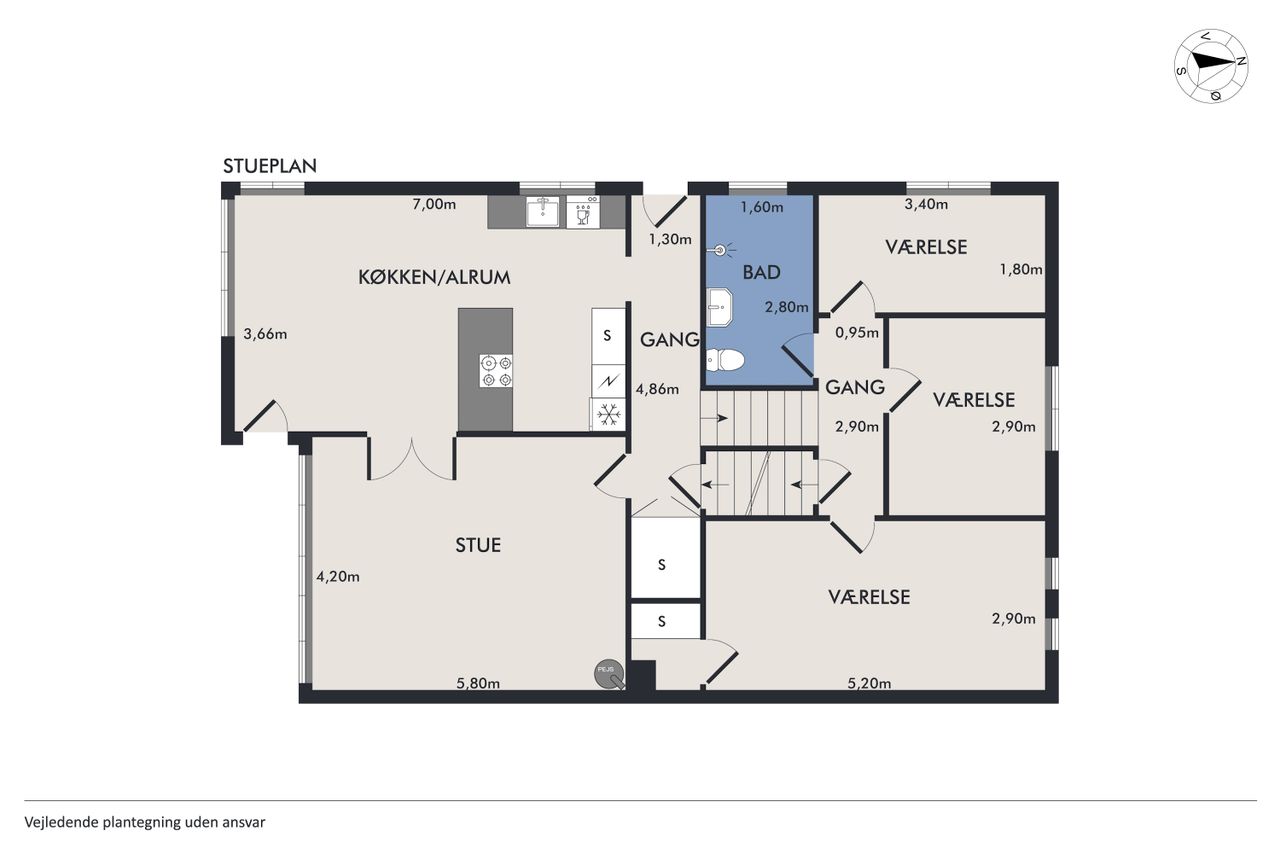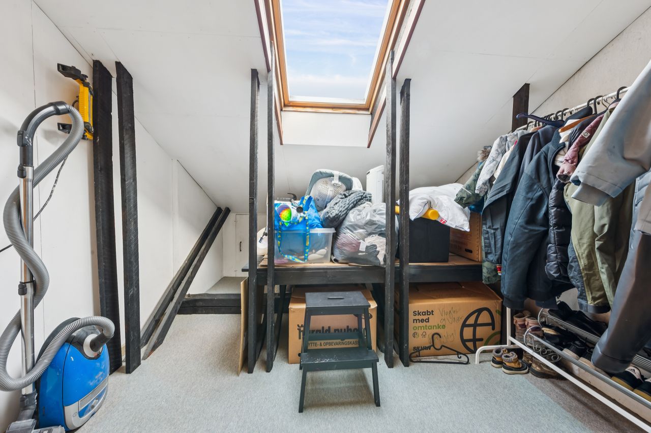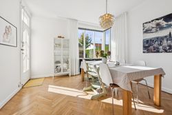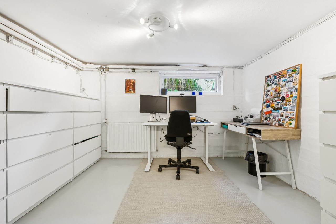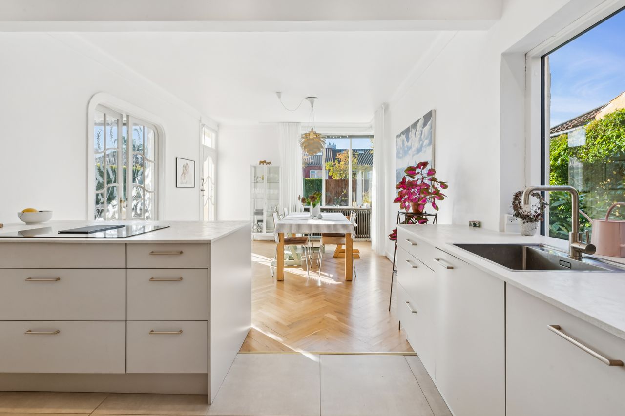 Inde i huset mødes du af en harmonisk bolig med god loftshøjde og flotte, originale detaljer som stuk, sildebensparket og dobbeltdøre. Det store, åbne køkken-alrum er husets hjerte med plads til både madlavning og samvær, mens de tilstødende sydvendte stuer får masser af lysindfald og byder på en indbydende atmosfære. På det forskudte plan ligger tre værelser samt et badeværelse med brus, og tagetagen rummer et ekstra værelse samt disponible rum. Kælderen er højloftet og funktionel med bryggers, opbevaring samt mulighed for etablering af et ekstra badeværelse.