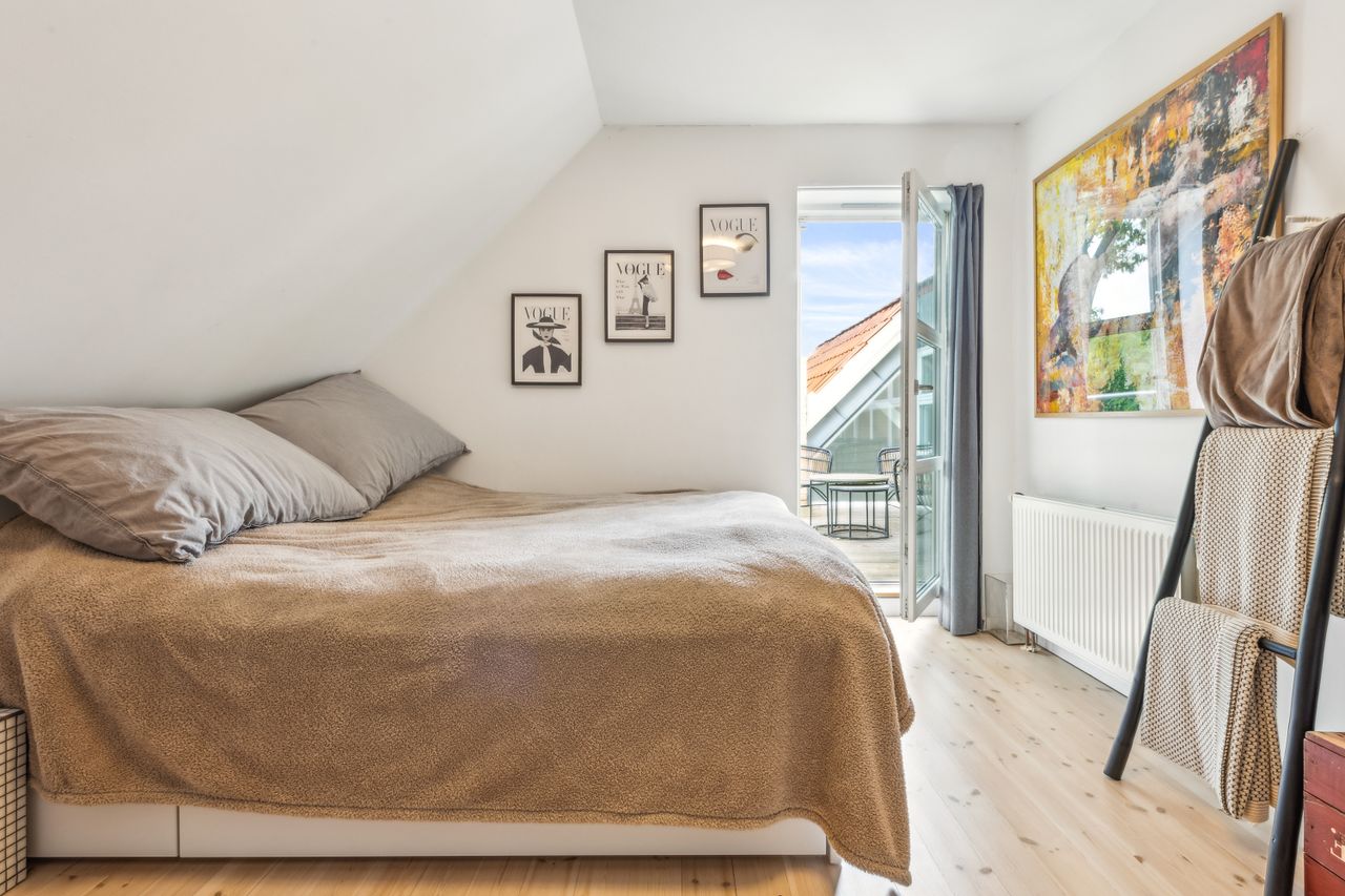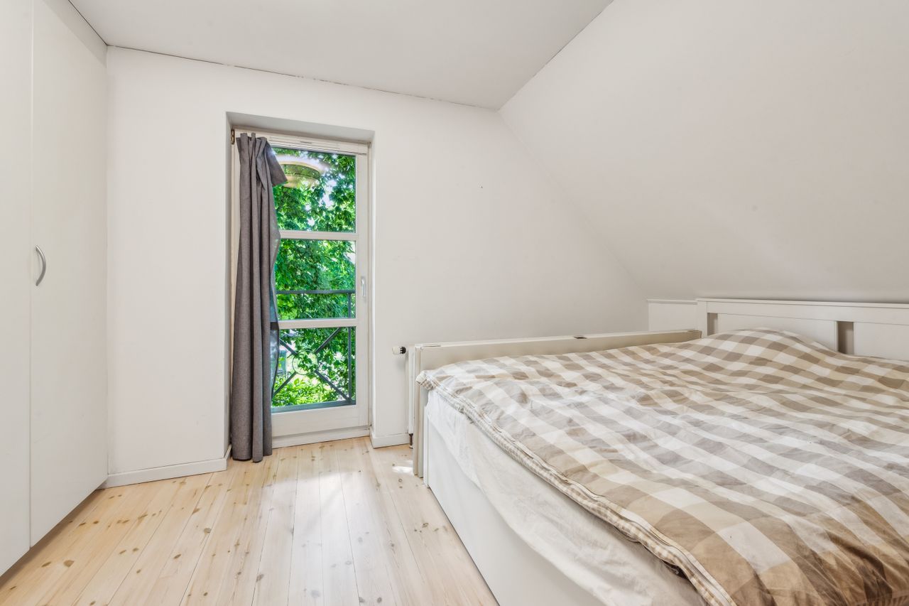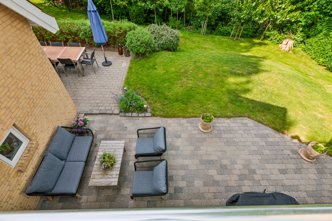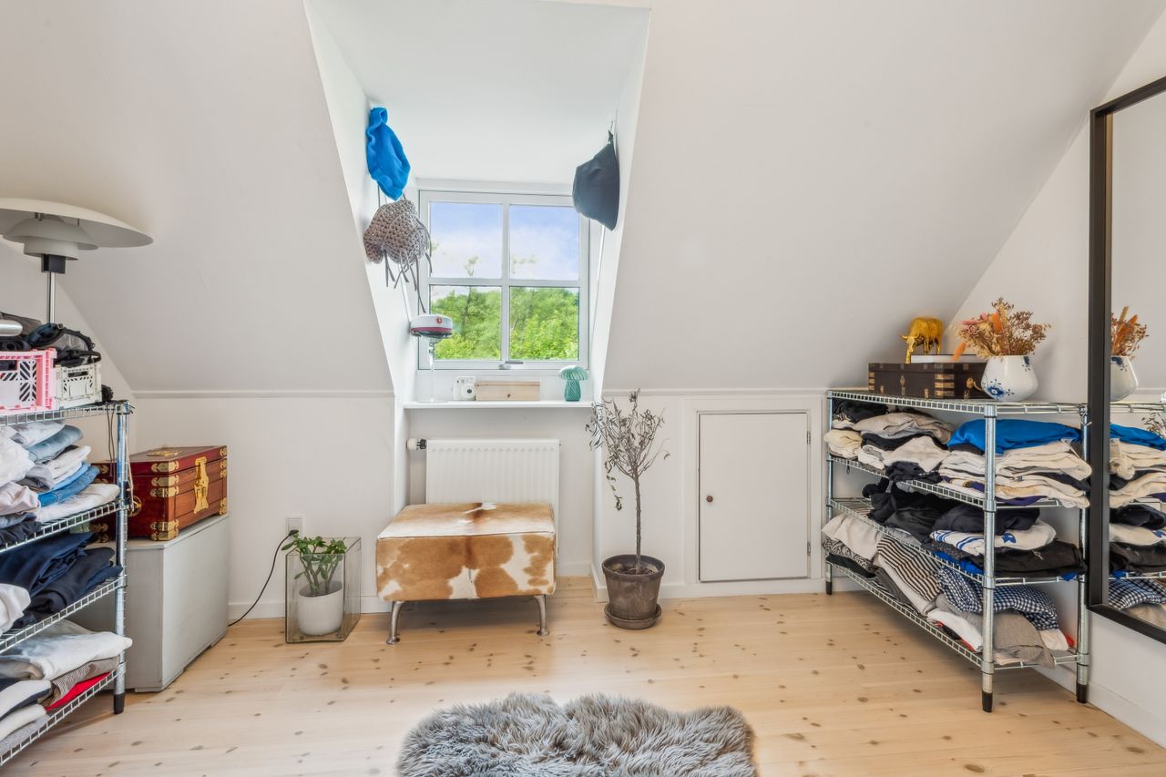 På første sal venter en rummelig repos samt tre gode værelser. Det ene værelse har adgang til sin egen terrasse med endnu en fantastisk udsigt over slotsparken – perfekt for dem, der ønsker at starte dagen med frisk luft og smukke omgivelser. Et stort badeværelse fuldender første sal.