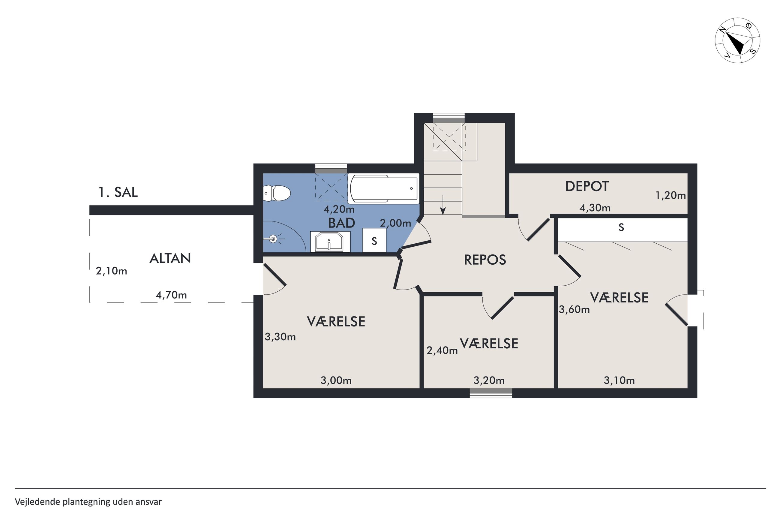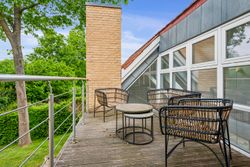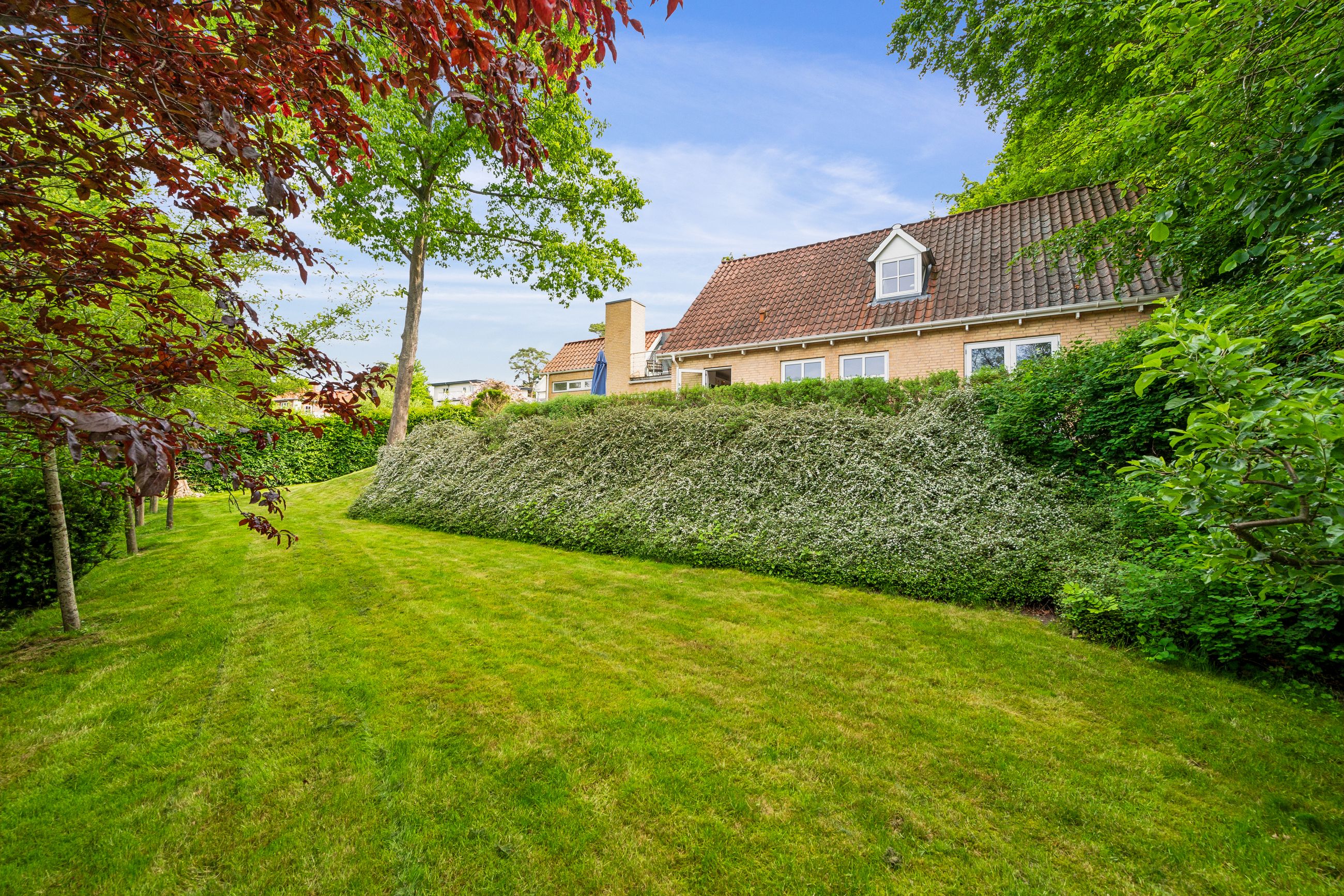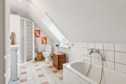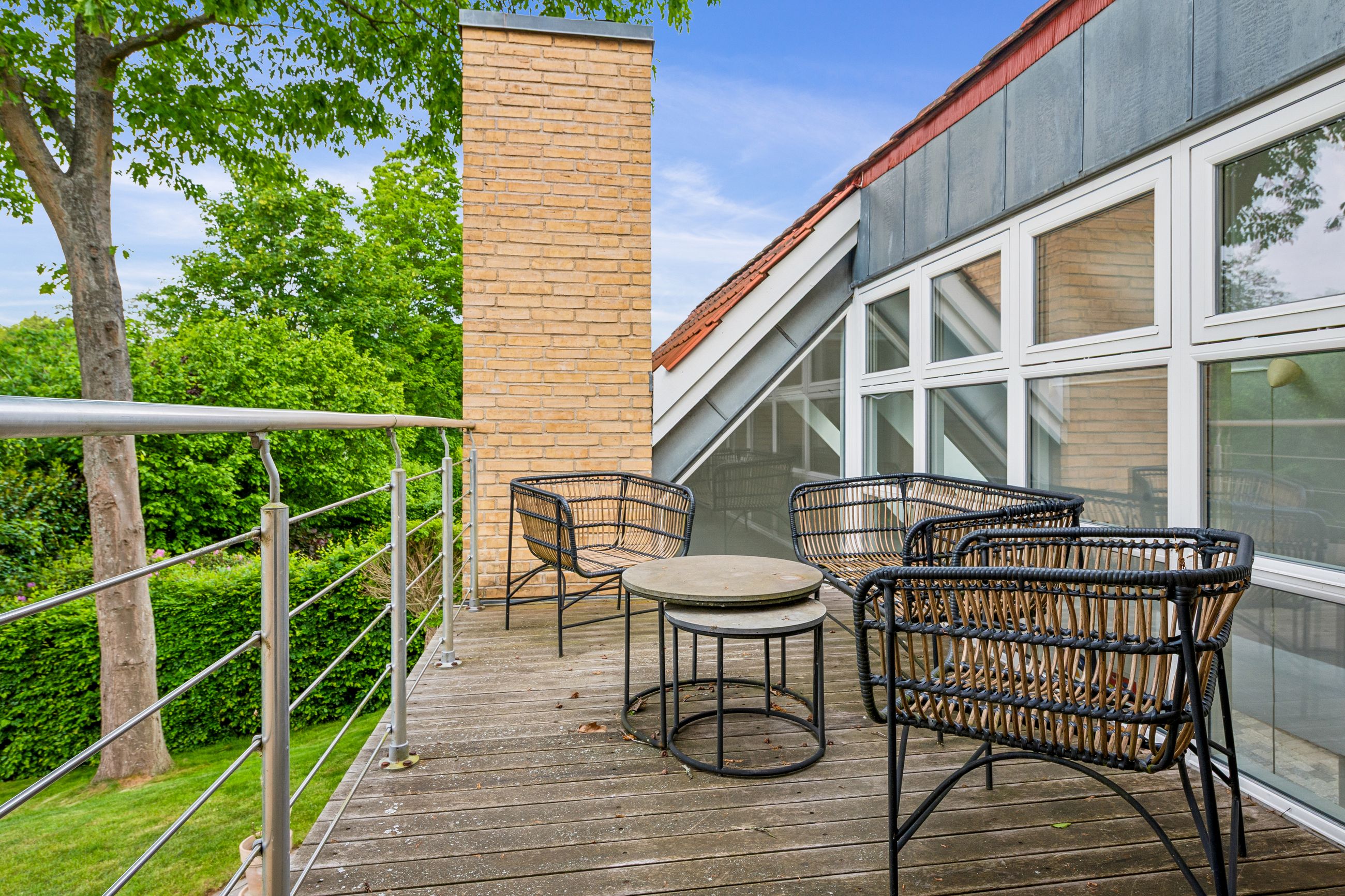 På første sal venter en rummelig repos samt tre gode værelser. Det ene værelse har adgang til sin egen terrasse med endnu en fantastisk udsigt over slotsparken – perfekt for dem, der ønsker at starte dagen med frisk luft og smukke omgivelser. Et stort badeværelse fuldender første sal.