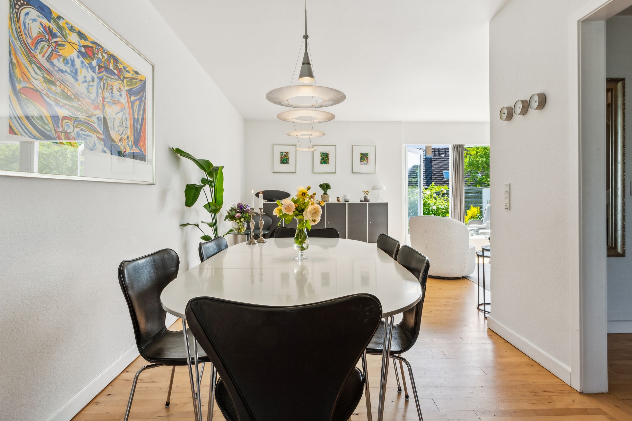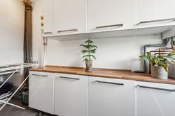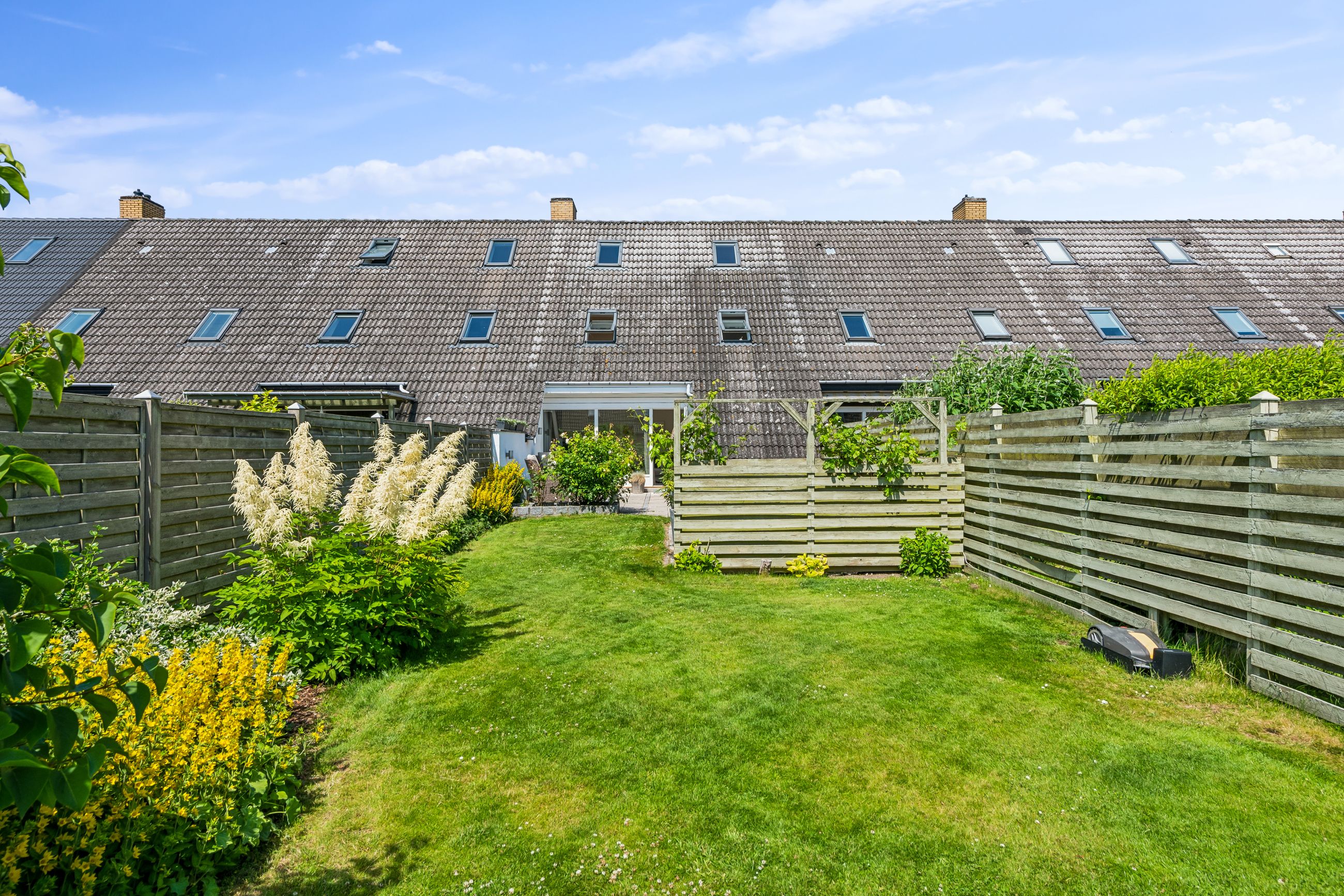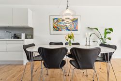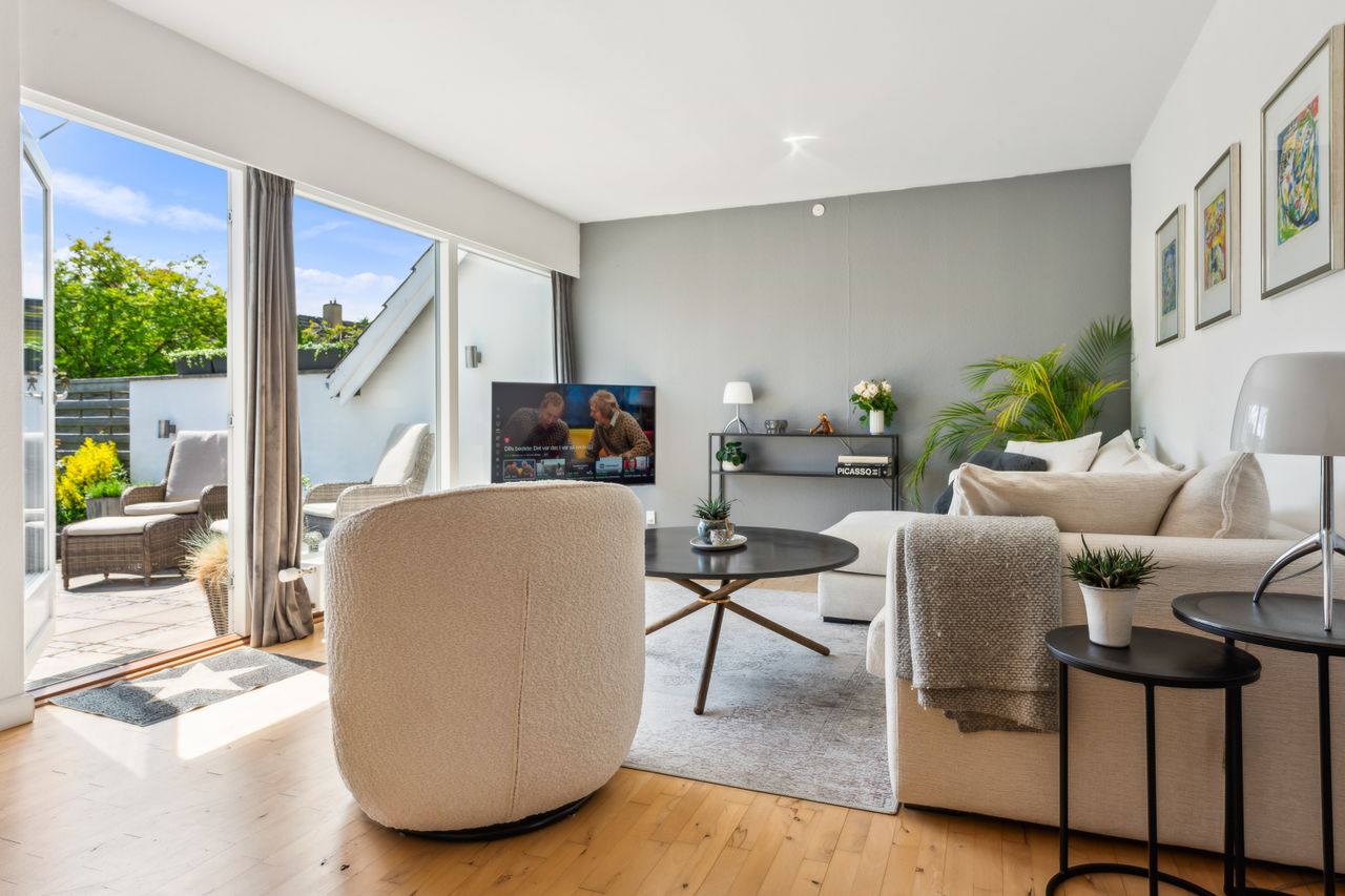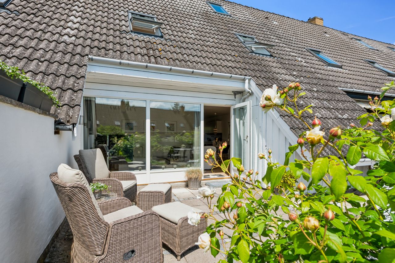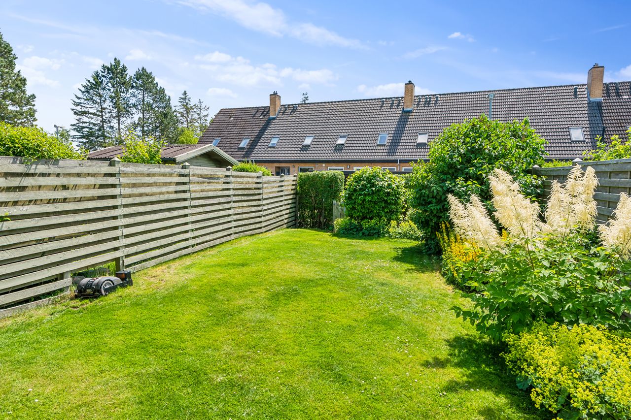 Blandt grønne marker og store søer ligger byen Ganløse, der med sine næsten 3000 indbyggere har sikret et hyggeligt og omgængeligt byliv med både villavej og mølle. Her I byen finder du dette pragteksemplar af et rækkehus, der med sine veldisponerede 150 kvadratmeter fordelt på tre plan egner sig perfekt til børnefamilien. Fra hoveddøren bydes I velkommen af en entré, der ligger i åben forbindelse med hjemmets rummelige og opdaterede bryggers, som indeholder både fyr og mulighed for at installere vaskemaskine og tørretumbler. I stueetagen finder I desuden en vinkelstue med fri adgang til et nyere og moderne køkken, som er udstyret med minimalistiske elementer i form af hvide grebsfrie låger og et indbygget kølefryseskab. I de øverste etager finder I desuden flere værelser, et disponibelt rum og et stort badeværelse, der sammen med gæstetoilettet i stueplan, fremstår i yderst fin og moderniseret stand. Rækkehuset er opført 1973 i gule mursten, og facaden er prydet med kvadratiske vinduer i kontrastfyldte sorte rammer og et dybt indgangsparti. Med til ejendommen kommer en carport, et ugeneret græsareal samt hele to terrasser, som er hhv. nord- og sydvendt. Og særligt den ene vil med sin rummelighed samt gode orientering mod syd gøre sig særligt bemærket både til hverdagens gøremål og diverse arrangementer i familien og venners lag. Dette rækkehus er placeret lige i centrum af Ganløse, hvor alt hvad hjertet begærer befinder sig inden for kort afstand til hoveddøren - her er der både dagligvarebutikker, et bageri og et bibliotek. Byen råder desuden over en stor græsplæne, hvor der årligt afholdes et kræmmermarked samt cirkusset, når det kommer til byen. I vil som børnefamilien desuden have glæden af de mange legepladser i området samt Børnehuset Hvidehøj og Ganløse Skole, som befinder sig under 10 minutters gang fra jeres hoveddør.