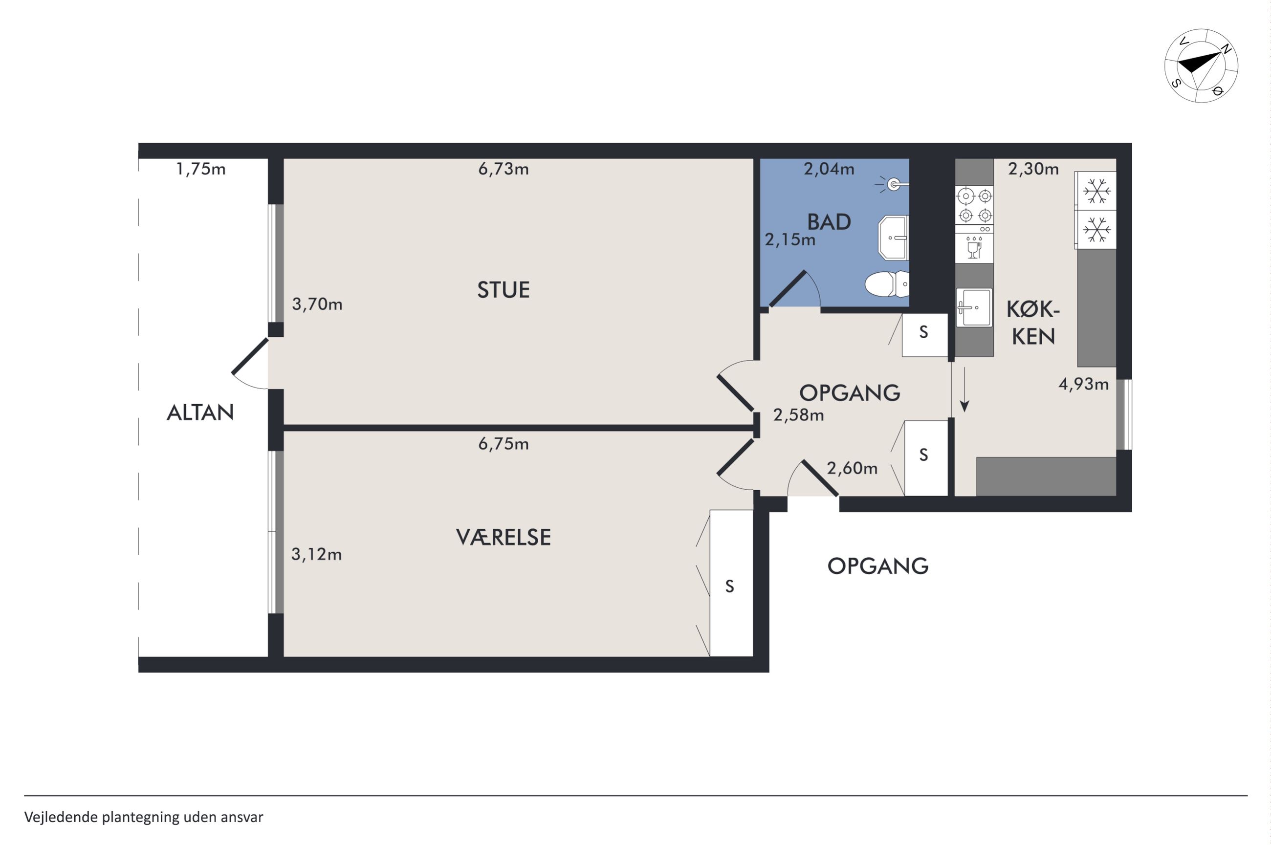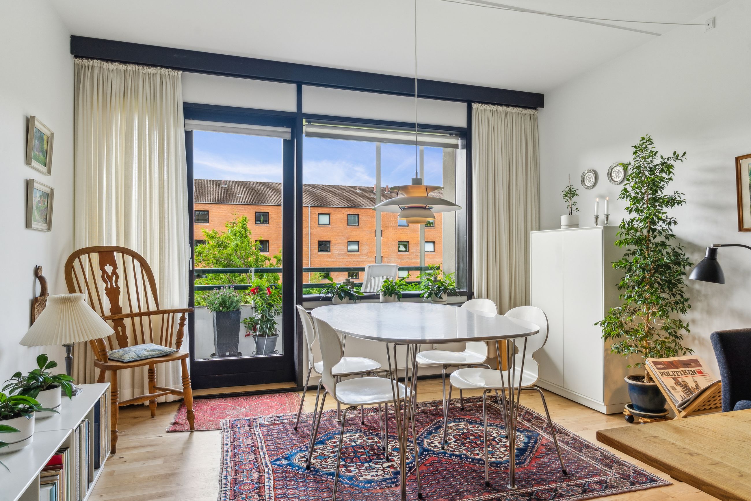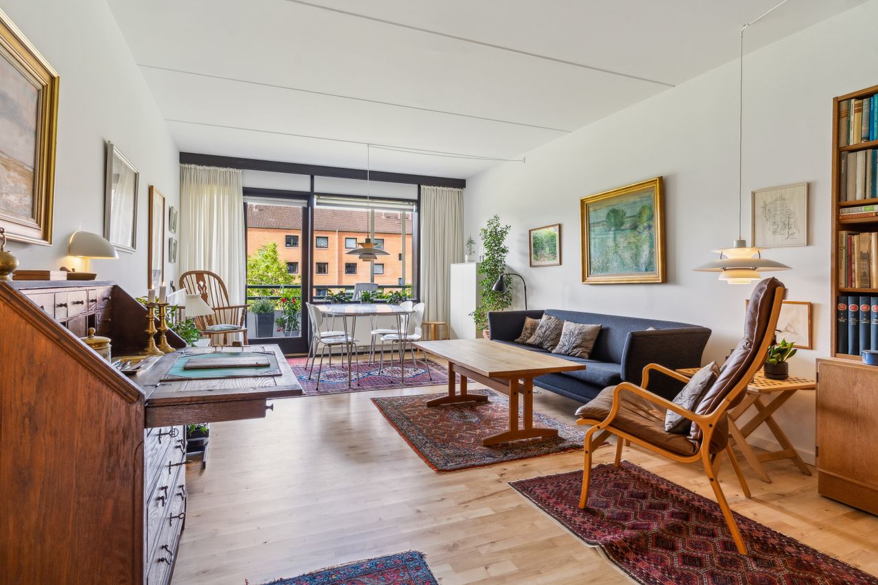 Lejligheden er yderst velholdt og fremstår i god stand, indflytningsklar uden behov for renoveringer. Lejligheden fremstår med to store værelser på hver over 20 kvm. med flere muligheder for opdeling, hvis der er behov for et ekstra værelse. Køkkenet er nyt og funktionelt indrettet med gode opbevaringsmuligheder. Et andet stort plus ved denne lejlighed er den fantastiske altan, som er i begge værelsers bredde og giver udsigt til parken med blomstrende træer og roser.