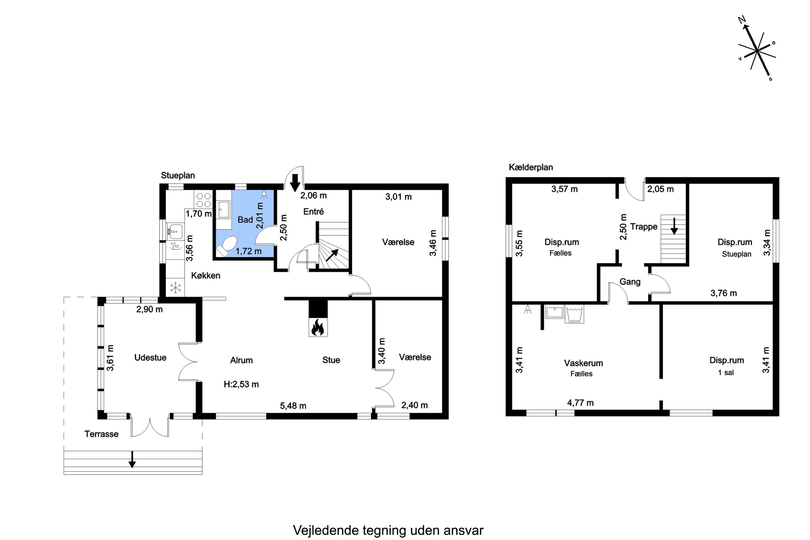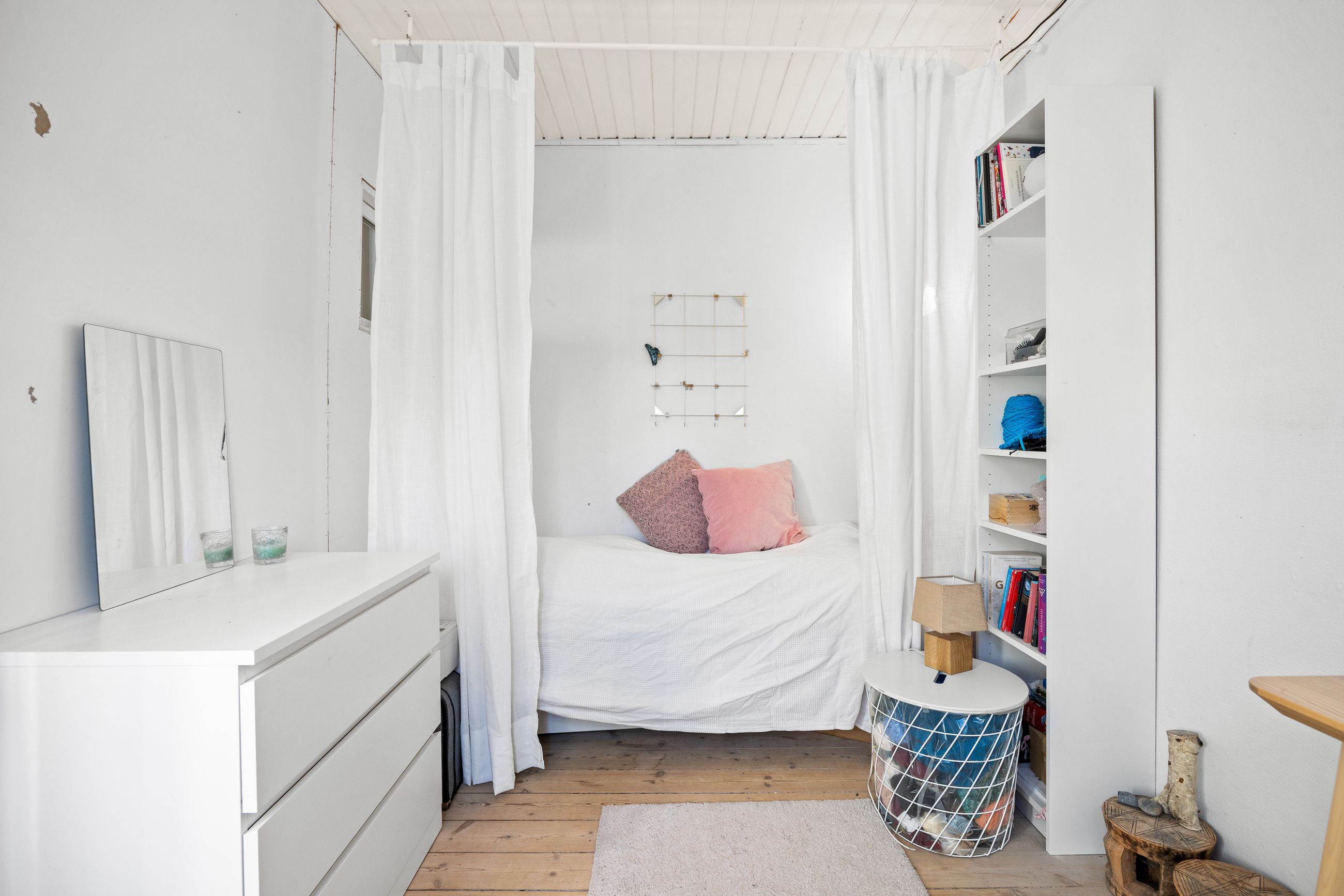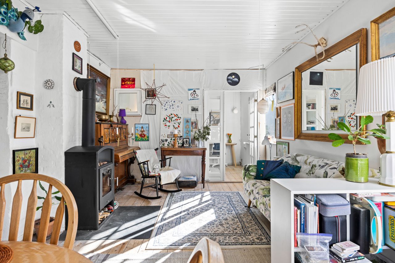 Indenfor finder du to rummelige soveværelser, der giver rig mulighed for indretning efter dine behov. Det åbne køkken-alrum er hjertet i hjemmet, hvor madlavning og samvær går hånd i hånd. Herfra har du direkte adgang til den hyggelige udestue, som kan bruges året rundt – perfekt til de kølige aftener eller når solen står højt på himlen.