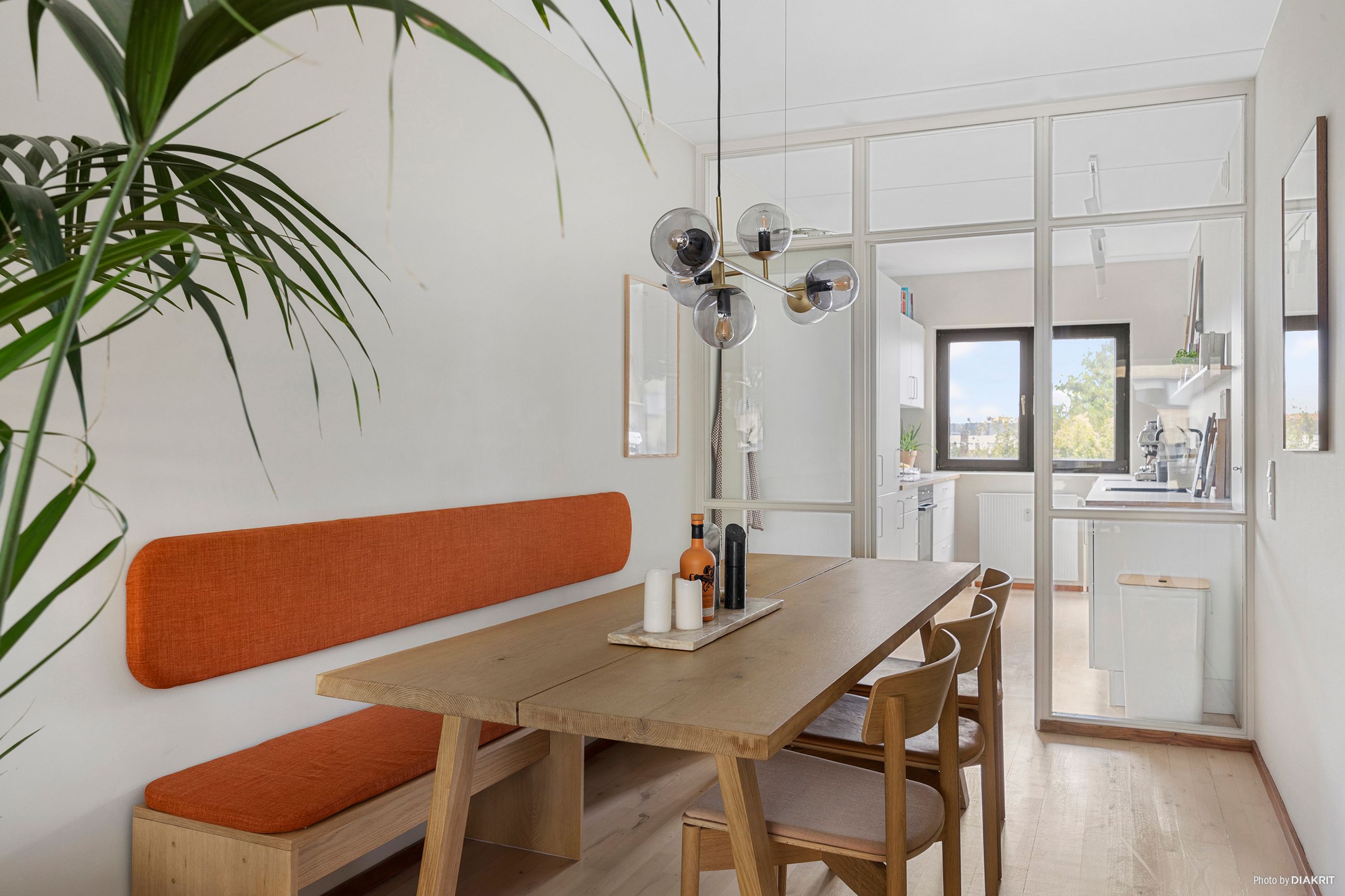 Indflytningsklar og smukt renoveret lejlighed, hvor gennemtænkte løsninger og designvalg skaber et lyst og harmonisk hjem. Beliggenheden er tilbagetrukket i bebyggelsen med ro og grøn udsigt.