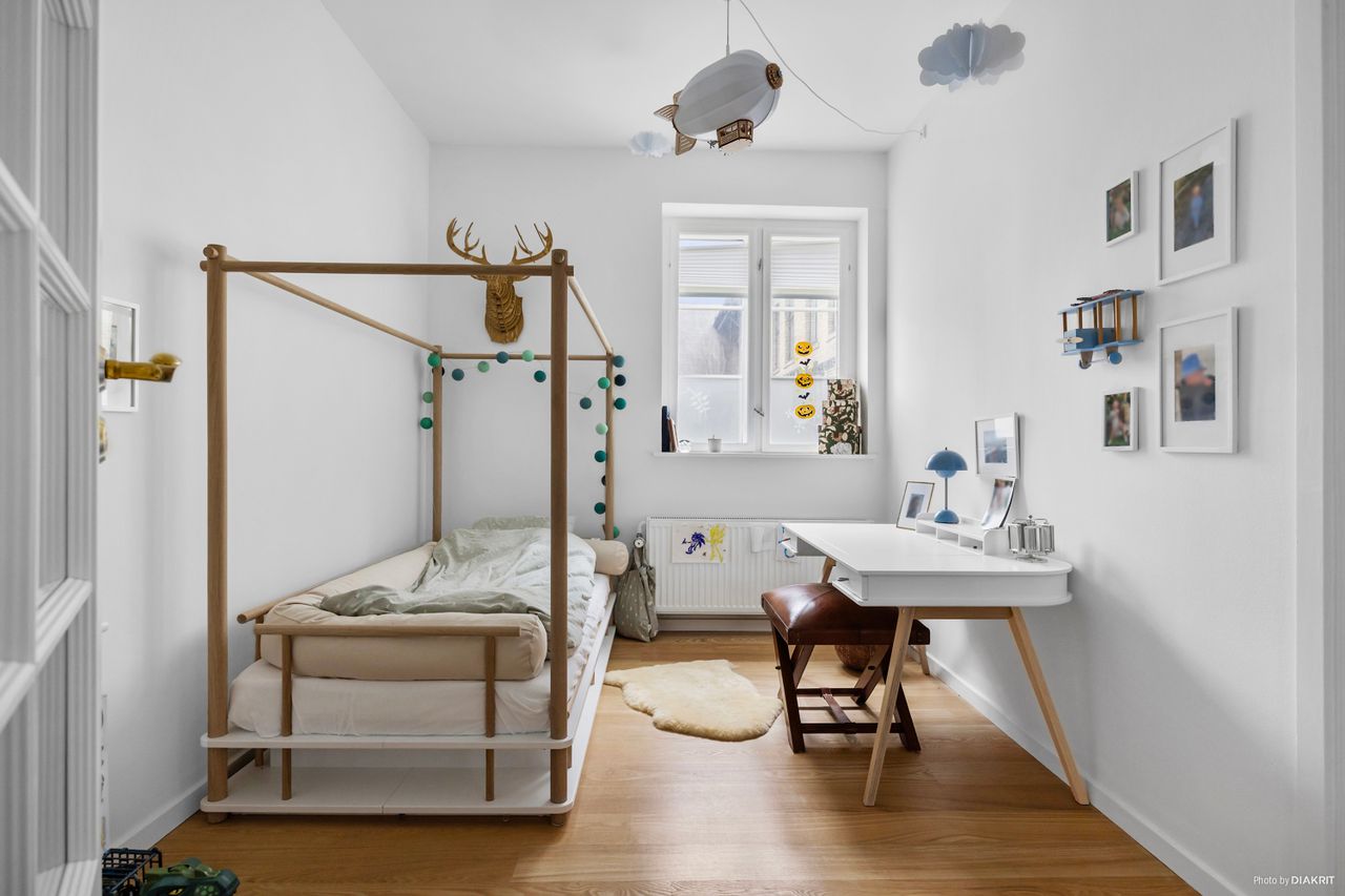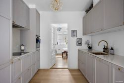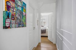 Lejligheden er elegant og højloftet med smukke egetræstrægulve overalt. Man træder direkte ind i boligens hjerte – det store køkken/alrum i åben forbindelse med opholdsstuen, der prydes af et hav af fine detaljer. Det nye kvalitetskøkken har alt i hårde hvidevarer, og badeværelset er lækkert og moderne med gulvvarme og separat bruseniche. Hertil kommer soveværelse med skabe samt et børne-/kontorværelse. Fra stuen er der udgang til den solrige, vestvendte terrasse, hvor sommeraftener og grillaftener kan nydes i rolige omgivelser.