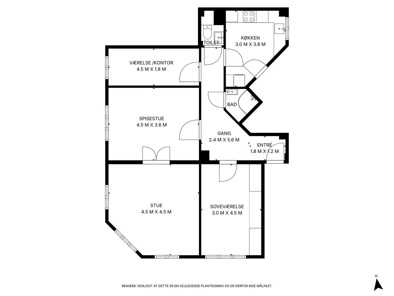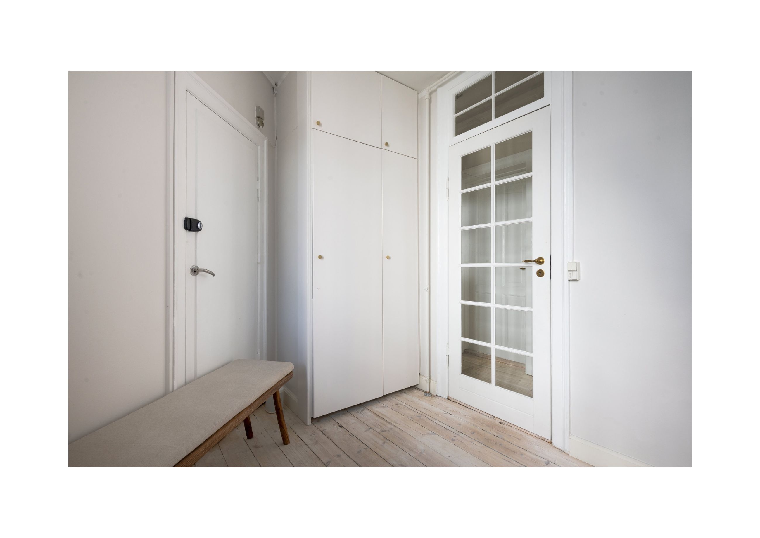 Boligen rummer desuden flotte klassiske detaljer som høj loftshøjde, stuklofter og smukke trægulve. Lejligheden indeholder ydermere: Fordelingsentré, dejligt soveværelse med indbygget nyere skabsvæg, 2 sydvestvendte opholdsstuer med udsigt til villakvarteret, et arbejdsværelse/børneværelse.