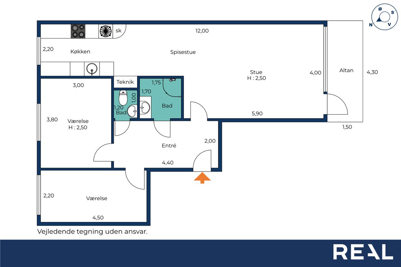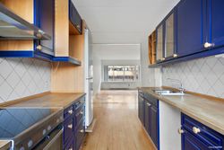 Lejligheden byder velkommen i en rummelig og funktionel entré med god plads til overtøj og sko. Herfra er der adgang til separat toilet samt et godt badeværelse. Den store, sydvendte stue har plads til både sofa- og spiseafdeling og har direkte udgang til den solrige altan. Stuen ligger i åben forbindelse med et ældre køkken.
