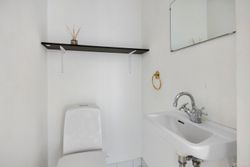 Derudover rummer boligen et rummeligt soveværelse samt et lyst børne- eller gæsteværelse. Der er mulighed for at etablere et ekstra værelse og dermed få i alt 4 værelser – se forslag til alternativ planløsning på vores hjemmeside.
