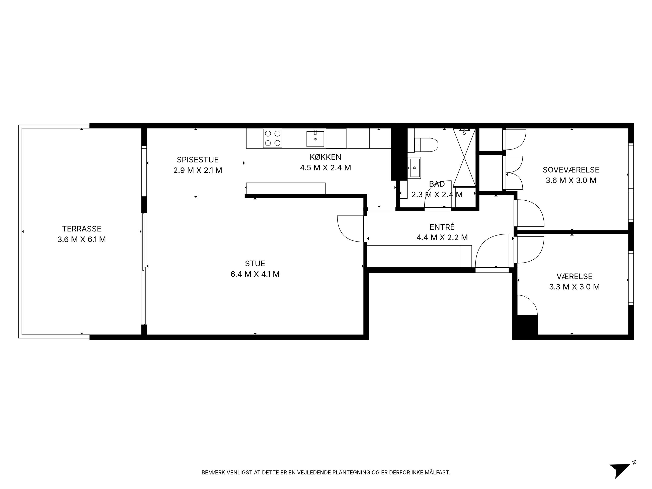 Denne flotte og veldisponerede lejlighed indeholder: stor møblerbar entre, nyere eksklusivt Handcrafted køkken i delvis åben forbindelse til stuen, dejligt stort nyere badeværelse med stor bruseniche, to store, veldisponerede soveværelser samt en sydvendt opholdstue med udgang til den store, solrige, sydvendte flisebelagte terrasse.
