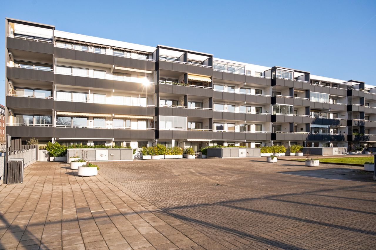 Her tilbydes en af bebyggelsens bedst beliggende lejligheder med en skøn og rolig beliggenhed samt flot og fri udsigt. Lejligheden er beliggende i den eftertragtede bebyggelse Frederiks Have, som ligger perfekt med metroen som nabo og kun en kort gåafstand fra Frederiksberg Centret, Handelshøjskolen, Frederiksberg Have samt det hyggelige café- og butiksliv på Falkoner Allé og Gammel Kongevej.