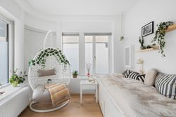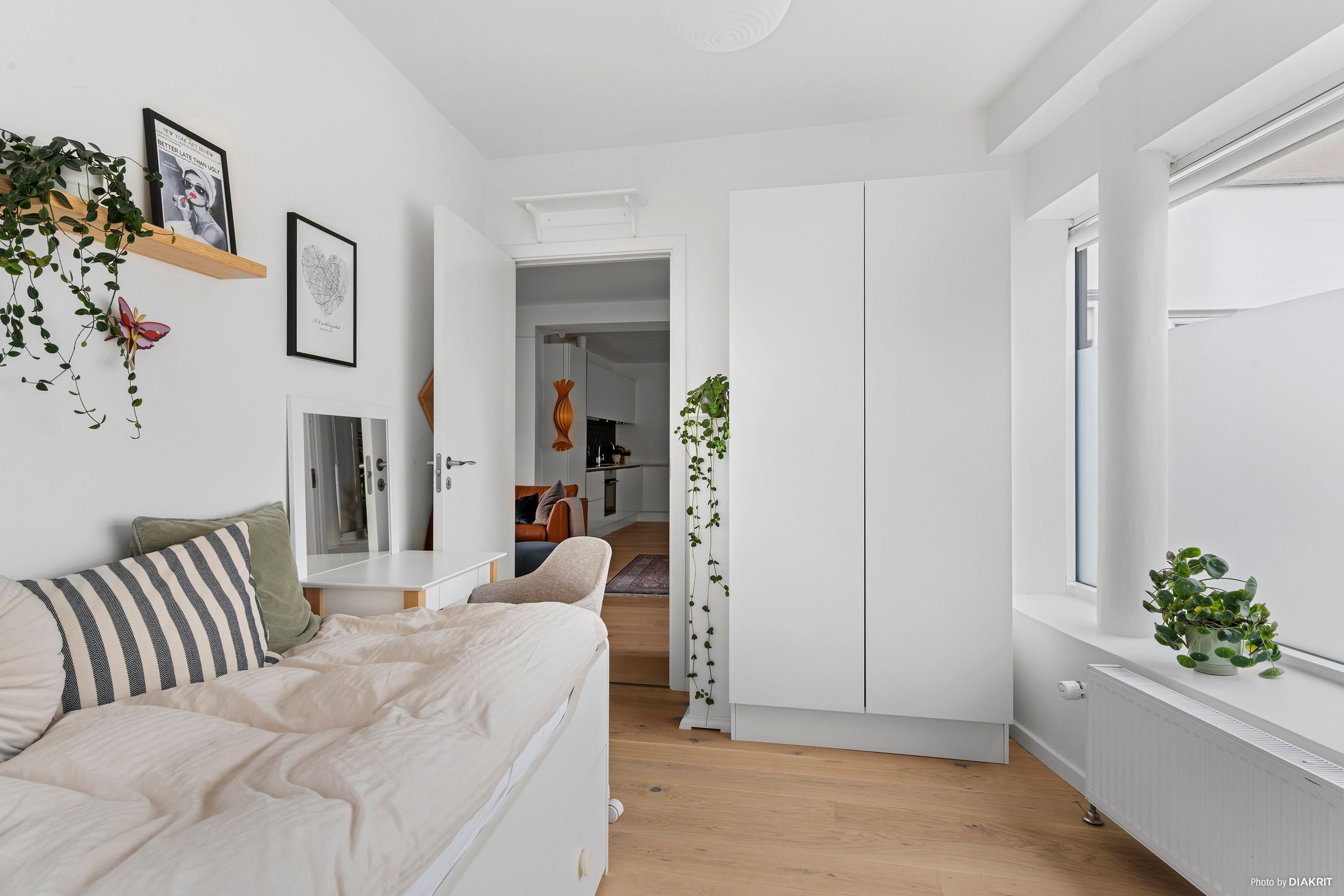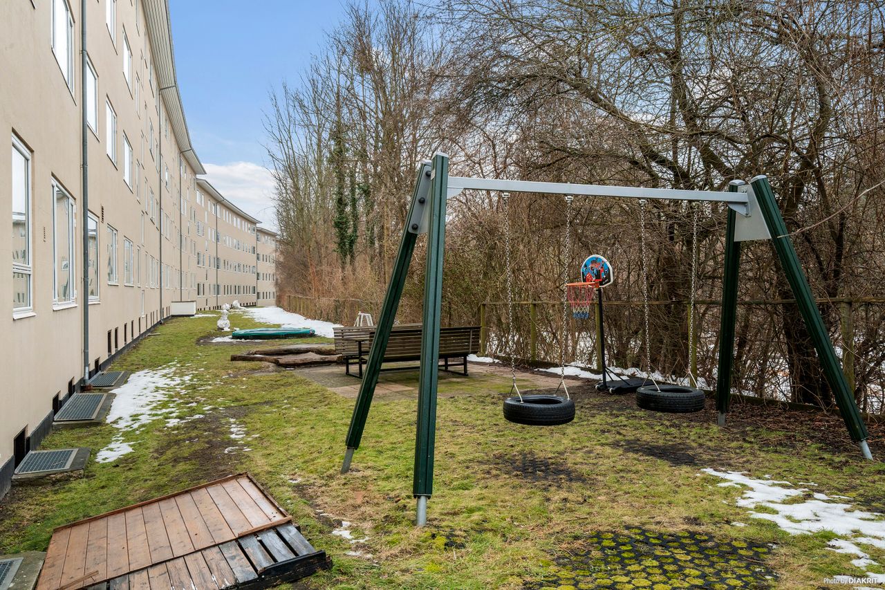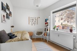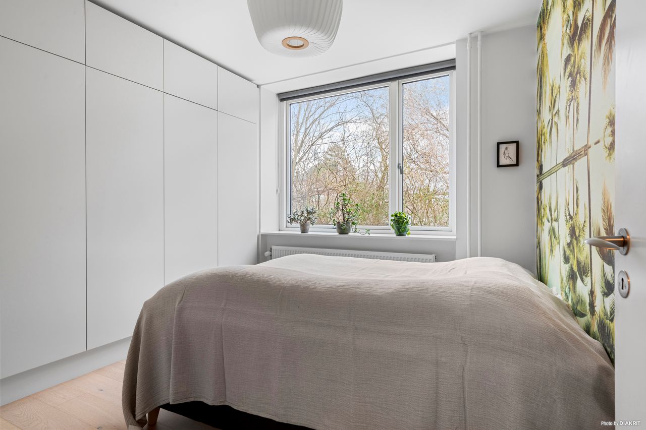 I alle 3 værelser er der optimal udnyttelse af skabsplads. I det store soveværelse ud mod Grøndalen er der lydisoleret væg mod nabo. Alle værelser ligger roligt tilbagetrukket fra vej og har ingen forbipasserende. Skønne aflukkede grønne arealer hvor man nemt kan holde øje med børnene imens de leger.
