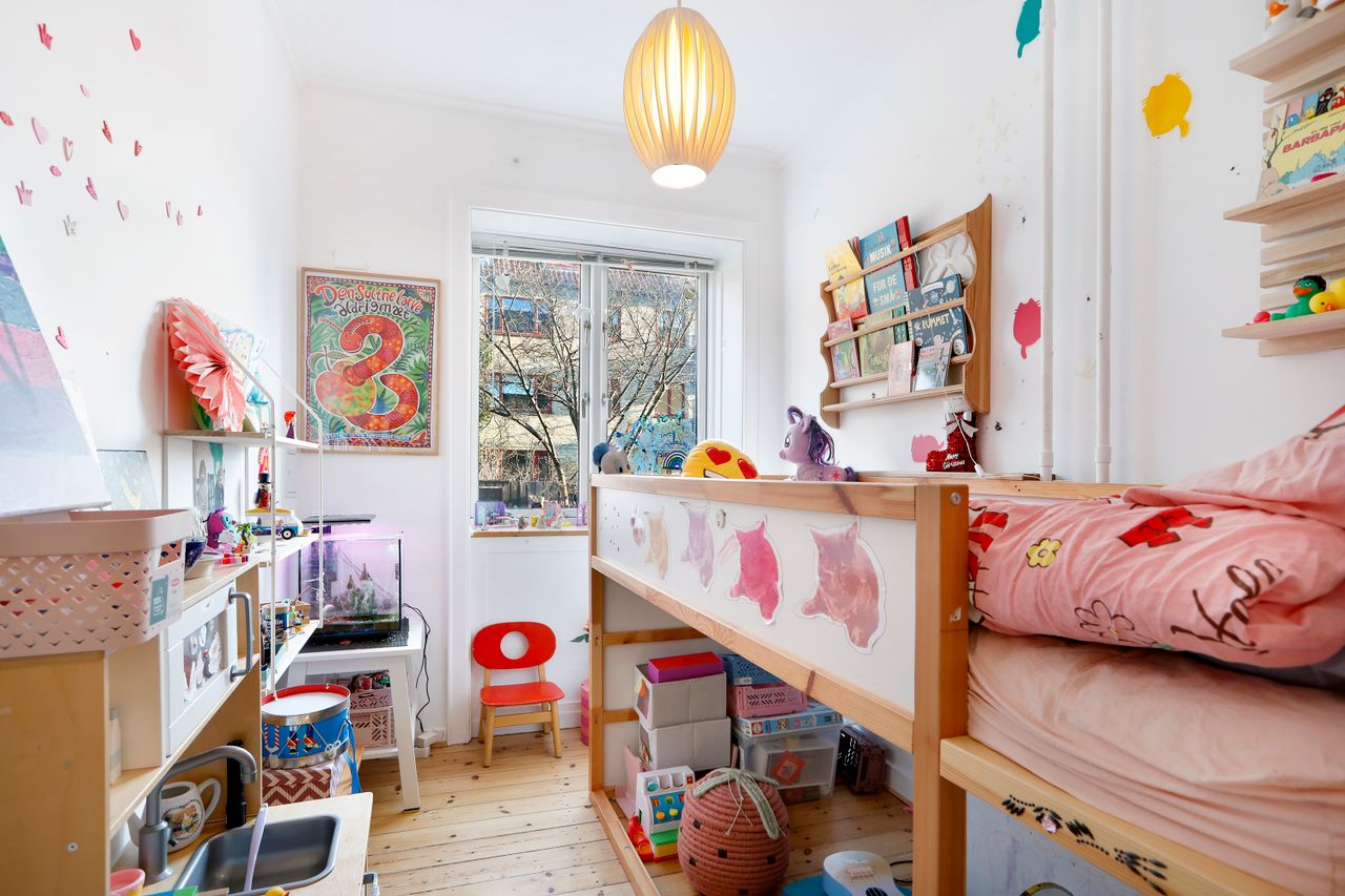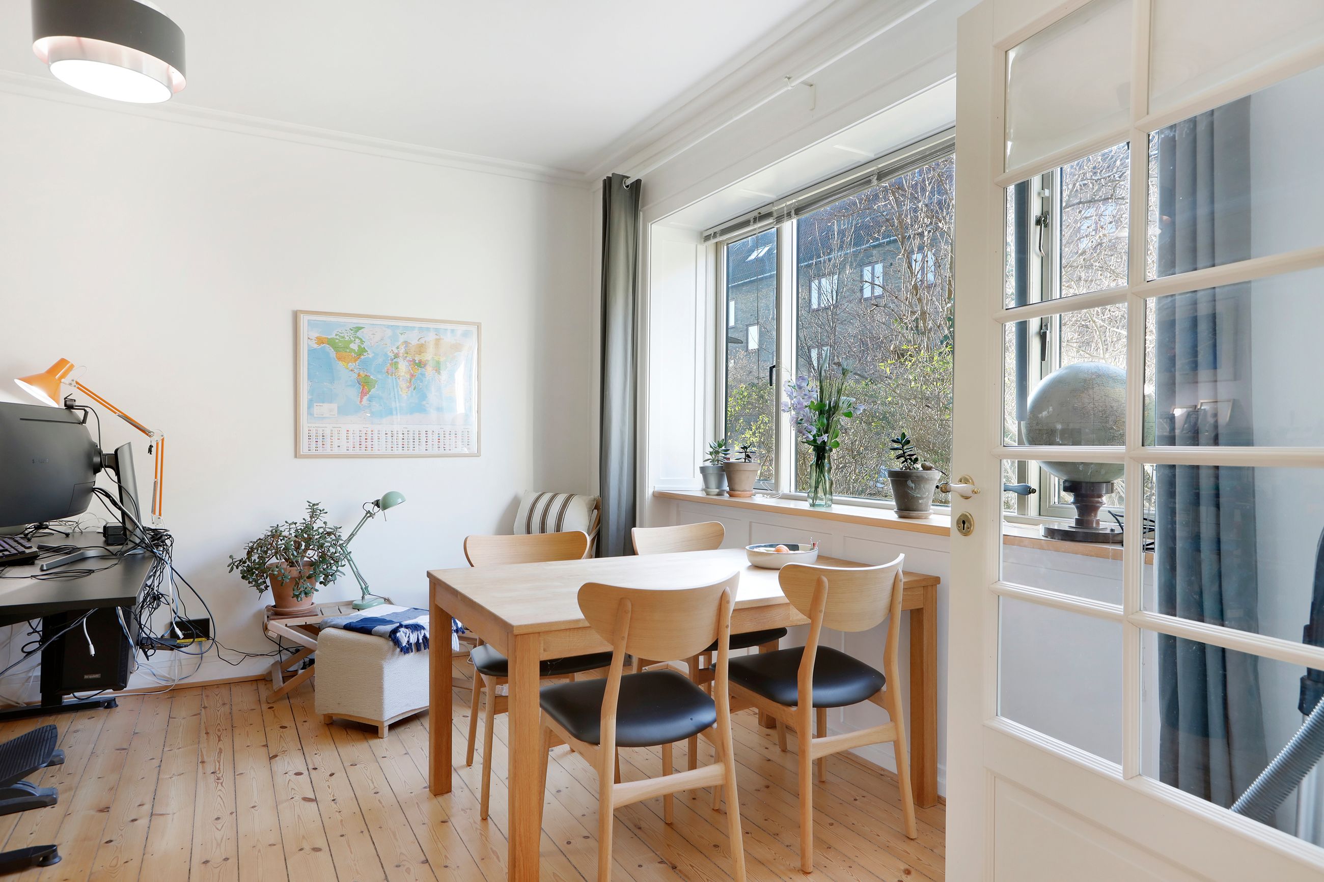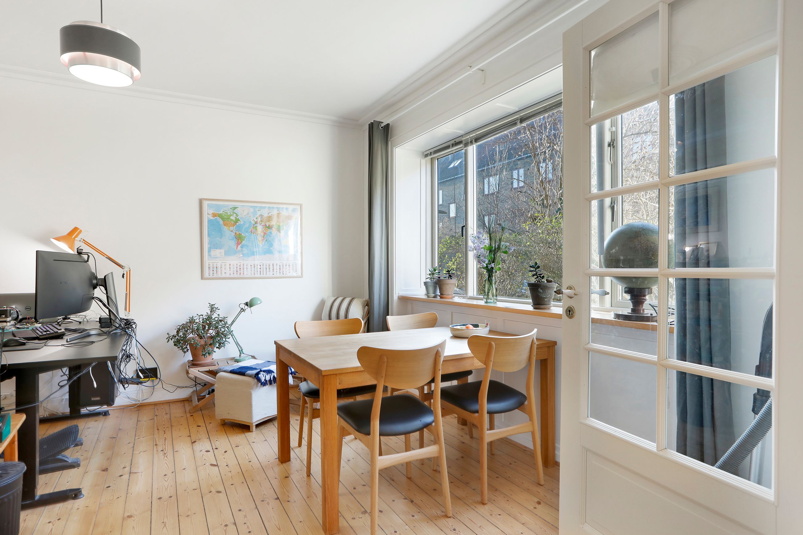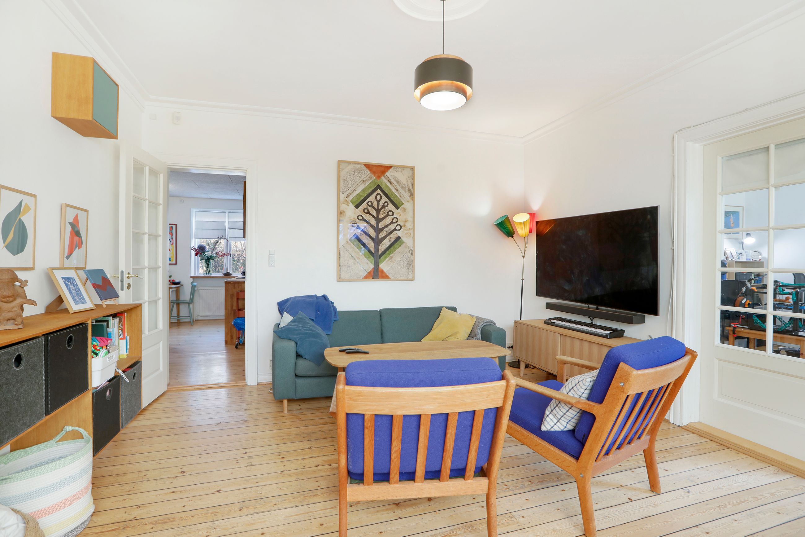 Lejligheden byder på hele tre soveværelser, to store stuer, to toiletter samt et enkelt badeværelse, hvilket gør boligen ideel til både den pladskrævende familie og det kvalitetsbevidste par, der ønsker god plads og fleksible indretningsmuligheder. Planløsningen er gennemtænkt og giver en naturlig opdeling mellem opholdsrum og private gemakker.