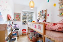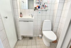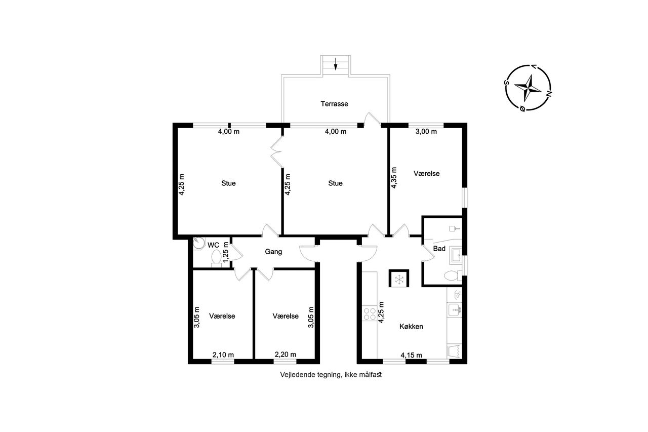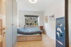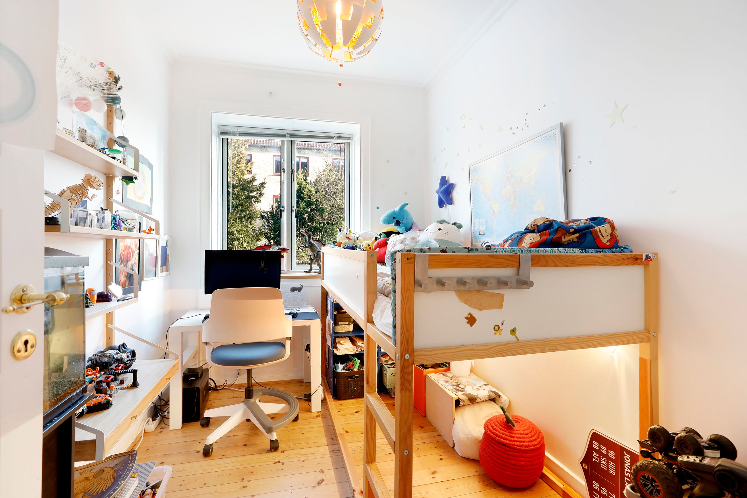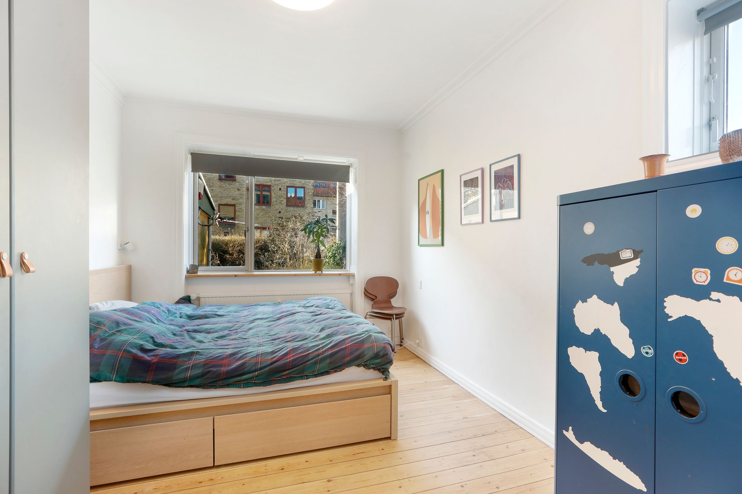 Lejligheden byder på hele tre soveværelser, to store stuer, to toiletter samt et enkelt badeværelse, hvilket gør boligen ideel til både den pladskrævende familie og det kvalitetsbevidste par, der ønsker god plads og fleksible indretningsmuligheder. Planløsningen er gennemtænkt og giver en naturlig opdeling mellem opholdsrum og private gemakker.