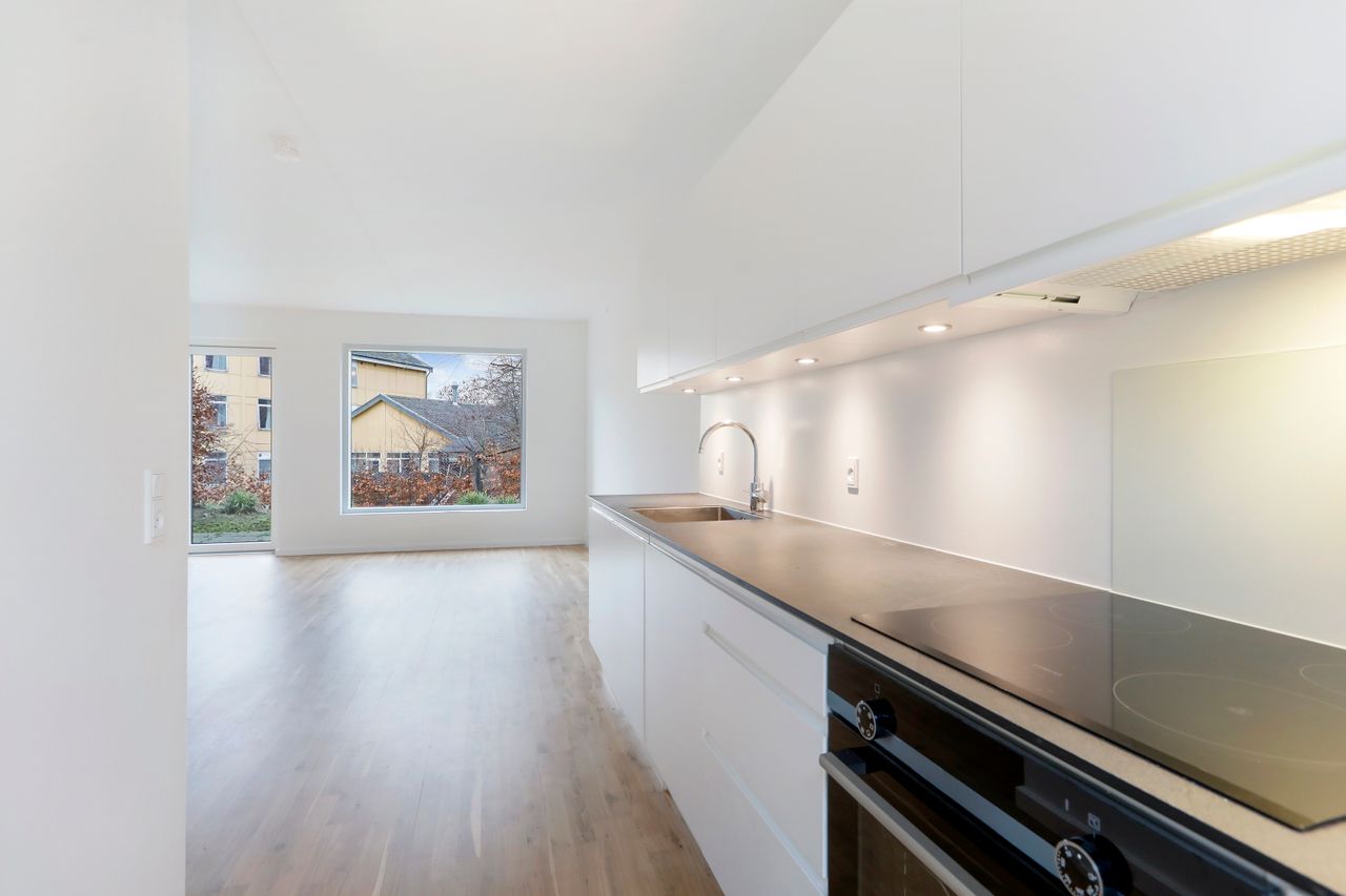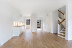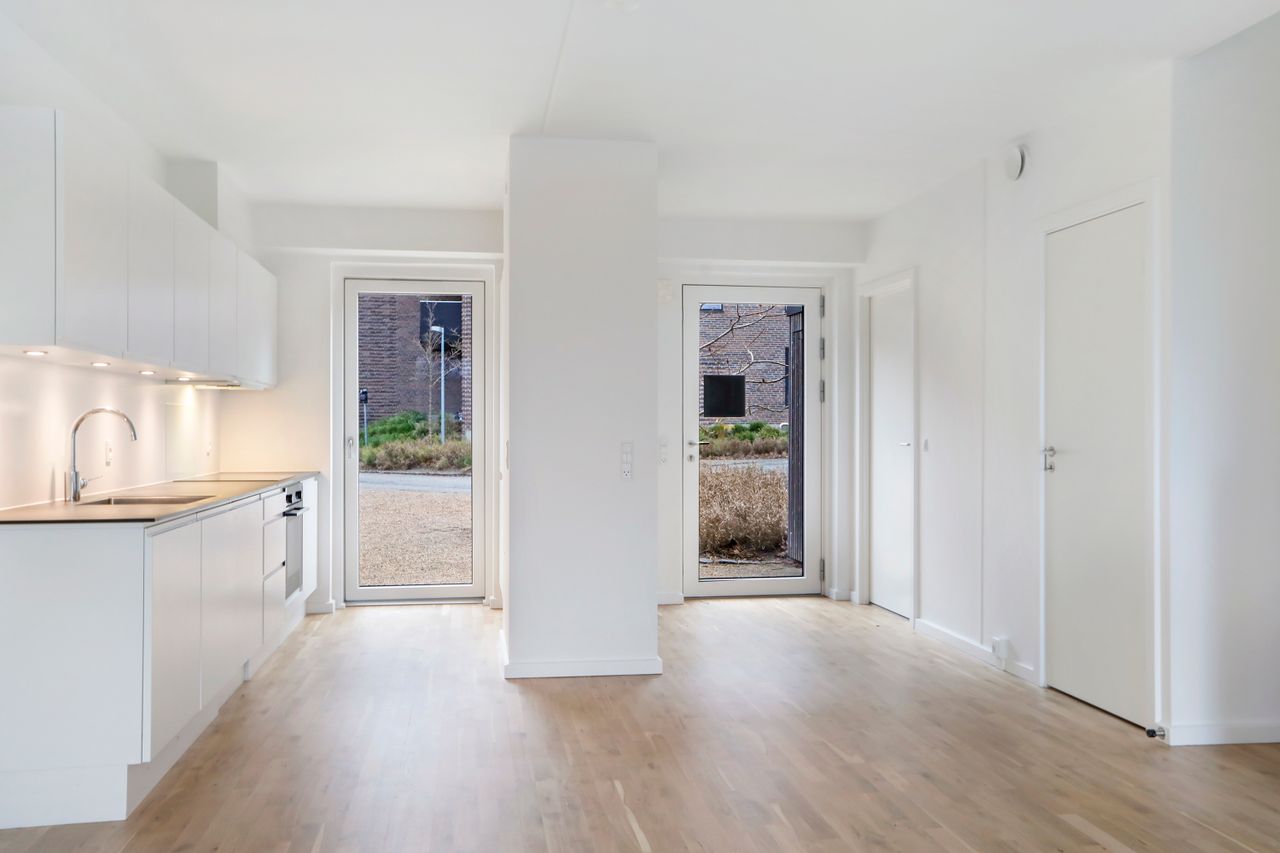 Dette moderne rækkehus, opført i 2018, emmer af stil, funktionalitet og skønne familievenlige rammer. Her får I et hjem, hvor hver en detalje indbyder til komfort og hygge.