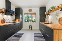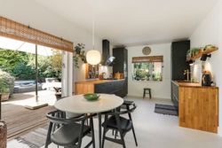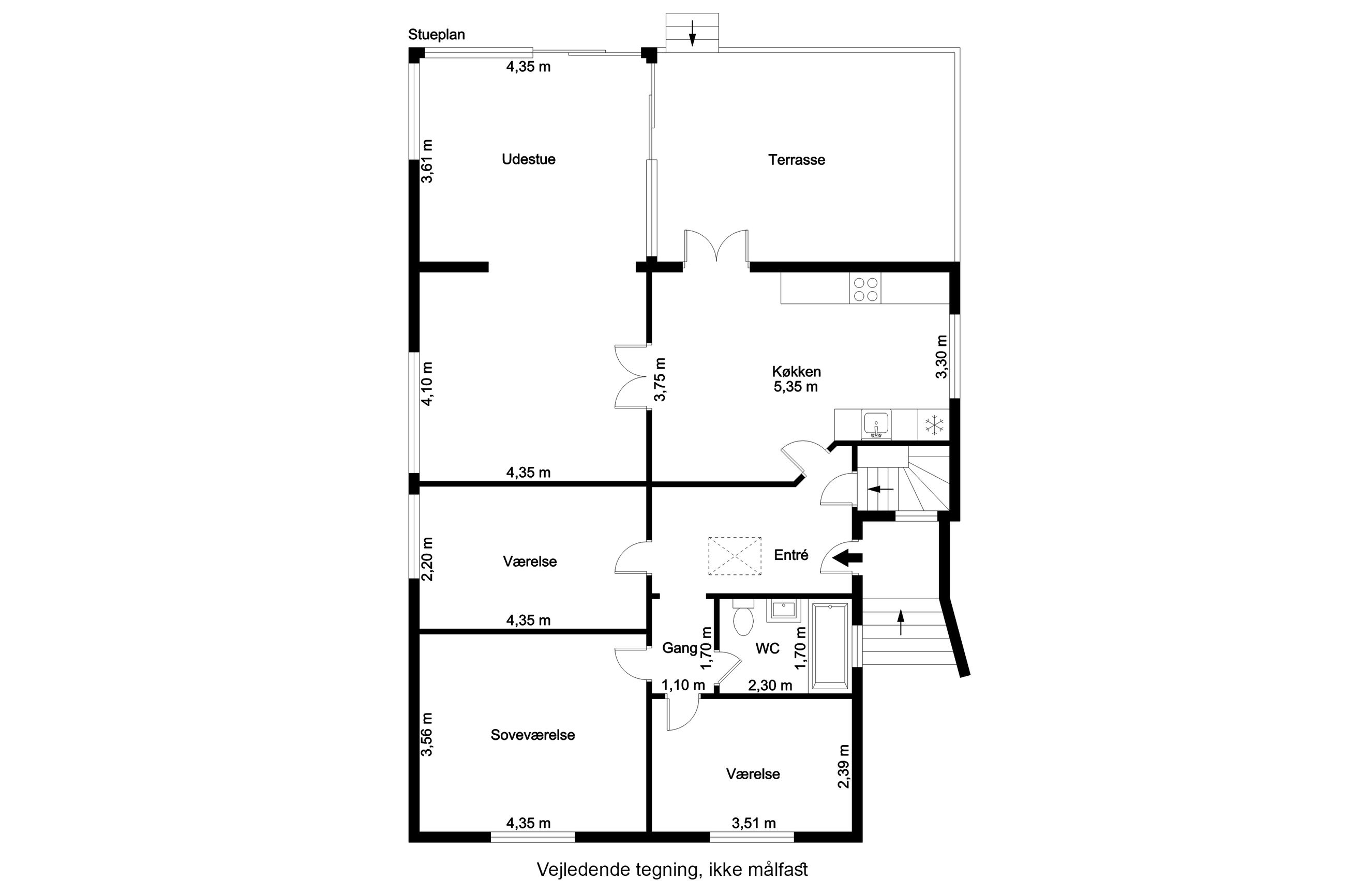 I stueplan finder du et stort og åbent køkken-alrum, der samler familien til hverdag og fest. Herudover rummer etagen tre gode soveværelser, som giver sjældent meget plads i denne boligkategori - ideelt til den store familie, hjemmekontor eller gæsteværelser. Der er derudover lavet en tilbygning i form af en indbygget og isoleret udestue som bruges som et disponibelt rum i dag. Flere steder er der gulvvarme, hvilket bidrager til den luksuriøse følelse