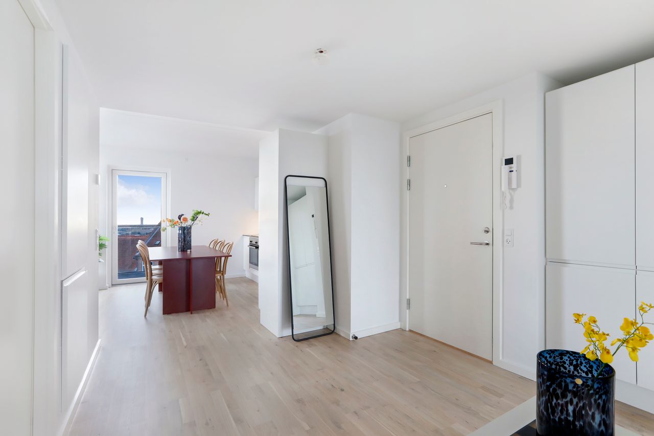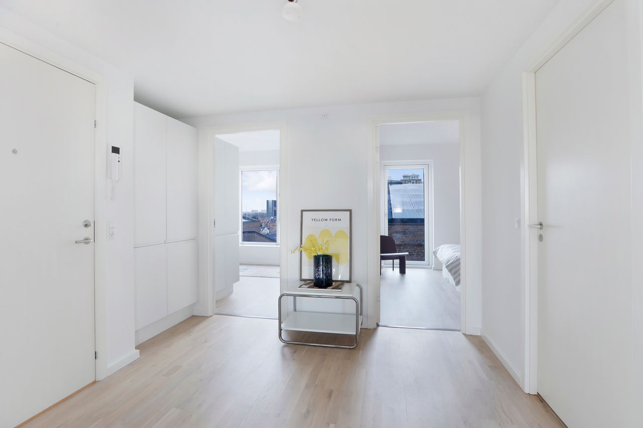 Velkommen til denne lyse og rummelige 3-værelses lejlighed på 93 m2, beliggende på 6. sal med panoramaudsigt over København. En moderne ejendom fra 2018, hvor kvalitet og komfort er i højsædet. Her får du en bolig, der er funktionelt indrettet og kombinerer moderne design med praktiske løsninger og ikke mindst gulvvarme overalt.