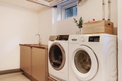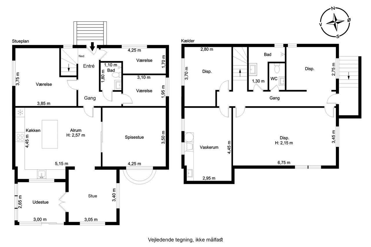 Kælderen er usædvanligt anvendelig med en god loftshøjde på ca. 2,15 m. Her findes et stort disponibelt rum med gulvvarme, ekstra entré, nyt badeværelse med gulvvarme, separat toilet – ligeledes med gulvvarme – samt endnu et disponibelt rum, oplagt som hjemmekontor eller hobbyrum. Derudover er der vaskerum, og der er installeret DUKA-ventilation, som sikrer et sundt og behageligt indeklima.