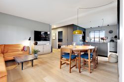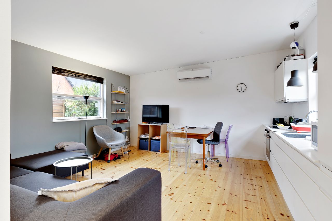Endvidere træder du ind i stuen hvor du bliver mødt af et pænt og velindrettet køkken i