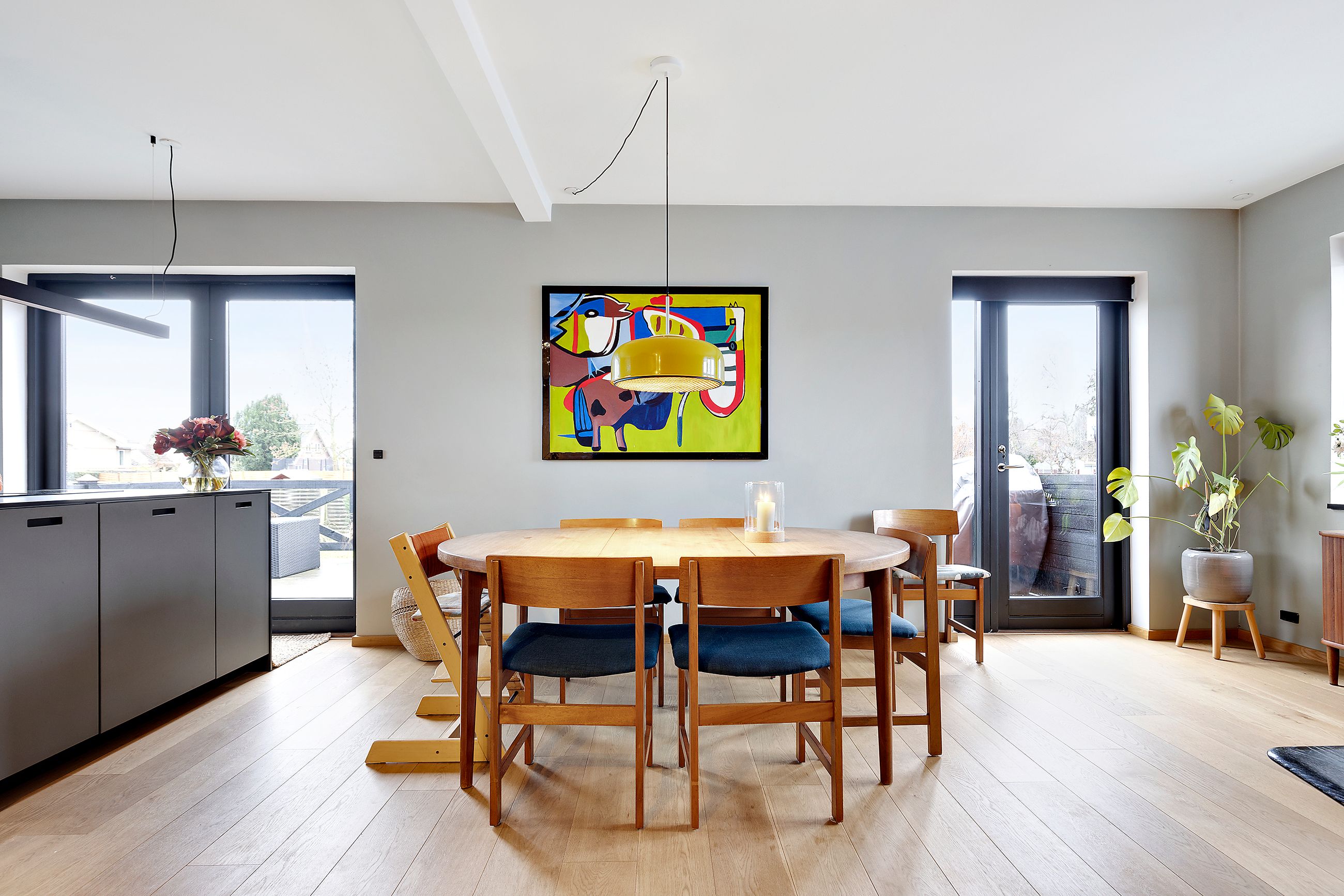 spisebordet. Dertil også og veludnyttet sofaarragement hvortil der også er udgang til den