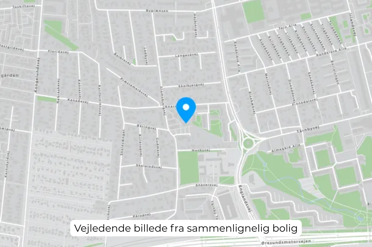 Boligen er en del af Kirsebærhaven, centralt placeret i Tårnby nær kommunegrænsen til Sundby. Her får du en ideel beliggenhed med kort afstand til både indkøb og offentlig transport, idet Tårnby Torv ligger inden for gåafstand. Trods den centrale placering bor du ugeneret med kun en kort køretur til centrum eller Amager Strand. Derudover er der kort afstand til både skole og gymnasium, hvilket gør dette område perfekt for børnefamilier.