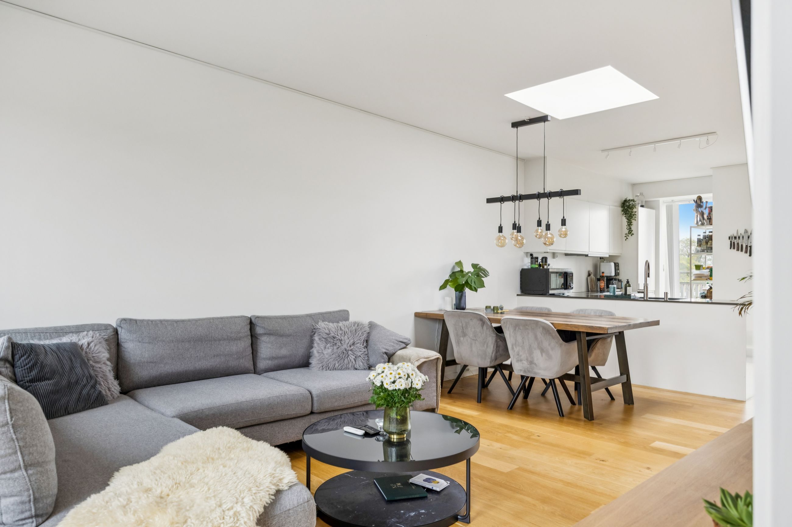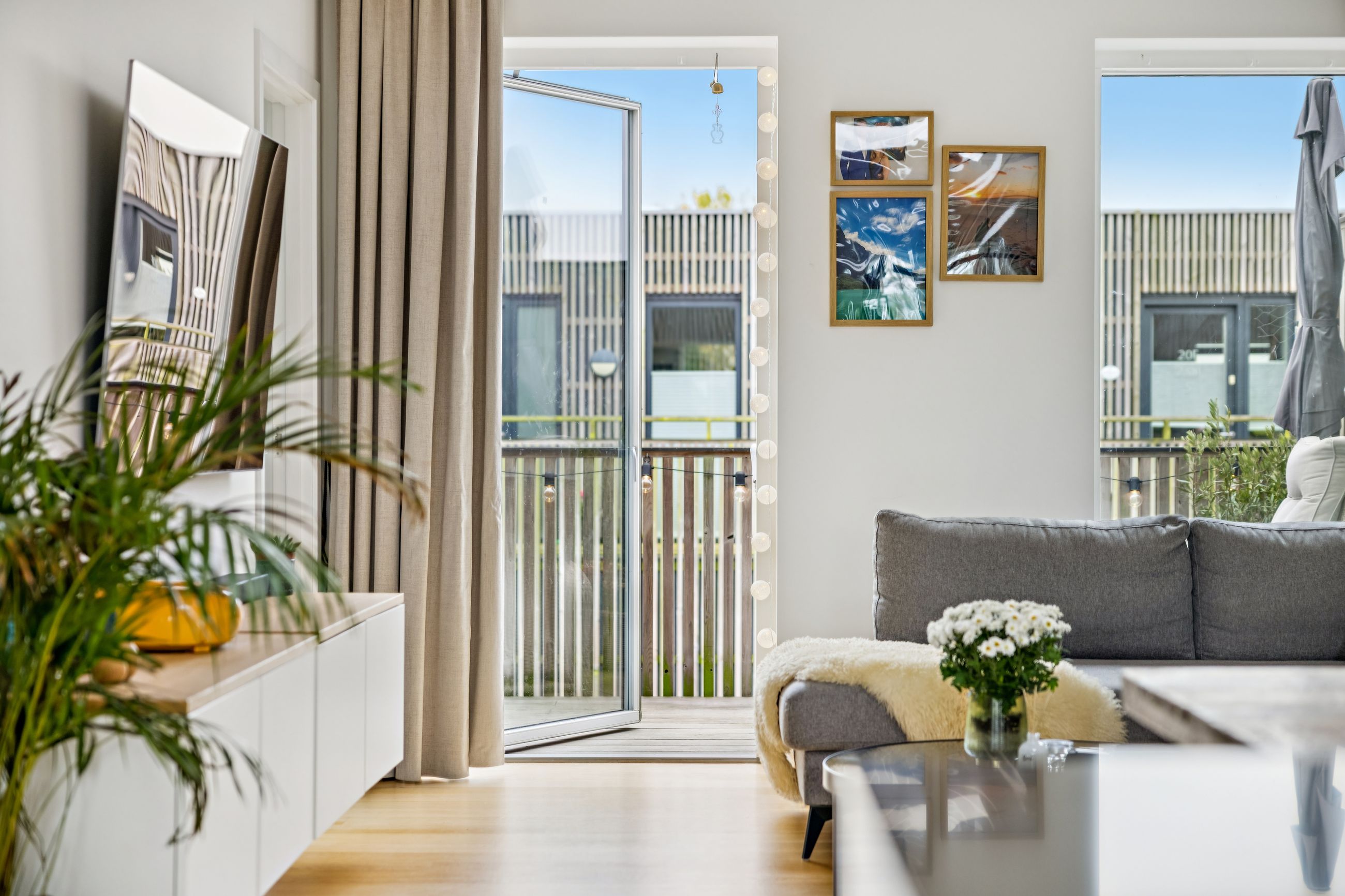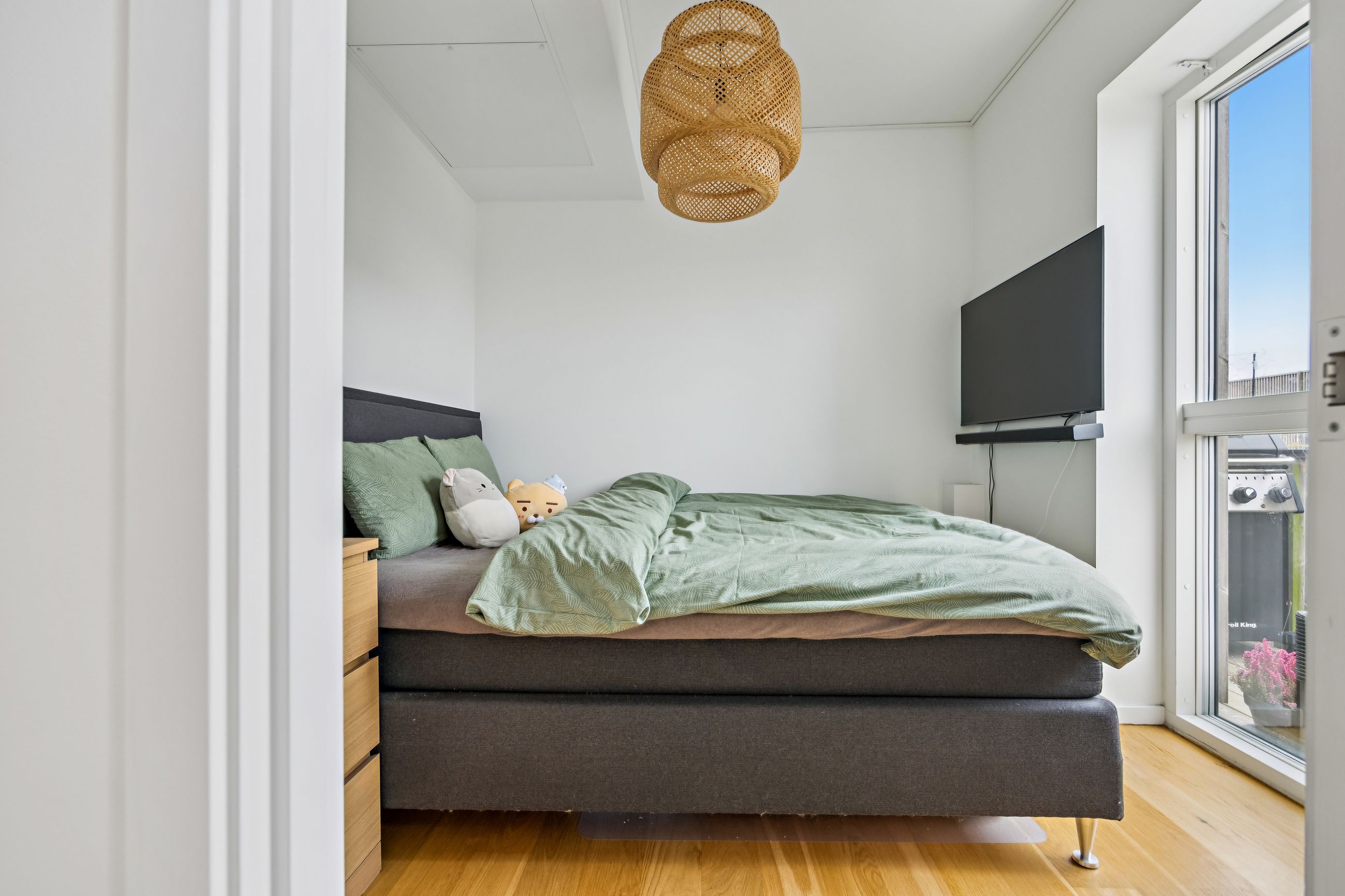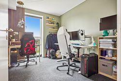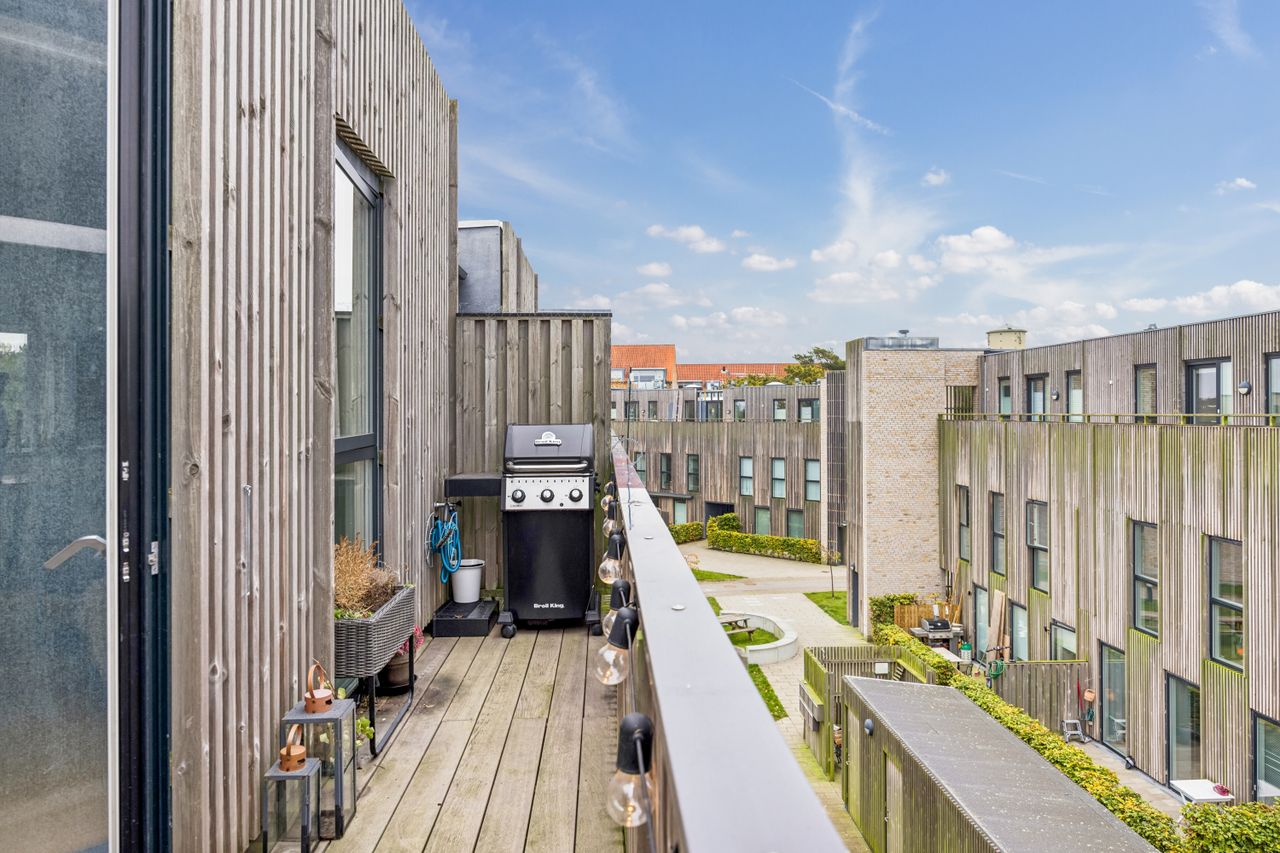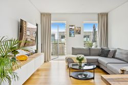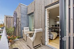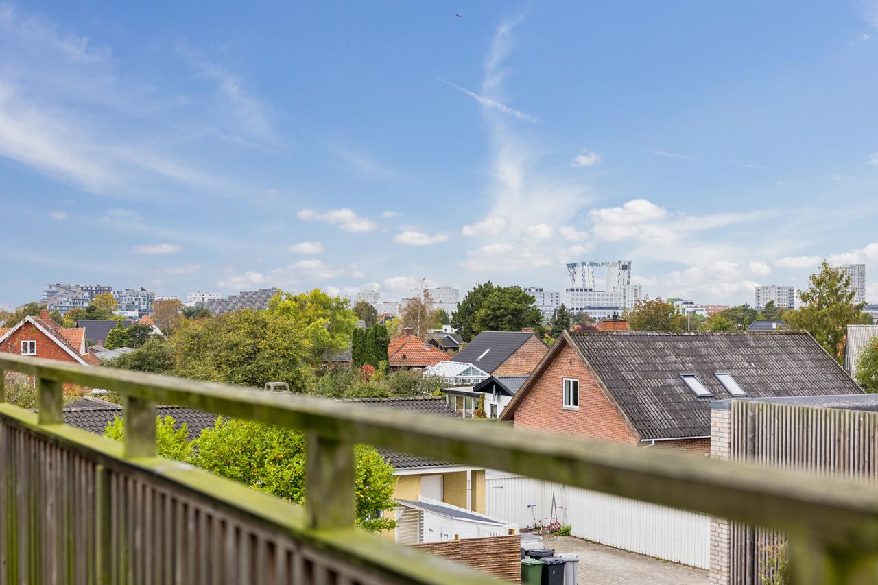 Fra stuen har du direkte adgang til en stor altan, hvor der er rigelig plads til både sofaarrangement og grill. Her kan du nyde de lange sommeraftener eller blot slappe af med en god bog under åben himmel. Lejligheden rummer desuden to rummelige soveværelser, som begge er ideelle til at skabe dit personlige fristed eller måske endda et hjemmekontor.
