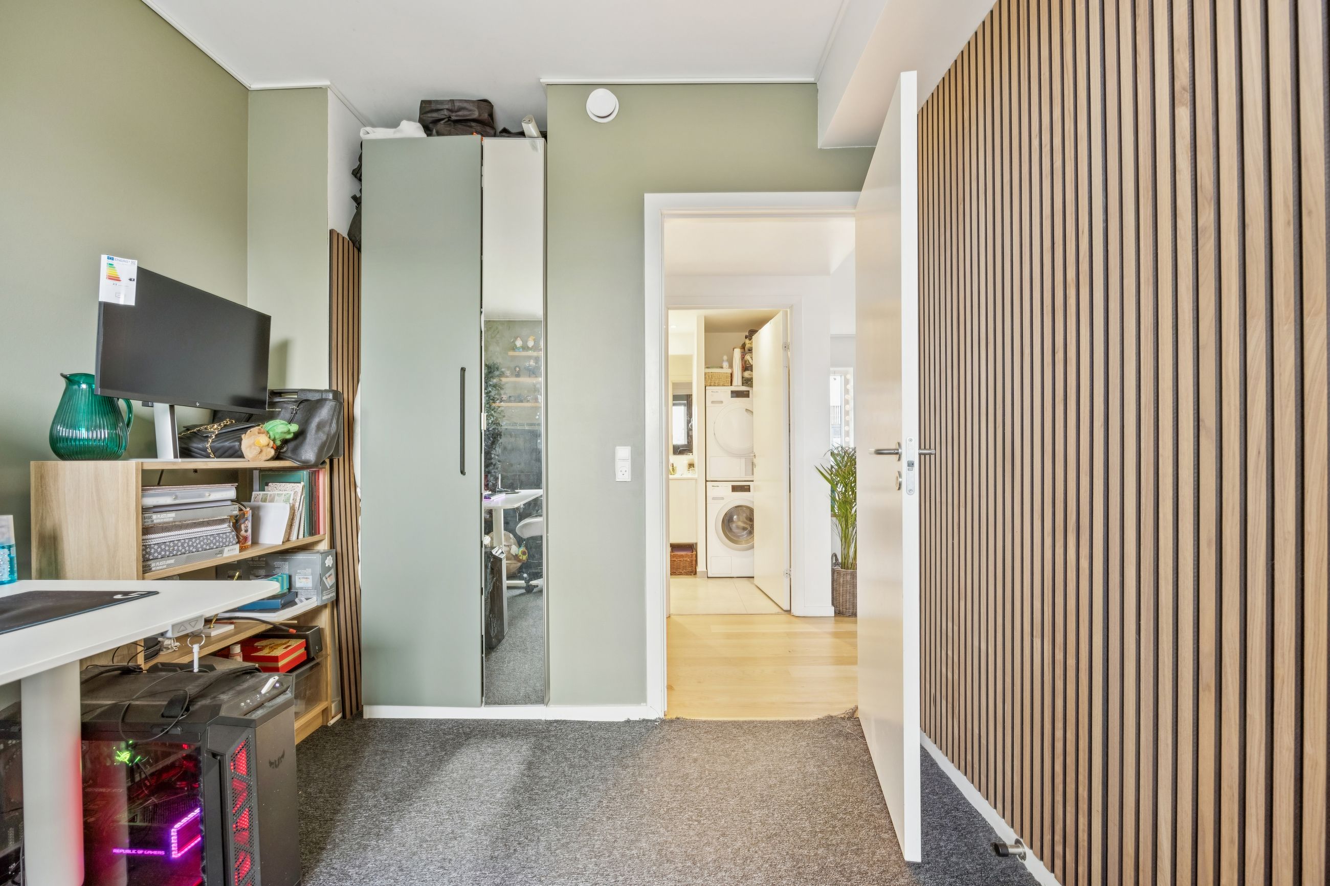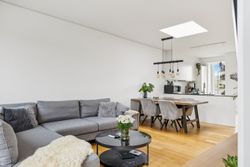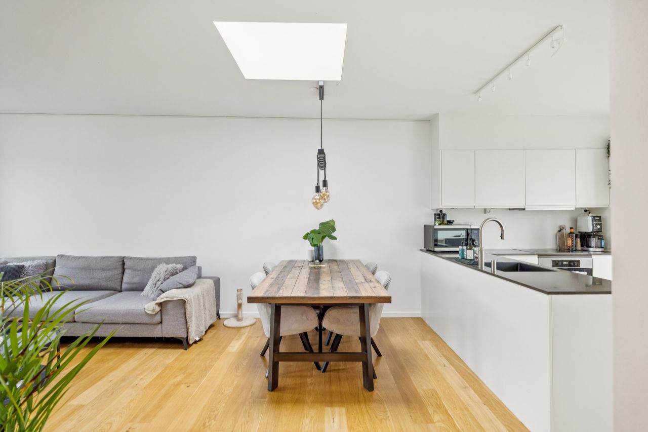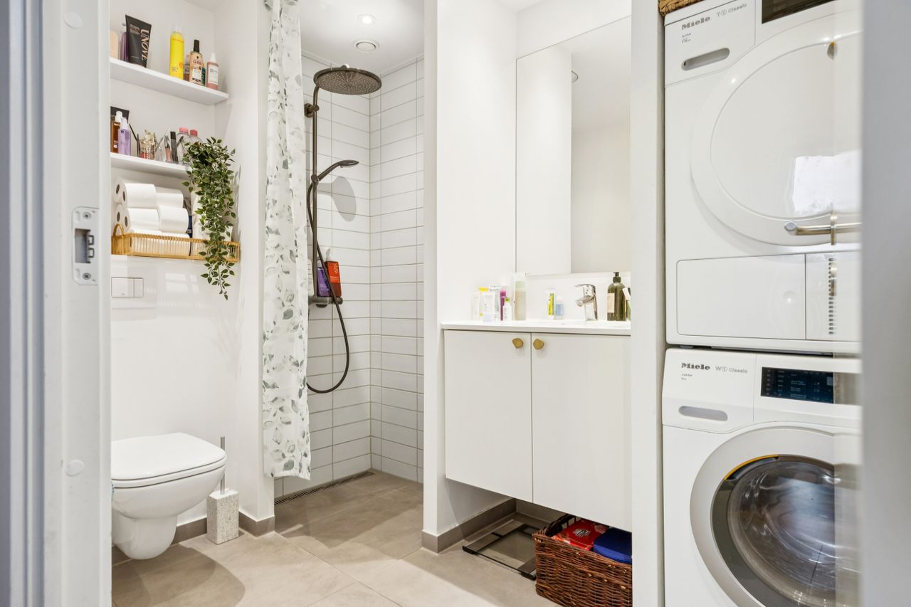 Badeværelset er intet mindre end fantastisk med sin separate bruseniche og stilrene design. Hele lejligheden fremstår indflytningsklar og har gulvvarme overalt, hvilket sikrer en behagelig temperatur året rundt. En unik fordel ved denne ejendom er foreningens private parkeringsplads – noget sjældent set så centralt i København – hvor der følger to parkeringslicenser med lejligheden.
