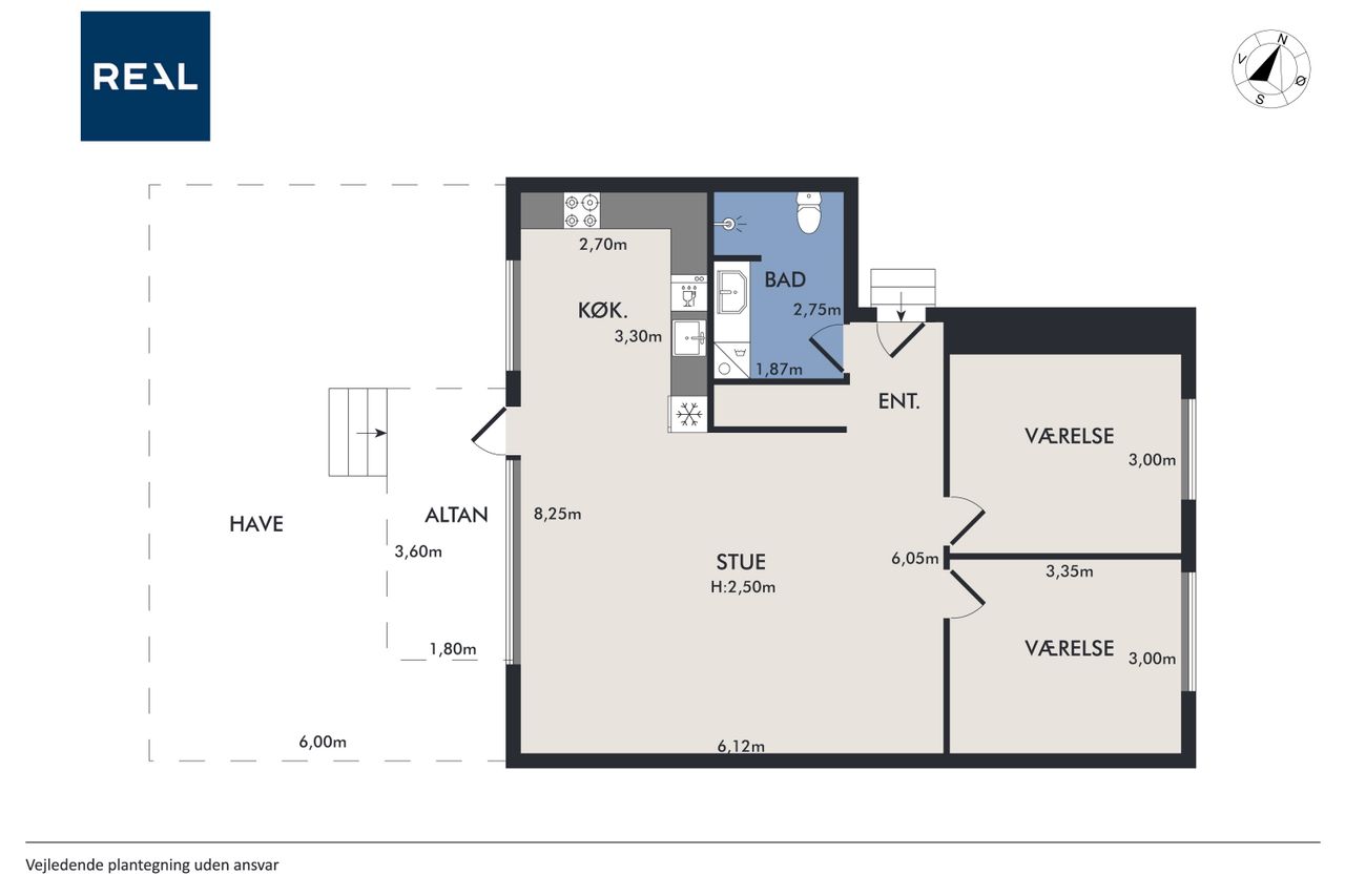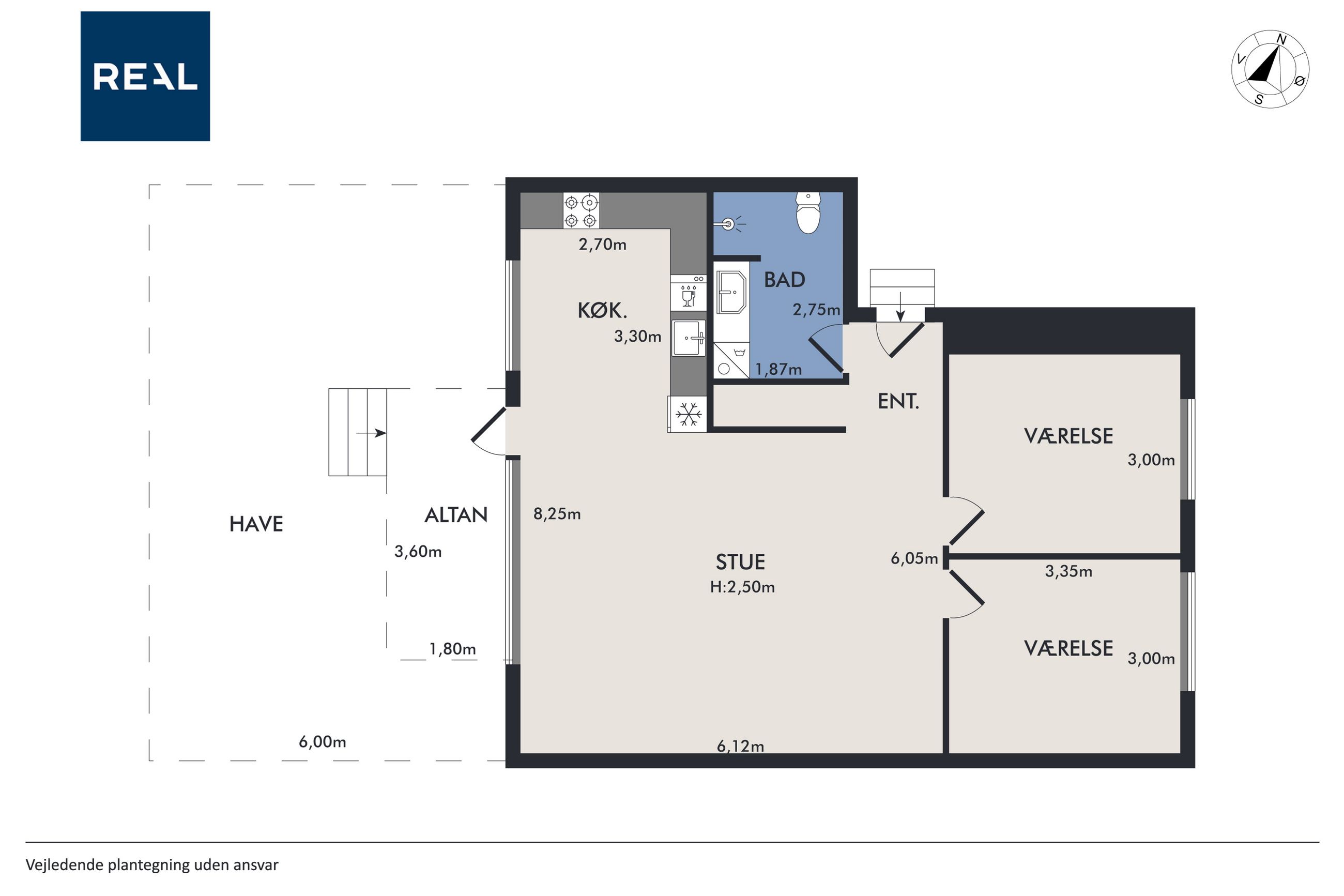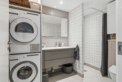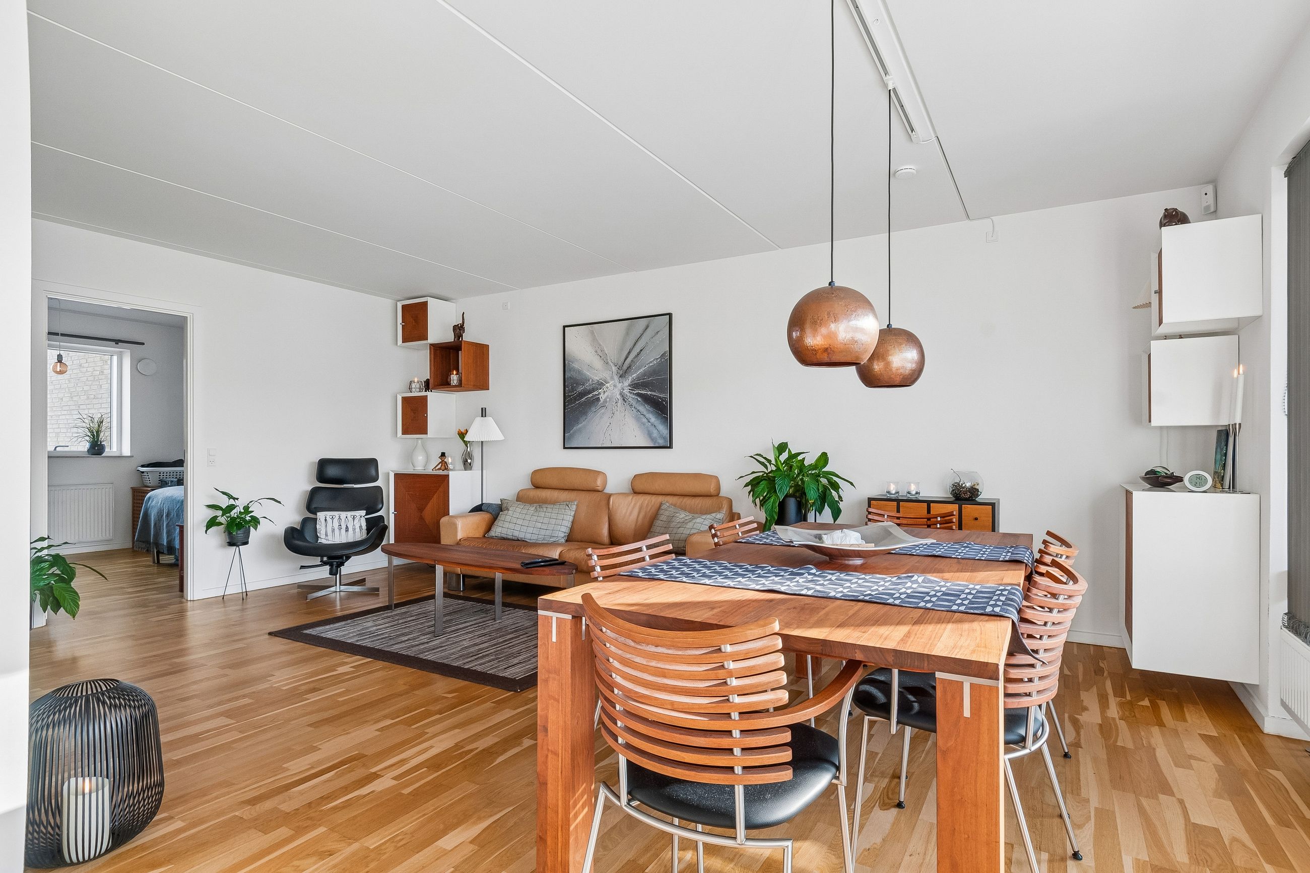 Lejligheden byder også på to rummelige værelser og depotrum i lejligheden placeret i entreen. Badeværelset er stort og funktionelt designet med en vaskesøjle hvor hvidevarene er skiftet til Asko produkter. Her er også separat bruseniche.