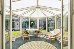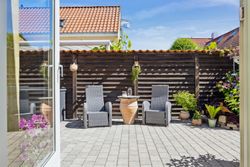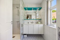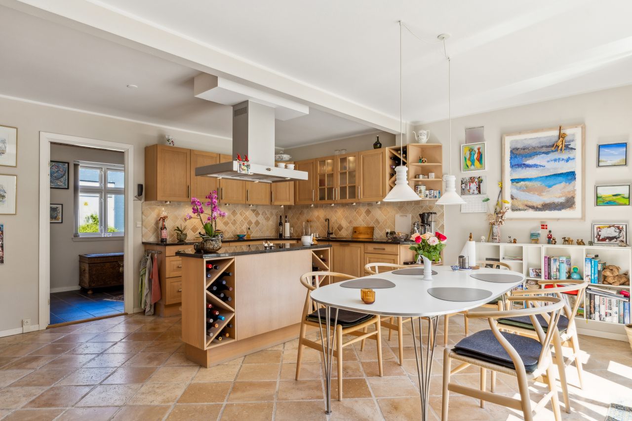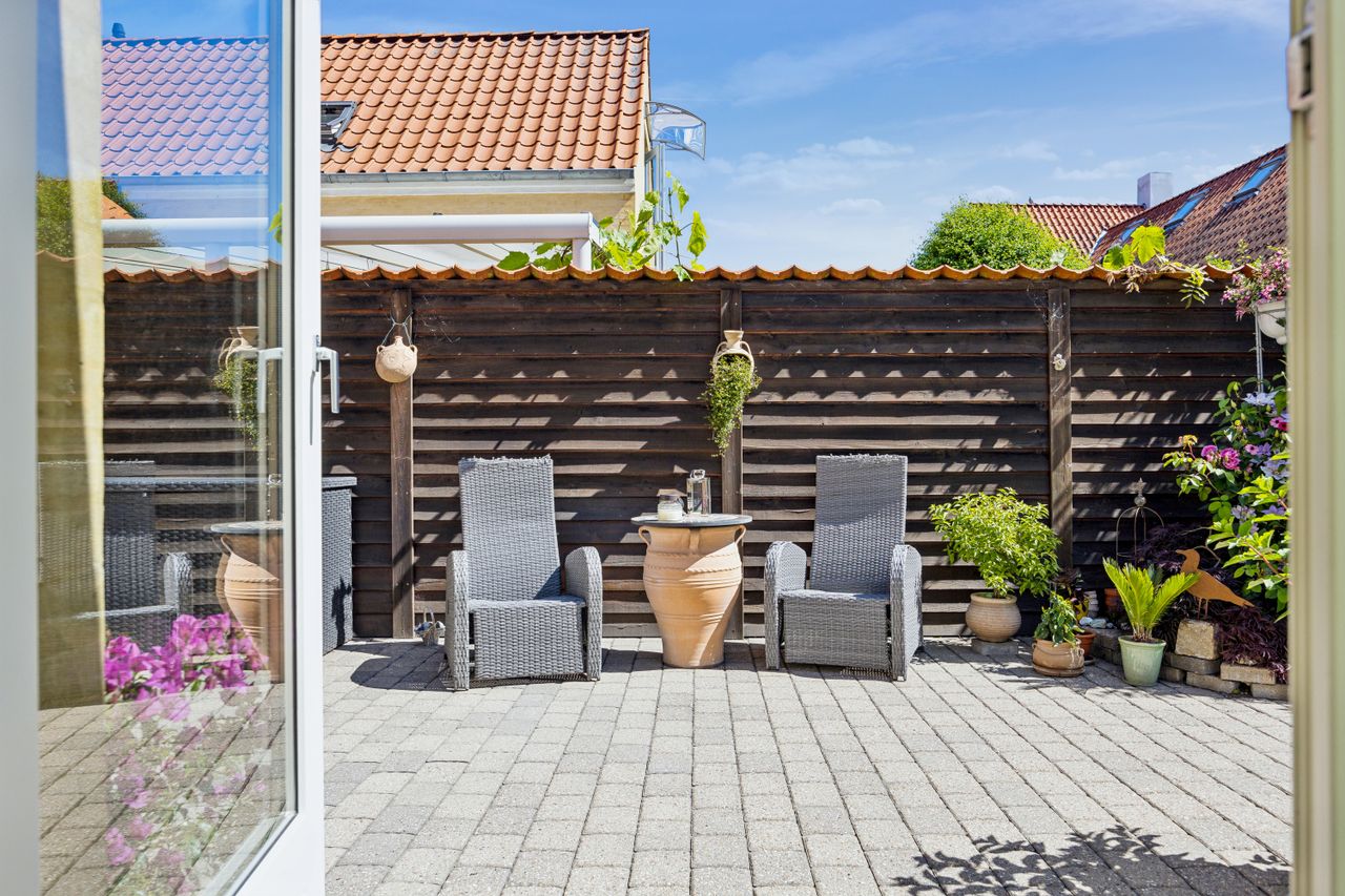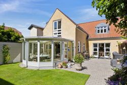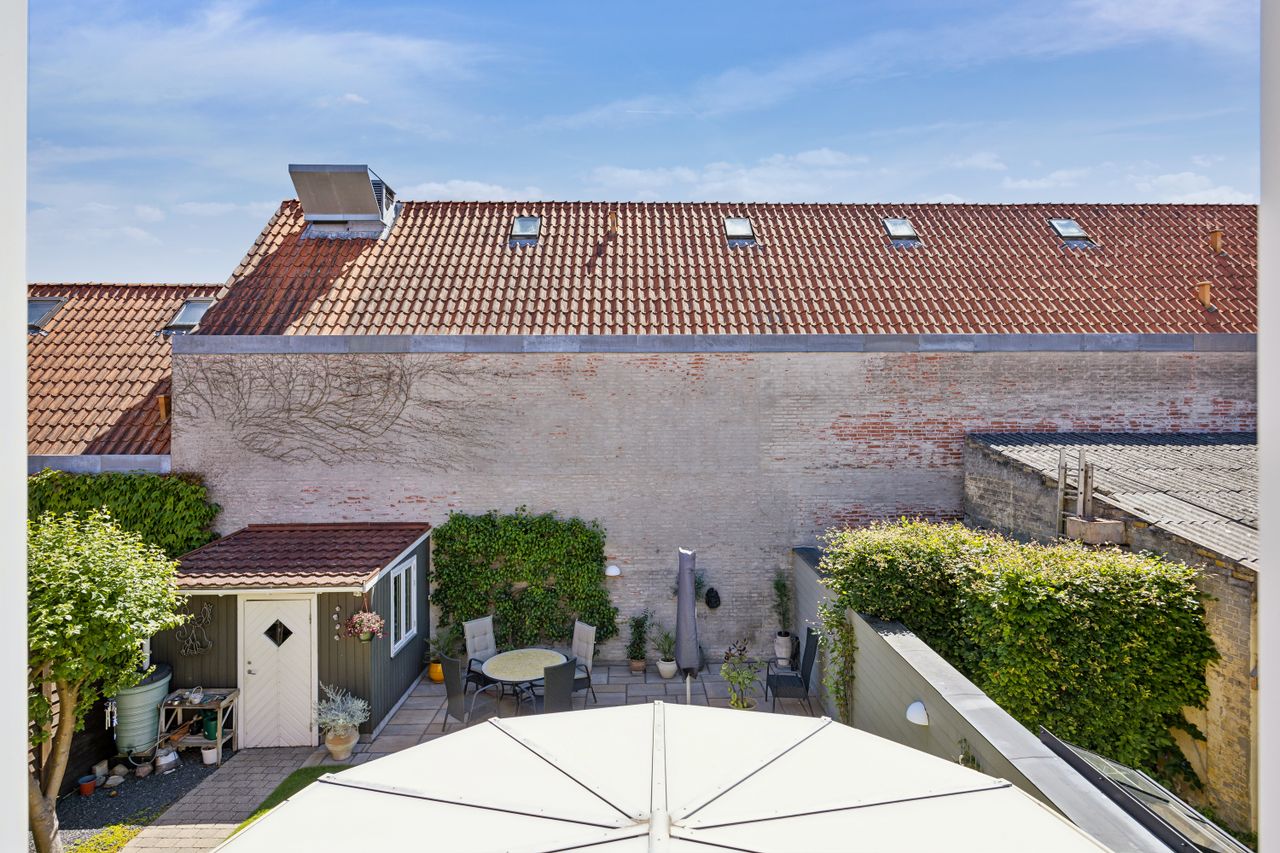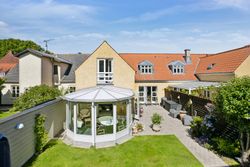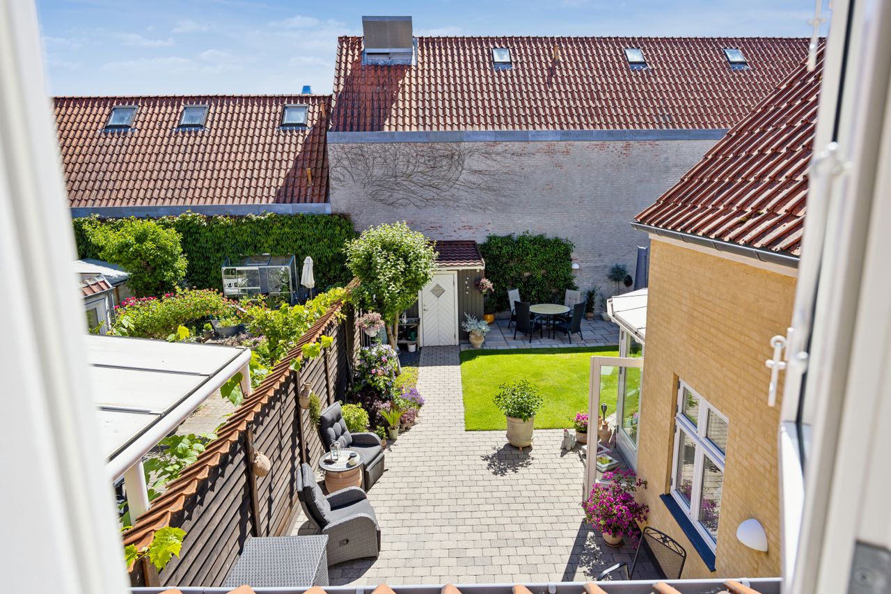 Gårdhaven er intet mindre end et privat paradis med græsarealer og terrasser, hvor lysindfaldet spiller smukt henover dagen. Den ugenerede atmosfære gør det til et ideelt sted at nyde roen midt i byen. Stueetagen byder også på en hyggelig stue med plankegulve samt en vidunderlig udestue med klinker og gulvvarme – her kan du nyde lyset året rundt.