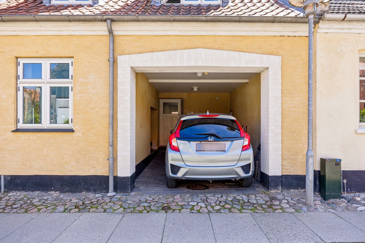Huset præsenterer sig med en smuk gulpudset facade og et klassisk tegltag, der indrammer den integrerede carport perfekt. Indenfor mødes du af en rummelig entré, der fører dig videre til det store køkken-alrum. Her finder du rigelig skabsplads samt en praktisk køkkenø - perfekt til både madlavning og samvær. Fra alrummet er der direkte adgang til den skønne gårdhave, som er kendt som en af de flotteste i Køge C.