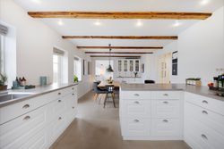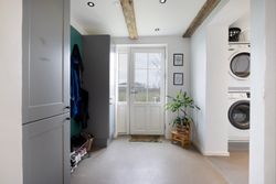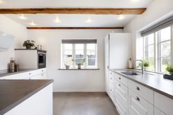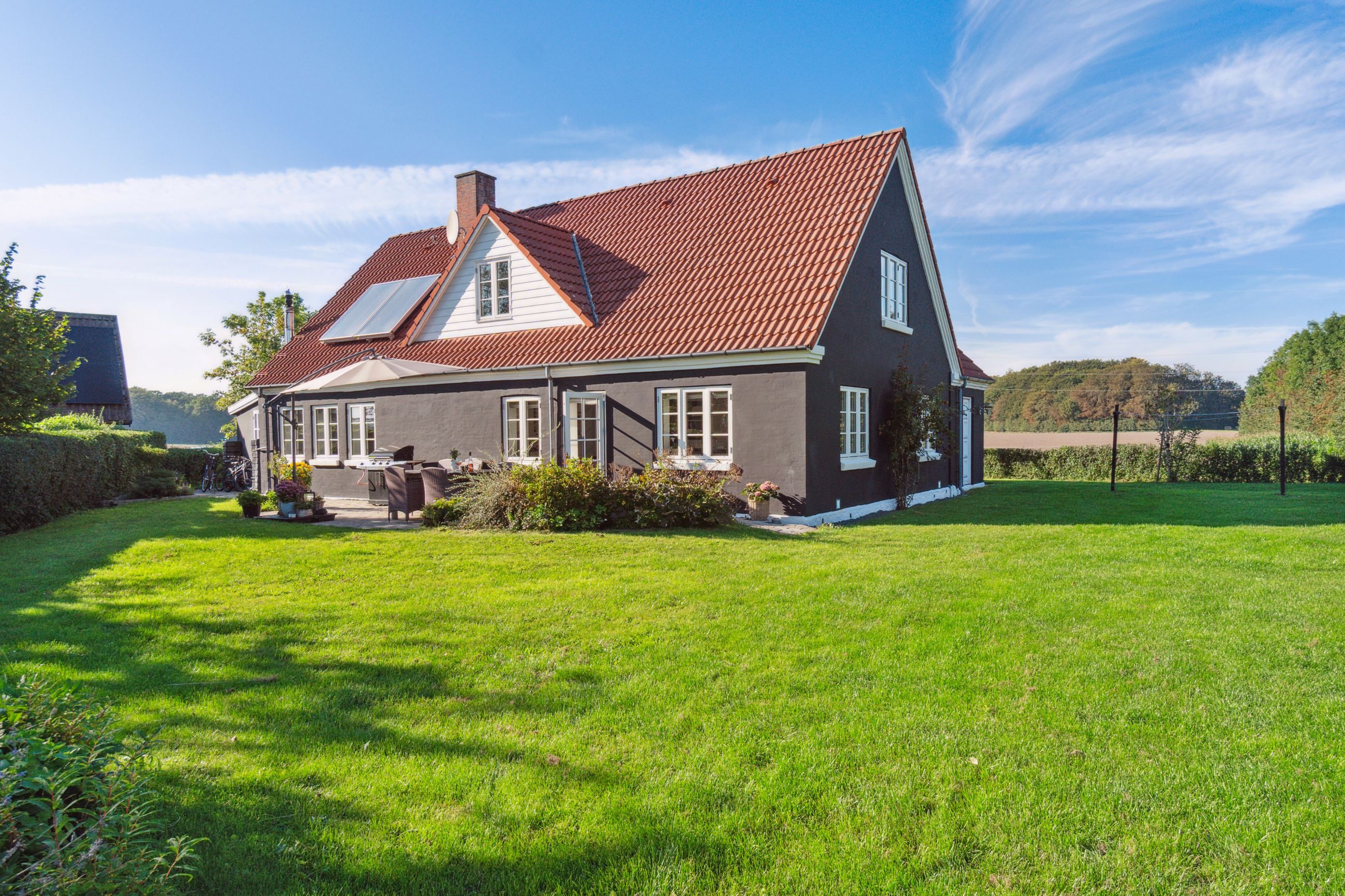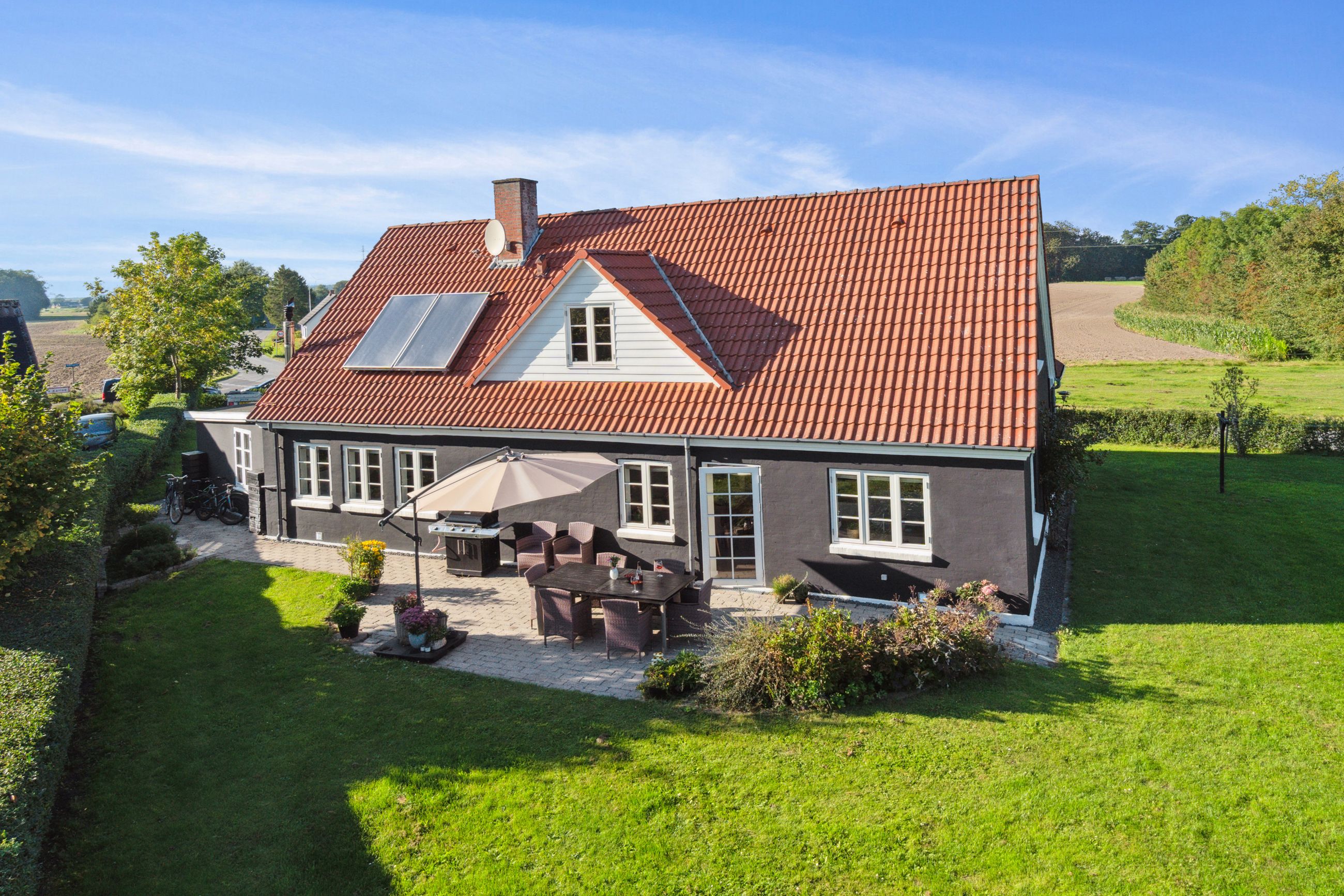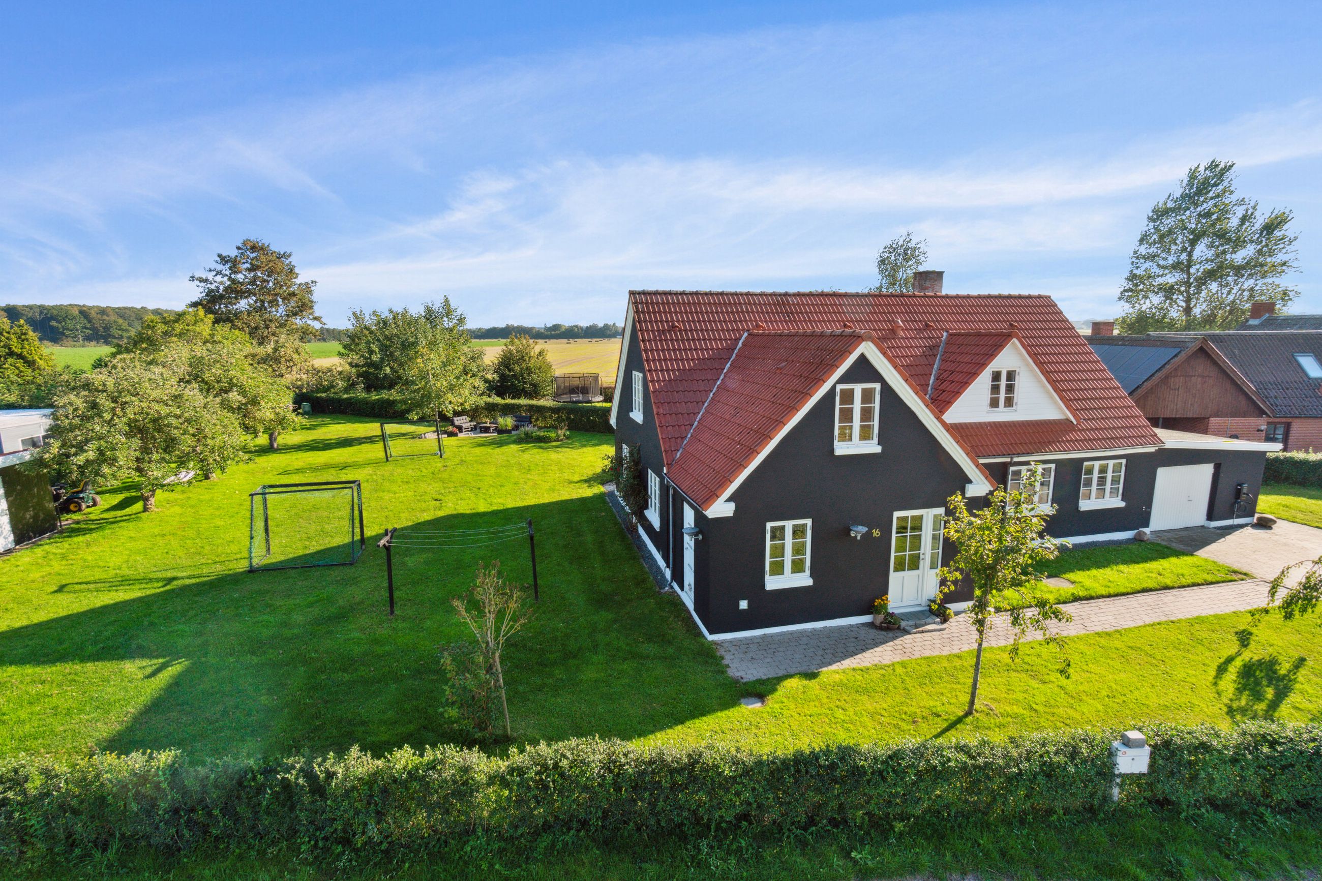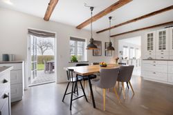 Midt imellem bølgende marker og under en stor himmelhvælving udbyder vi en flot og indflytningsklar ejendom. Kulagervej 16 hedder den, og sådan en sag er lige noget for jer - familien der drømmer om fred, ro og idyl. Jeres nye base balancerer på allerfineste vis autentisk, landlig charme og moderne, rene linjer. Huset har nemlig stået her lige siden 1896, og I overtager derfor en ejendom, hvor man kan mærke historiens vingesus, men opdateret til en version, der møder den moderne families stil og behov. Ejendommen bærer tydeligt præg af at være nænsomt vedligeholdt. Murværket er renoveret i 2023 og den sortpudsede villa står flot med hvide sprossevinduer i træ/alu, hvor de fleste er blevet udskiftet i henholdsvis 2015 og 2018. Grunden breder sig udover 1.261 m2 med stor græsplæne til leg og aktiviteter, frugttræer og buske, og fra køkkenet er der adgang til den sydvendte terrasse, hvor man kan nyde solen hele dagen og udsigten over markerne. Skal I med indenfor? I åbner døren til intet mindre end 208 m2 bolig, hvor hvert rum har en luftig og rar atmosfære med godt lysindfald og højt til loftet. Entréen åbner boligen fint op med tilstødende bryggers og afsæt til et gangareal, der binder under- og overetagen sammen. I vil bemærke de flotte New-Yorker-gulve, naturligvis med gulvvarme, der skaber et strømlinet look, og de flotte fritlagte bjælker i loftet. Hjemmets hjerte er køkken-alrummet, og her vil I samles omkring spisebordet såvel som den vinklede køkkenø. I åben forbindelse til køkkenet lokker den hyggelige opholdsstue, hvor hele familien kan slappe af sammen. I stueplan er også et brusebadeværelse, der blev renoveret i 2021, samt et værelse, der vil være perfekt som hjemmekontor eller arbejdsværelse. Førstesalen er stor og rummelig og byder på nogle store, dejlige værelser, så der er god plads til hele familien og heroppe finder I også husets andet badeværelse med gulvvarme. Skulle I selv have mod på at sætte jeres egen personlige finish, kan I se ind i mulighederne for at etablere en tagterrasse i forlængelse af soveværelset. Når man åbner et vindue for at få den friske luft ind, har man samtidig en skøn udsigt over markerne og skovenes trækroner. De store vidder og de nærliggende skove inviterer ud på tur, og I kan se frem til nogle dejlige gåture eller rigtigt flotte løbe/cykel-ruter! I det hele taget er det idyllen, der råder. Når I ikke er hjemme på adressen eller på tur i skovene, så befinder I jer måske i stationsbyen Karise. Her er der daginstitution, skole, indkøbsmuligheder et aktiv foreningsmiljø og gode forbindelser med offentlig transport til Køge og Roskilde. Køge kan også nås i bil på 20 min. og pendleren kan glæde sig over, at afstanden til motorvejen kan klares på 10 min. Alt i alt den perfekte blanding mellem naturskønne vidder og byliv. Velkommen