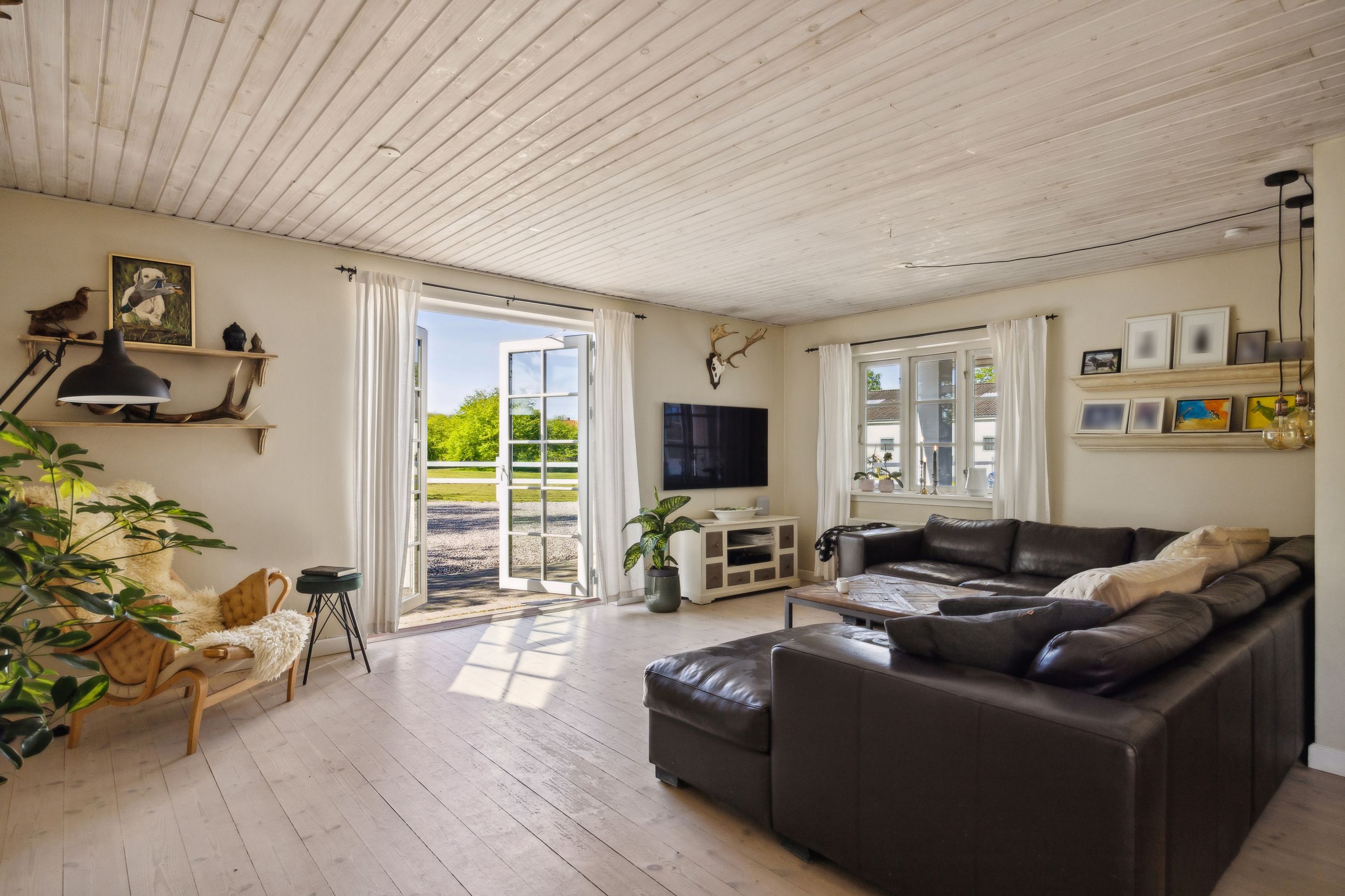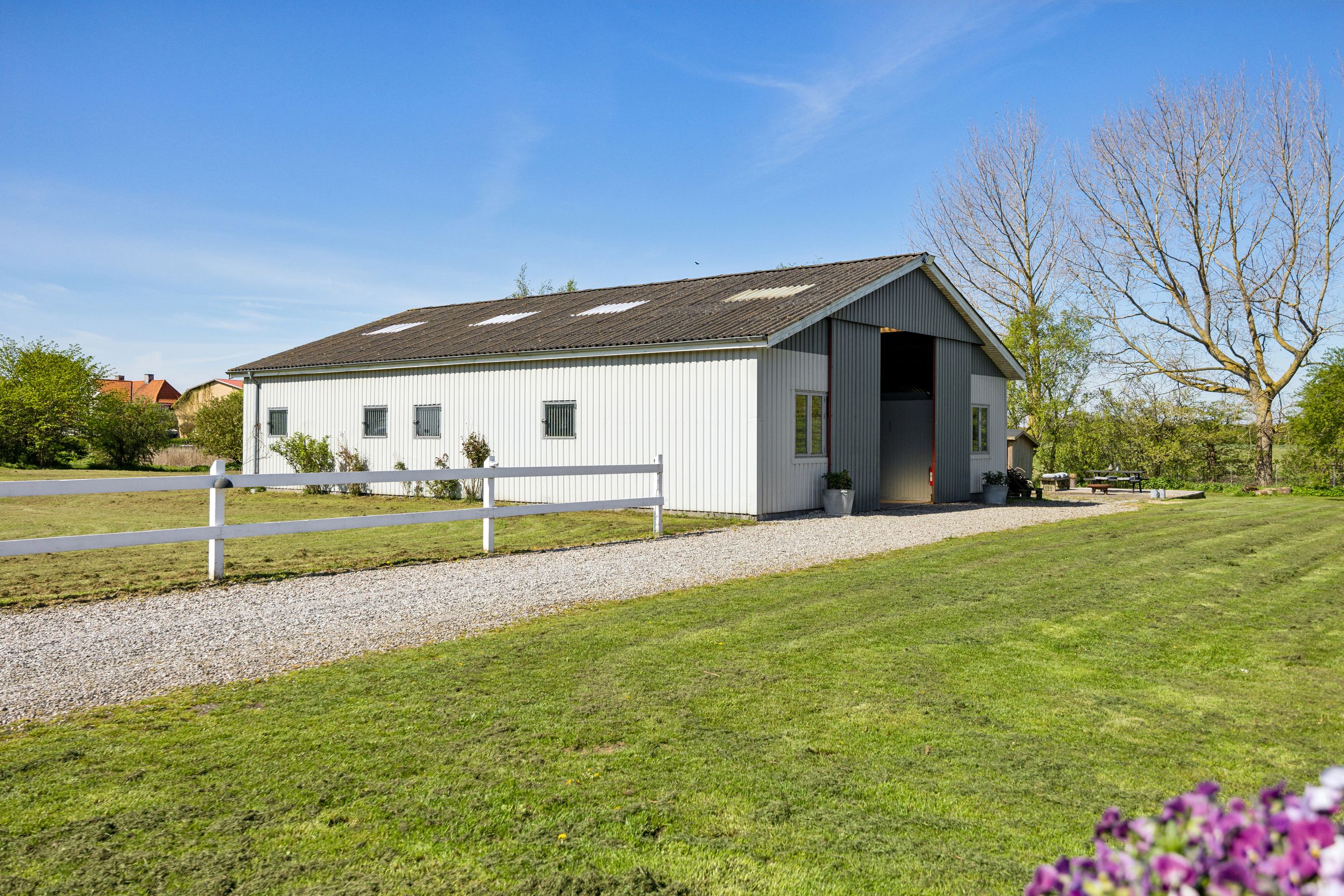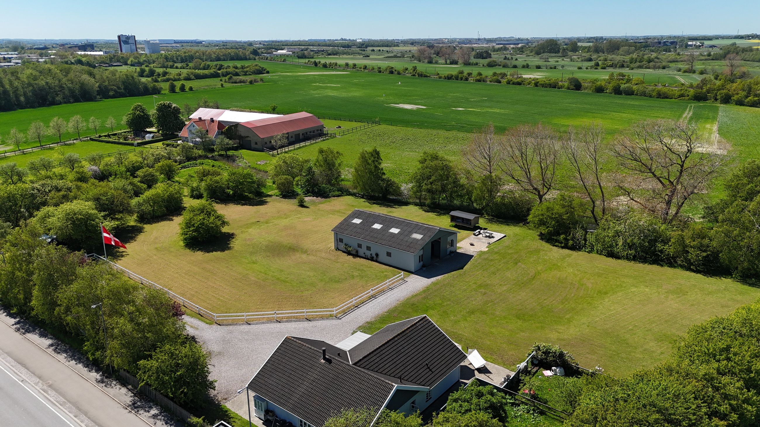 I helt kort gåafstand fra Jersie Strandpark finder I jeres næste boligkapitel, nærmere bestemt på Jersie Strandvej 96. Det er mulighedernes land, der folder sig ud på adressen, for en kæmpe matrikel danner ramme om både en velholdt etplansvilla og en stor staldbygning fra ca. 2001. Her kan I holde hest eller hund, og I kan give plads til værkstedet, veteranbilerne eller webshoppen. Med en stor udbygning og over 1,2 hektar jord er der plads nok til alle jeres drømme. I kan starte med en rundtur i huset. Ejendommen er et tidligere gartneri, men fra 1999 og i årene efter forvandlede sælger huset til den dejlige etplansvilla, der står i dag; her blev bygget til og renoveret. Alt fremstår pænt og velholdt, og facade samt sokkel blev malet så sent som i maj 2024. Der er tale om en bolig på 162 m2, og her får I en entré, et bryggers med egen indgang, hele to nydelige badeværelser, tre gode værelser og nogle dejlige opholdsrum. Rundt om i huset er der indrettet med både charmerende plankegulve og klinkegulve, hvoraf sidstnævnte gemmer på gulvvarme flere steder. Det bliver et rummeligt spisekøkken og en stor tilstødende stue, der sætter kulissen for familielivet; her får I nogle gode, indbydende rum med en hyggelig atmosfære, og rummene er indrettet med småsprossede vinduer, der lukker lyset ind. Stuen byder derudover på en fin brændeovn og en dobbeltdør, der skaber en flydende overgang til udelivet. I haven venter en stor, sydvestvendt fliseterrasse, der inviterer på læ og en skøn udsigt over grundens grønne omgivelser. Huset er perfekt placeret på grunden, for det ligger i hjørnet, hvilket giver en optimal udnyttelse af matriklen, og høje, flotte træer indrammer grunden, så der er sørget for privatlivet. Vender I blikket mod udbygningen, møder I omkring 200 m2 med mange muligheder. Med fri udsigt over alt det grønne, får I en fornemmelse af at være flyttet på landet, og ejendommen giver jer da også de muligheder, der normalvis forbindes med en landejendom – bl.a. dyrehold og en grund i hektarmål – men I har ikke forladt byen. I flytter til Jersie Strand, hvor I kan cykle til både skoler, pasningstilbud og fritidsaktiviteter, ligesom der er kun 1,4 km til S-toget og en smule længere til Køge Nord, og pendleren kobler sig lynhurtigt på motorvejen. Derudover har I få minutters gang til kysten, og åen løber langs jeres matrikel, så I skal ikke kigge langt efter vandet – det kan faktisk ses nede for enden af grunden, hvor I også kan bevæge jer direkte ud til skøn natur i mosen. Kan I se mulighederne? Vi tager jer meget gerne med på en fremvisning.