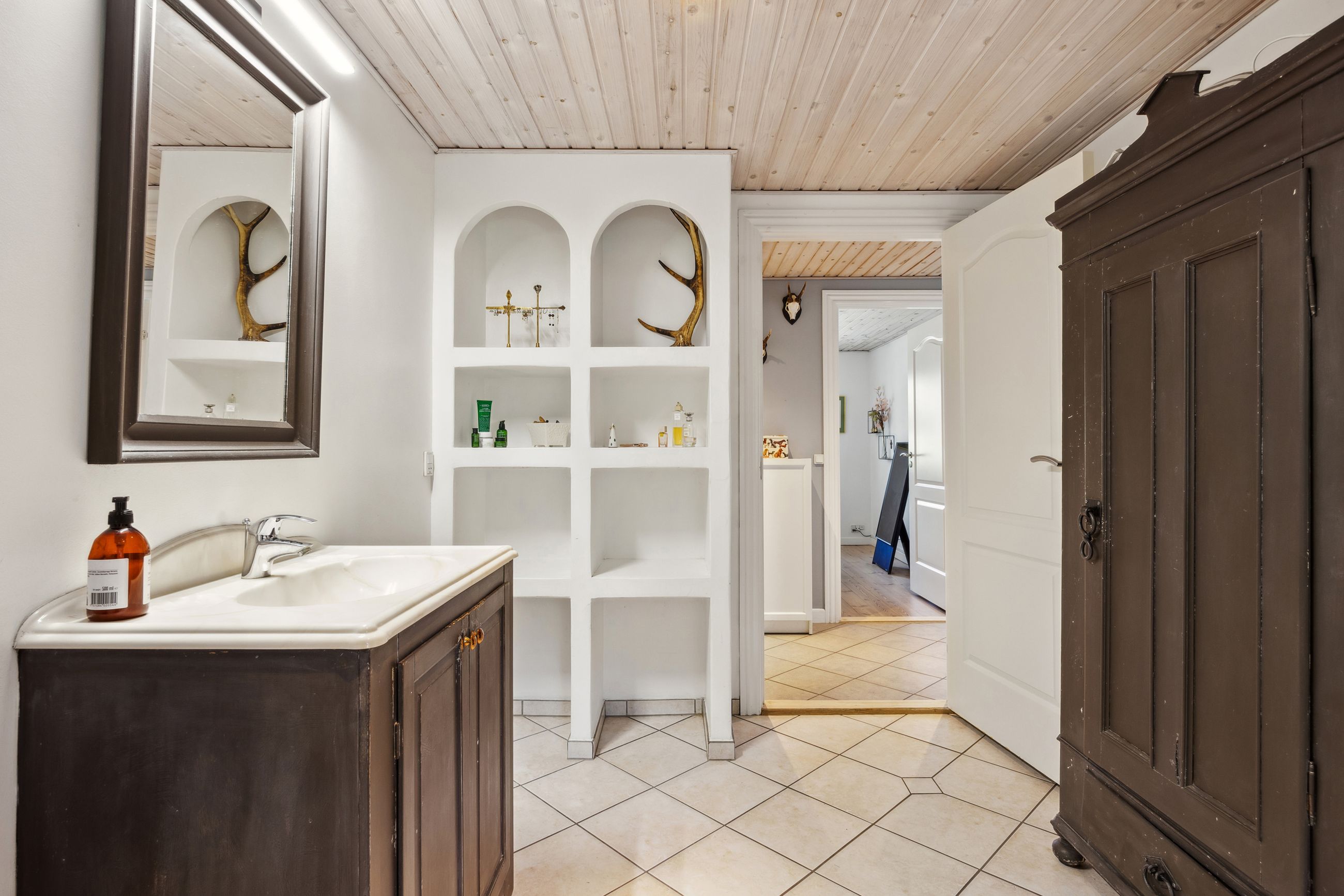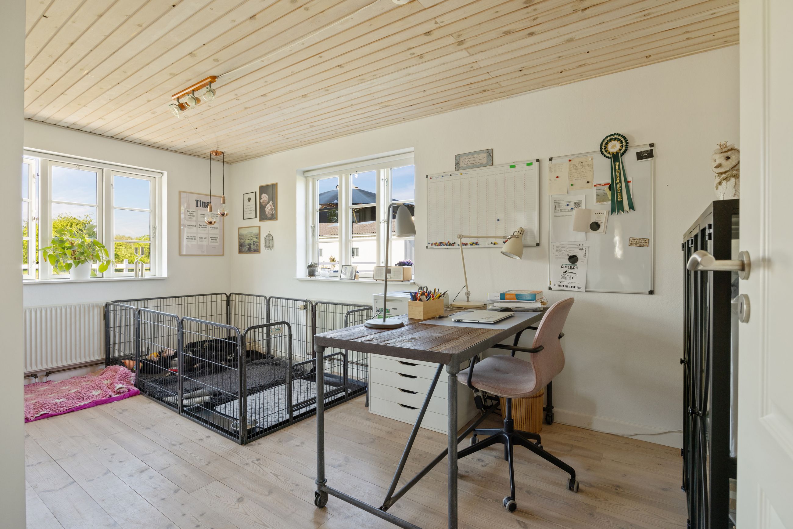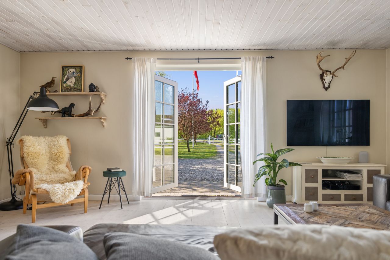 I helt kort gåafstand fra Jersie Strandpark finder I jeres næste boligkapitel, nærmere bestemt på Jersie Strandvej 96. Det er mulighedernes land, der folder sig ud på adressen, for en kæmpe matrikel danner ramme om både en velholdt etplansvilla og en stor staldbygning fra ca. 2001. Her kan I holde hest eller hund, og I kan give plads til værkstedet, veteranbilerne eller webshoppen. Med en stor udbygning og over 1,2 hektar jord er der plads nok til alle jeres drømme. I kan starte med en rundtur i huset. Ejendommen er et tidligere gartneri, men fra 1999 og i årene efter forvandlede sælger huset til den dejlige etplansvilla, der står i dag; her blev bygget til og renoveret. Alt fremstår pænt og velholdt, og facade samt sokkel blev malet så sent som i maj 2024. Der er tale om en bolig på 162 m2, og her får I en entré, et bryggers med egen indgang, hele to nydelige badeværelser, tre gode værelser og nogle dejlige opholdsrum. Rundt om i huset er der indrettet med både charmerende plankegulve og klinkegulve, hvoraf sidstnævnte gemmer på gulvvarme flere steder. Det bliver et rummeligt spisekøkken og en stor tilstødende stue, der sætter kulissen for familielivet; her får I nogle gode, indbydende rum med en hyggelig atmosfære, og rummene er indrettet med småsprossede vinduer, der lukker lyset ind. Stuen byder derudover på en fin brændeovn og en dobbeltdør, der skaber en flydende overgang til udelivet. I haven venter en stor, sydvestvendt fliseterrasse, der inviterer på læ og en skøn udsigt over grundens grønne omgivelser. Huset er perfekt placeret på grunden, for det ligger i hjørnet, hvilket giver en optimal udnyttelse af matriklen, og høje, flotte træer indrammer grunden, så der er sørget for privatlivet. Vender I blikket mod udbygningen, møder I omkring 200 m2 med mange muligheder. Med fri udsigt over alt det grønne, får I en fornemmelse af at være flyttet på landet, og ejendommen giver jer da også de muligheder, der normalvis forbindes med en landejendom – bl.a. dyrehold og en grund i hektarmål – men I har ikke forladt byen. I flytter til Jersie Strand, hvor I kan cykle til både skoler, pasningstilbud og fritidsaktiviteter, ligesom der er kun 1,4 km til S-toget og en smule længere til Køge Nord, og pendleren kobler sig lynhurtigt på motorvejen. Derudover har I få minutters gang til kysten, og åen løber langs jeres matrikel, så I skal ikke kigge langt efter vandet – det kan faktisk ses nede for enden af grunden, hvor I også kan bevæge jer direkte ud til skøn natur i mosen. Kan I se mulighederne? Vi tager jer meget gerne med på en fremvisning.