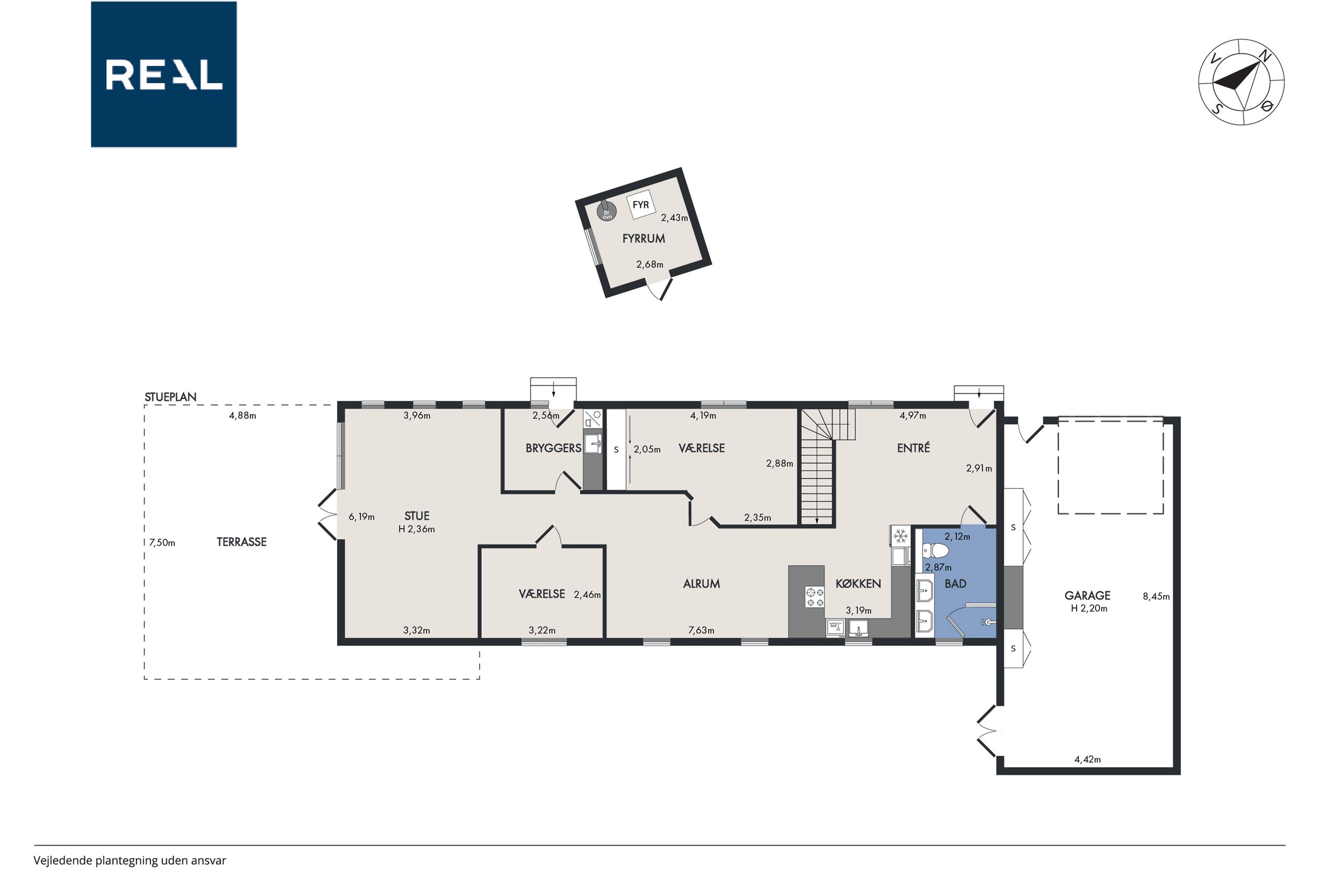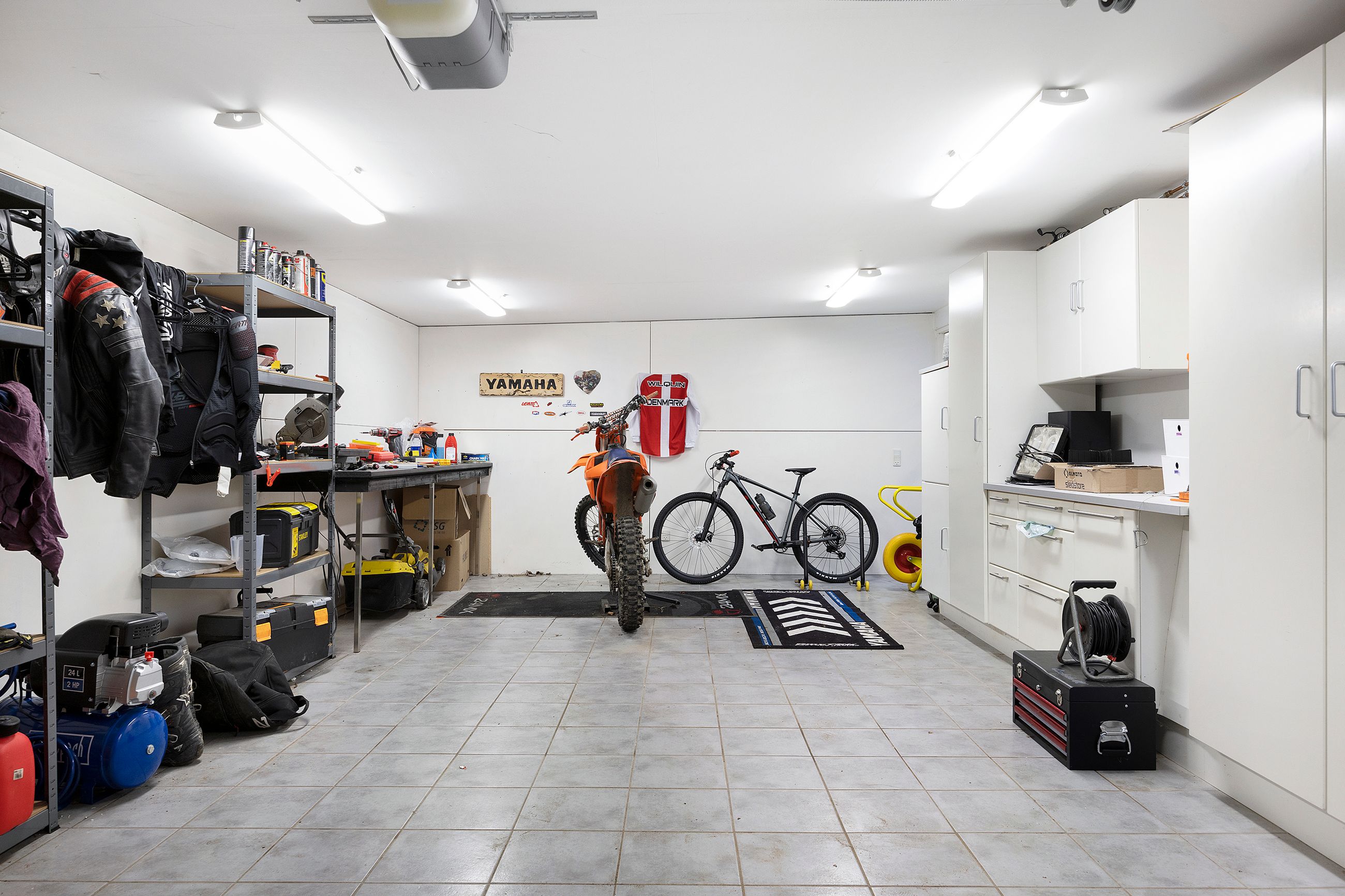 rummelige garage, der desuden også kan indrettes med værksted.