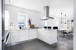 køkkenøen, så samtalen kan flyde frit mellem kok og gæster.