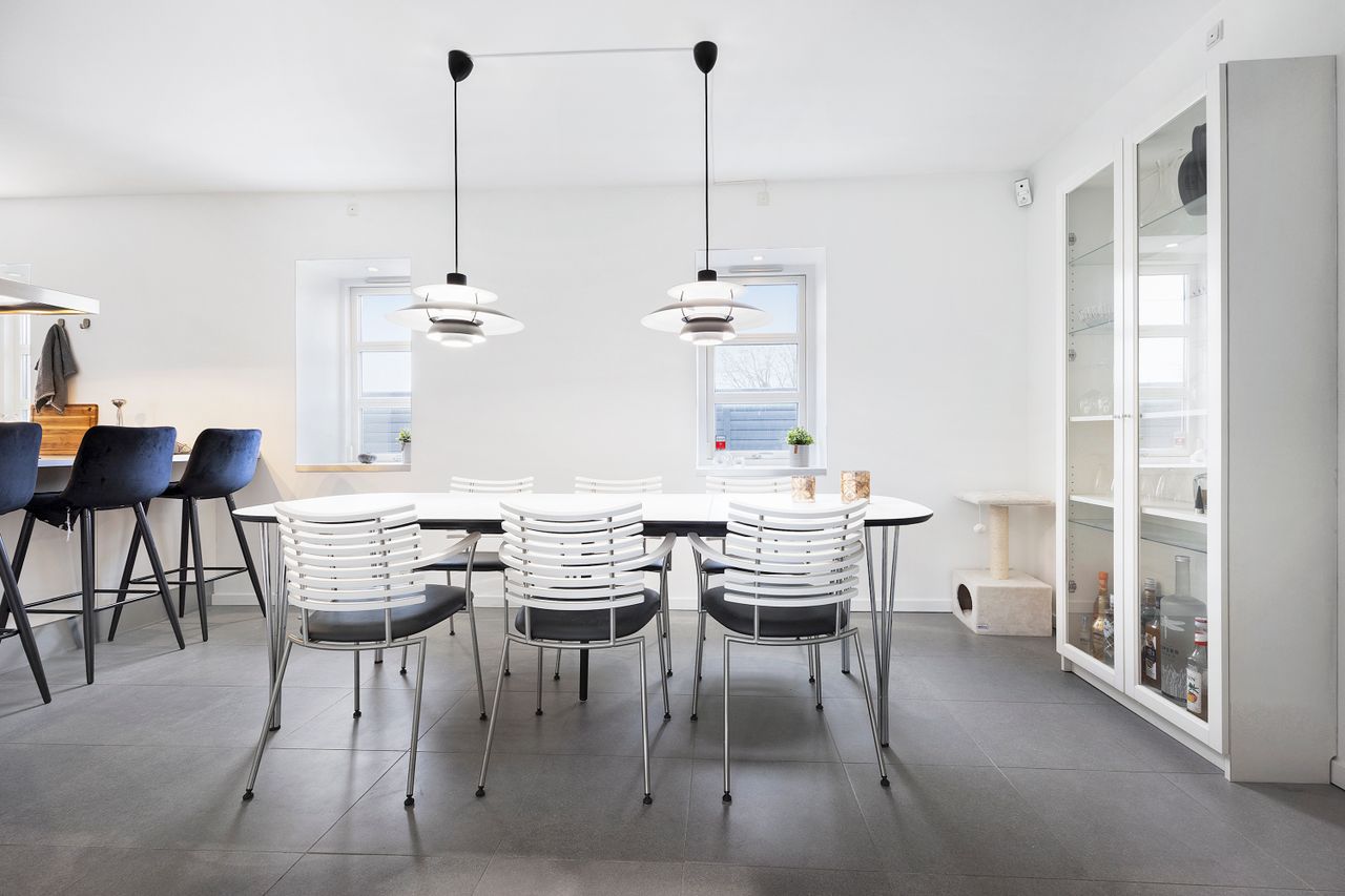 metalbordplader, der tilfører industrielle fornemmelser. Her skal spisebordet placeres i alrummet overfor