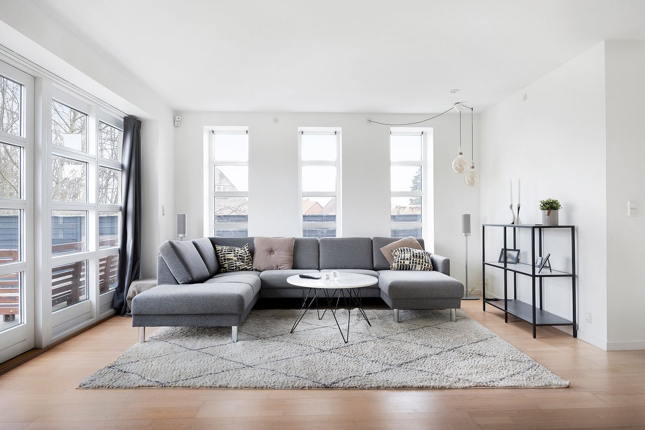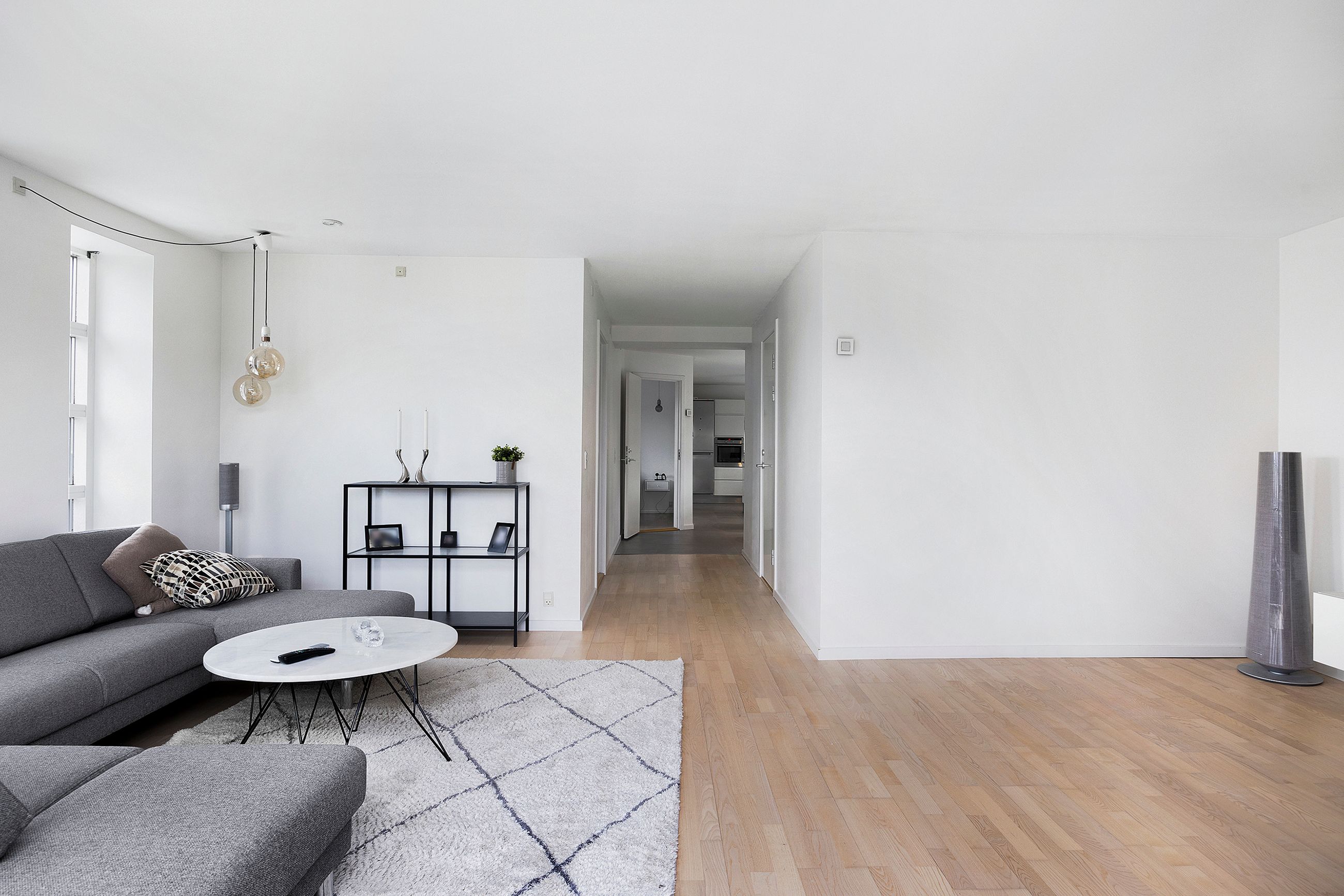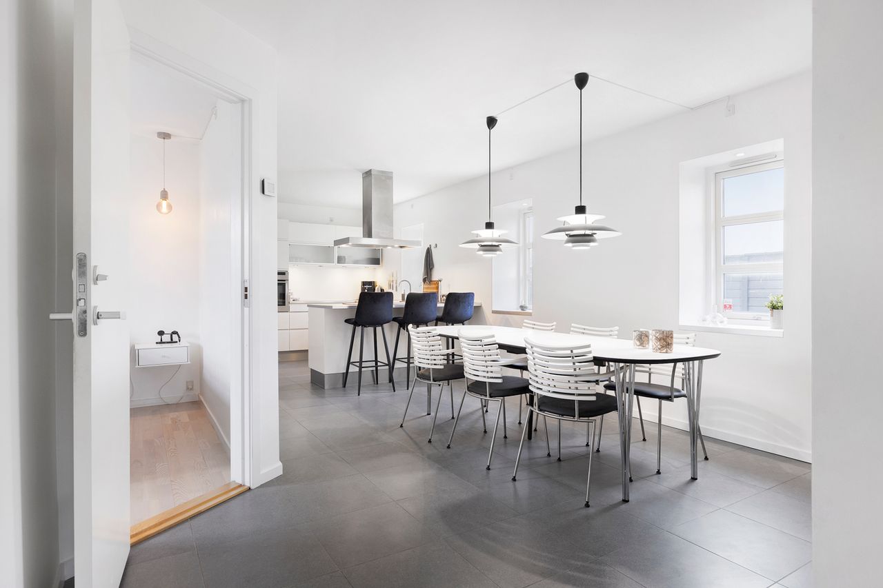 videre rundt i jeres nye hjem, og I bliver mødt af et stilrent og lyst udtryk fra start til slut. Huset har nemlig