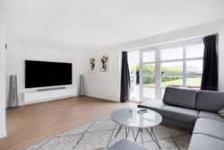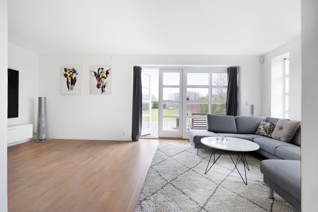 i hele stueetagen, luft-til-vand-varmepumpe fra 2023 og generelt en indretning, der komplementerer den