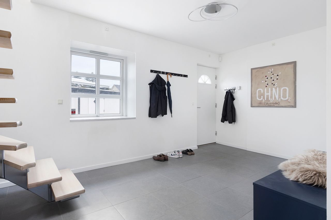 som i bryggerset. Den rummelige entré giver god plads til at jakke og sko kan smides, før I bevæger jer