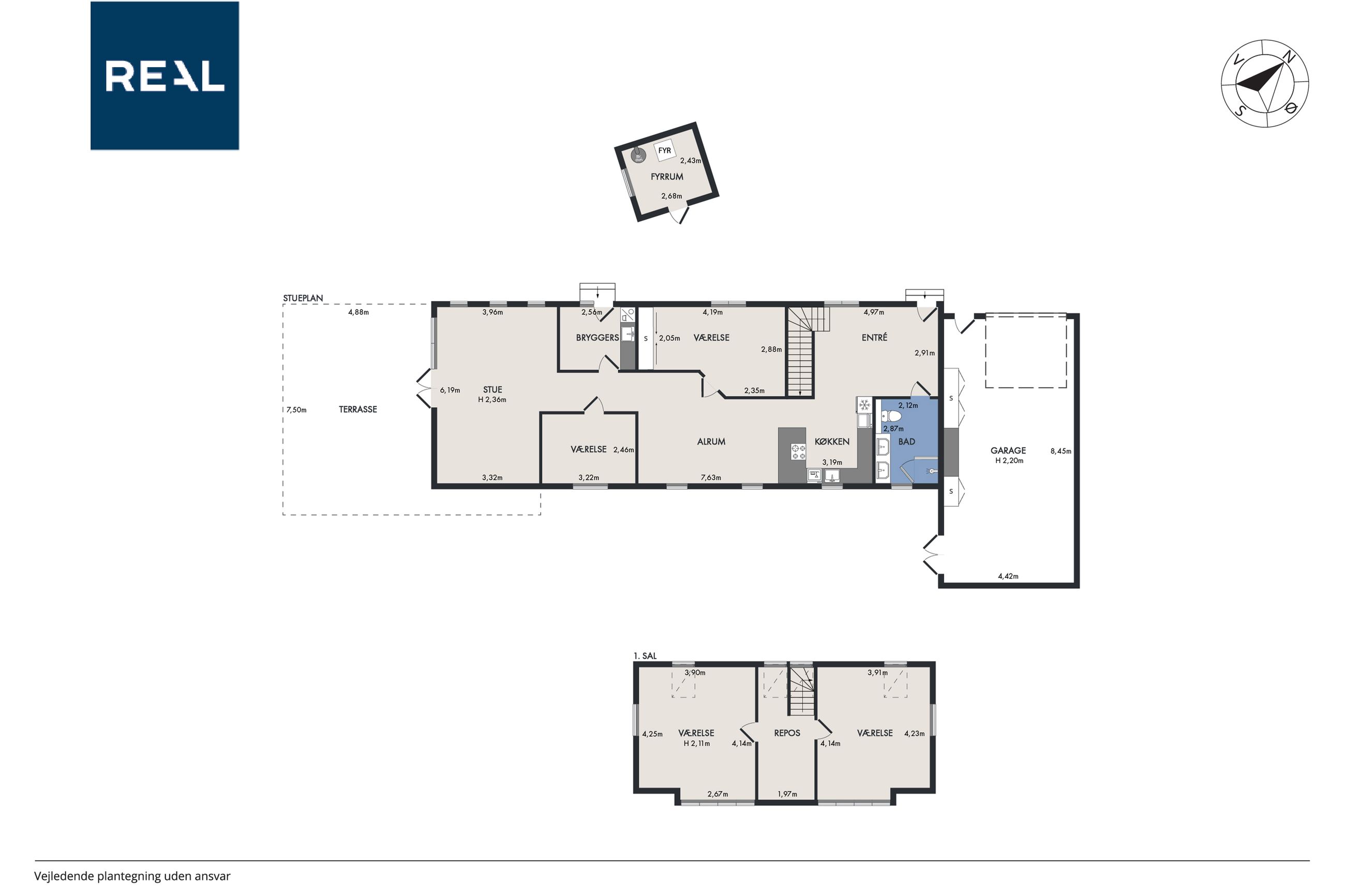 Villaens planløsning dækker over 168 kvadratmeter i to plan og kan tage sin begyndelse i entréen såvel