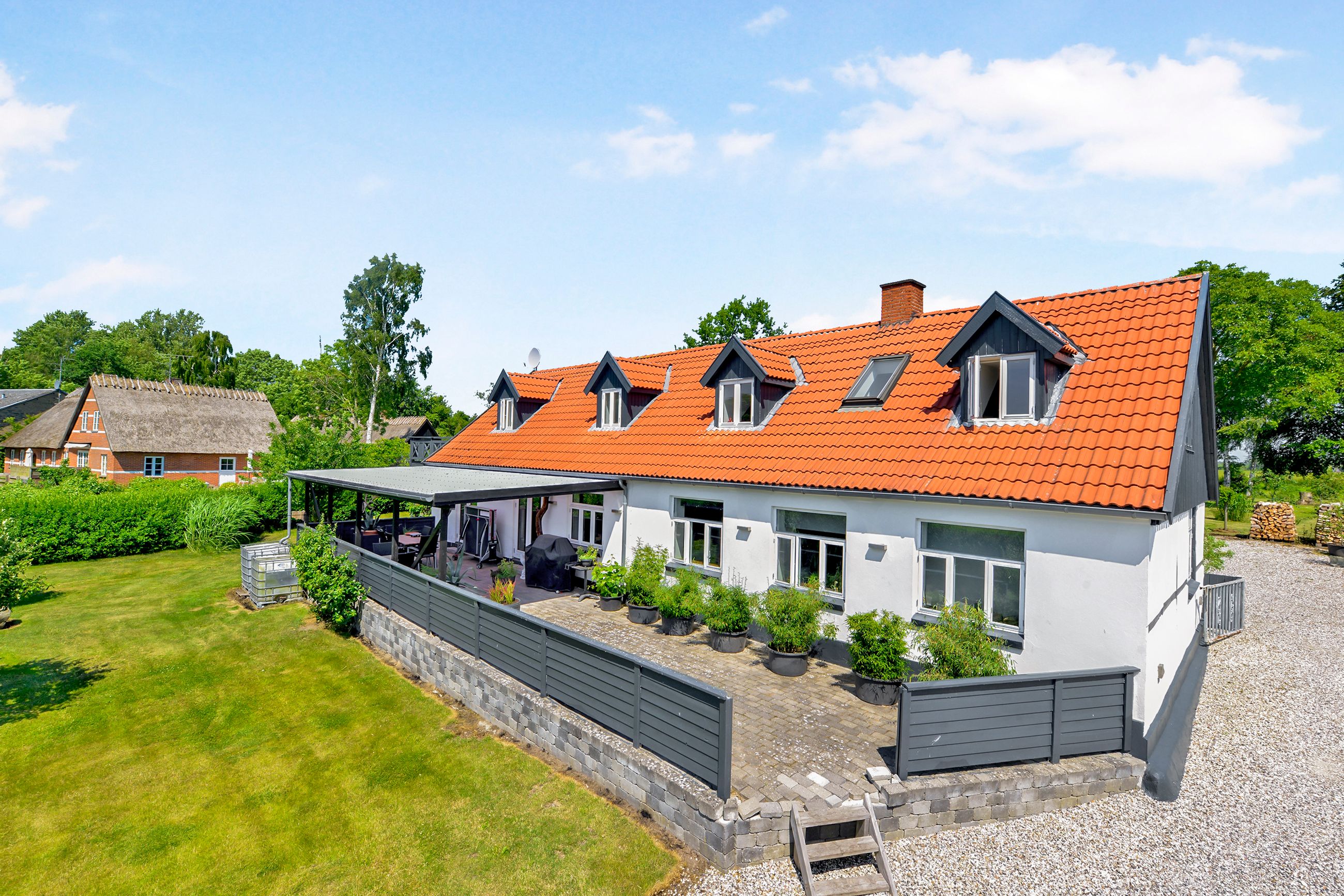 Denne charmerende ejendom er flot istandsat og ligger smukt ud til åbne marker og en sø blot en halv