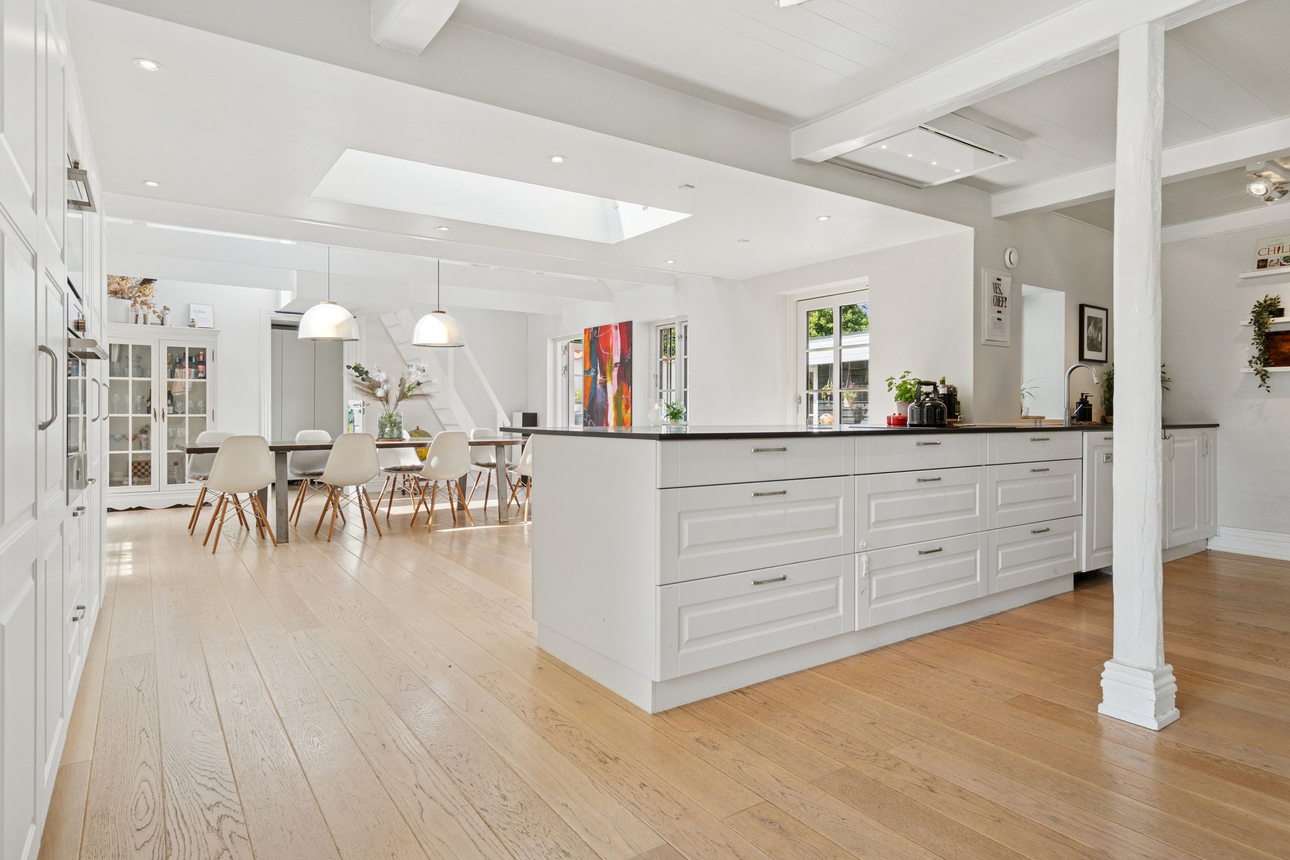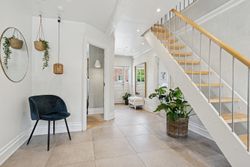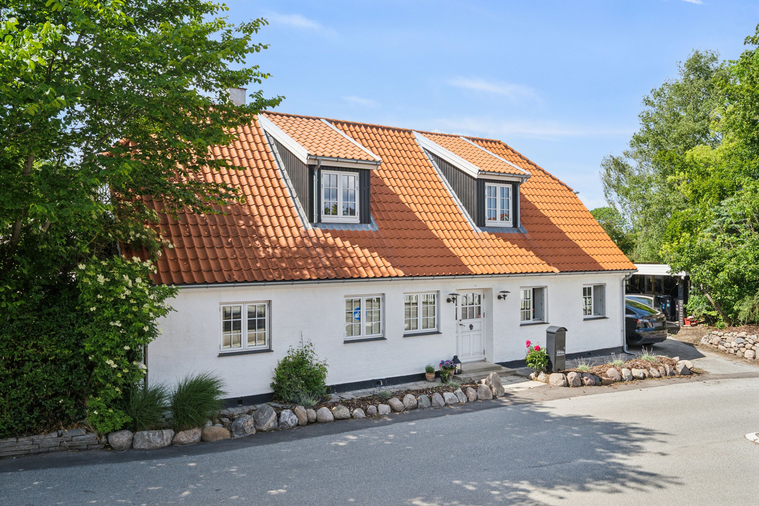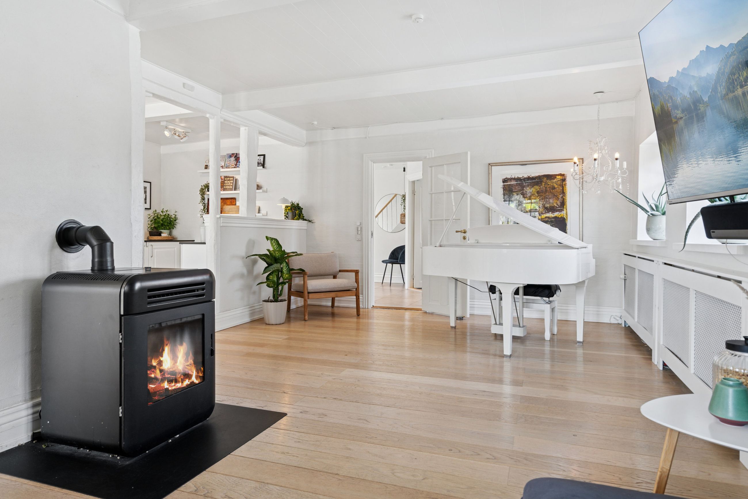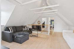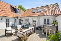Husets hjerte er det indbydende køkken-alrum, som blev renoveret i 2017. Her kan familien samles omkring måltiderne i lyse omgivelser med udsigt til den syd-vest vendte have. Boligen byder på fem rummelige soveværelser og to moderne badeværelser fra 2017, samt et ekstra badeværelse i annekset. Gulvvarme sikrer en behagelig temperatur året rundt, dog undtaget værelset mod nord samt køkkenet og tv-stuen.