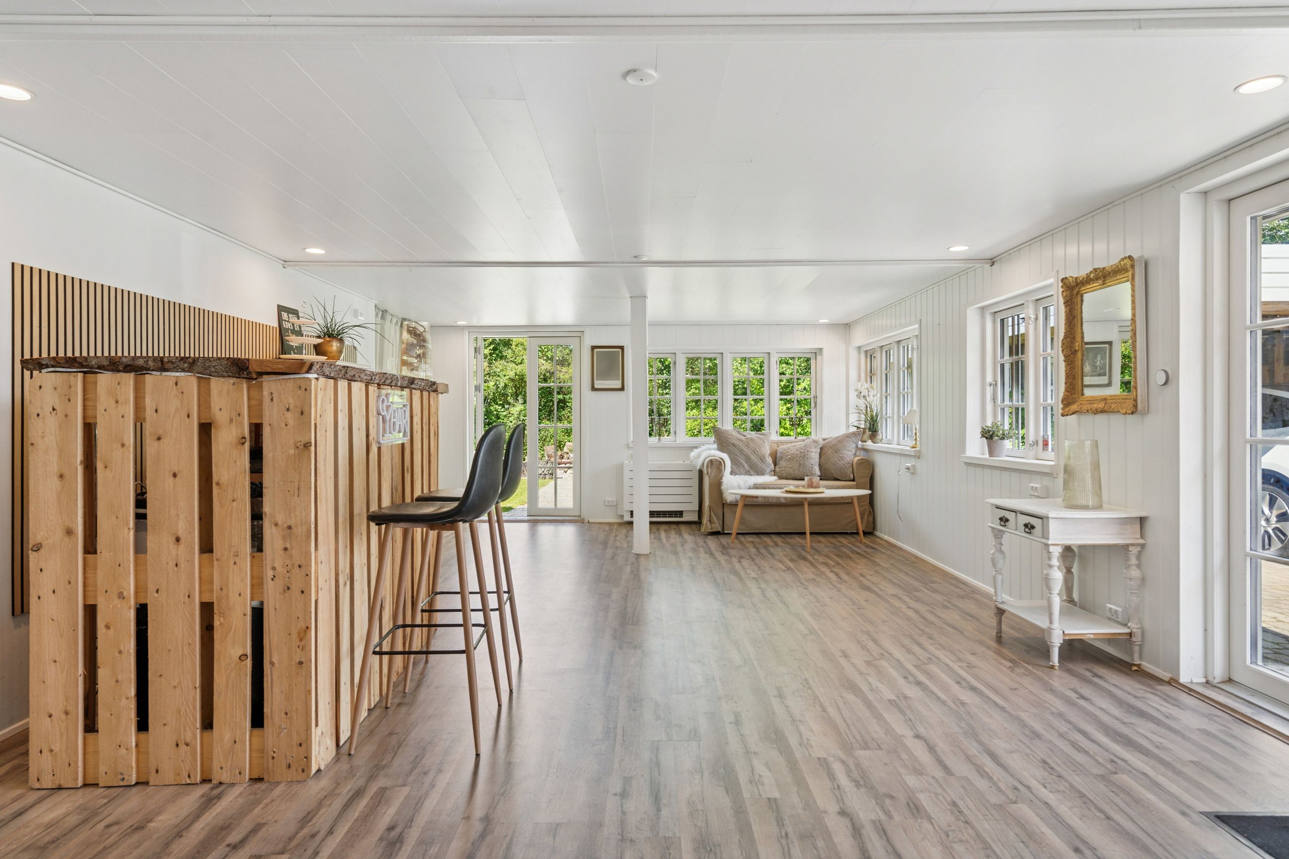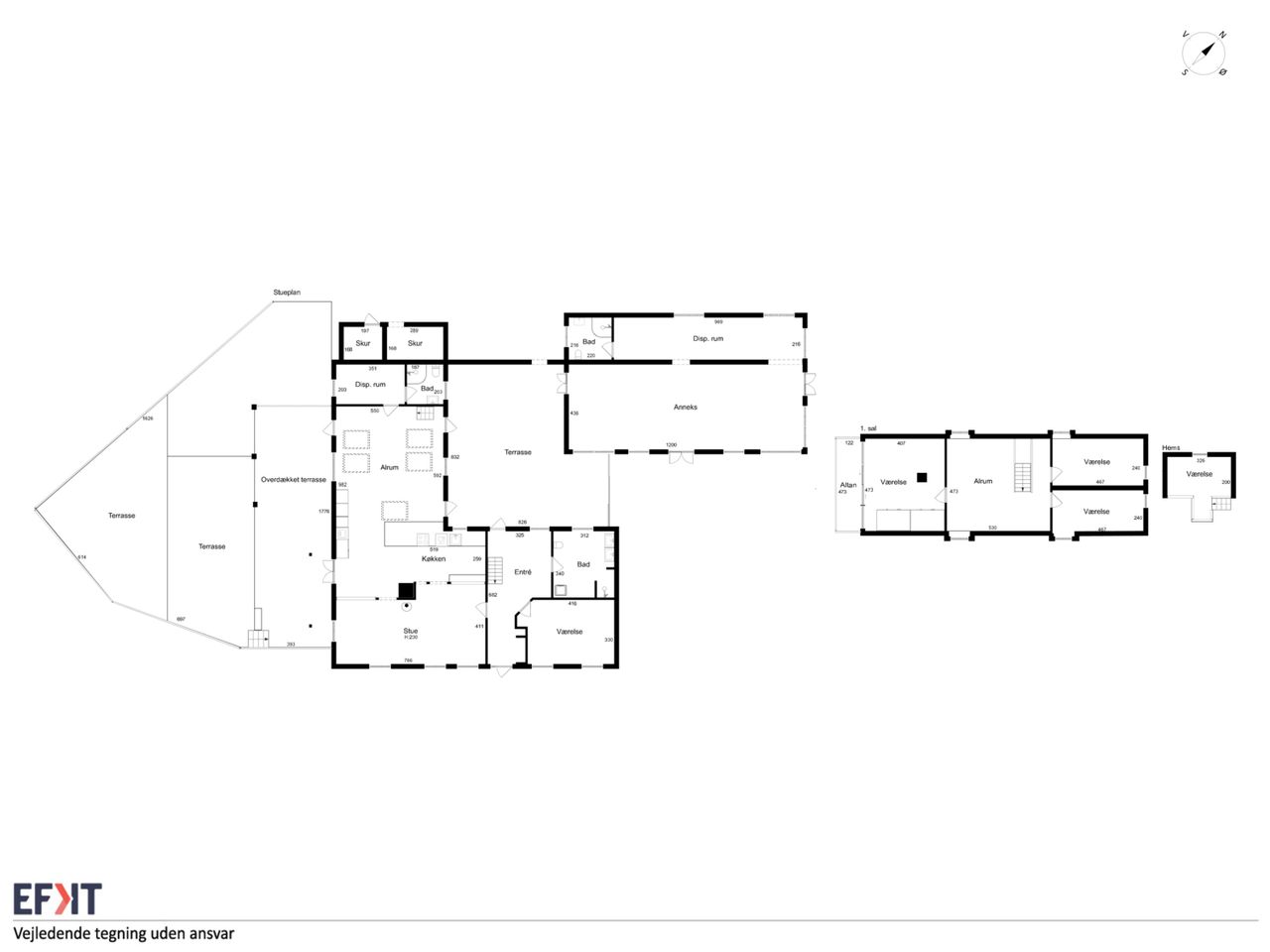 Det imponerende anneks på 100 kvadratmeter tilbyder yderligere muligheder; her findes et badeværelse samt plads til enten hobbyaktiviteter eller kontorarbejde - perfekt for dem der arbejder hjemmefra eller ønsker ekstra plads til kreative projekter.