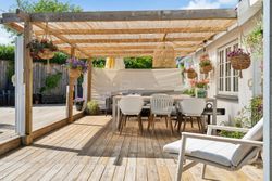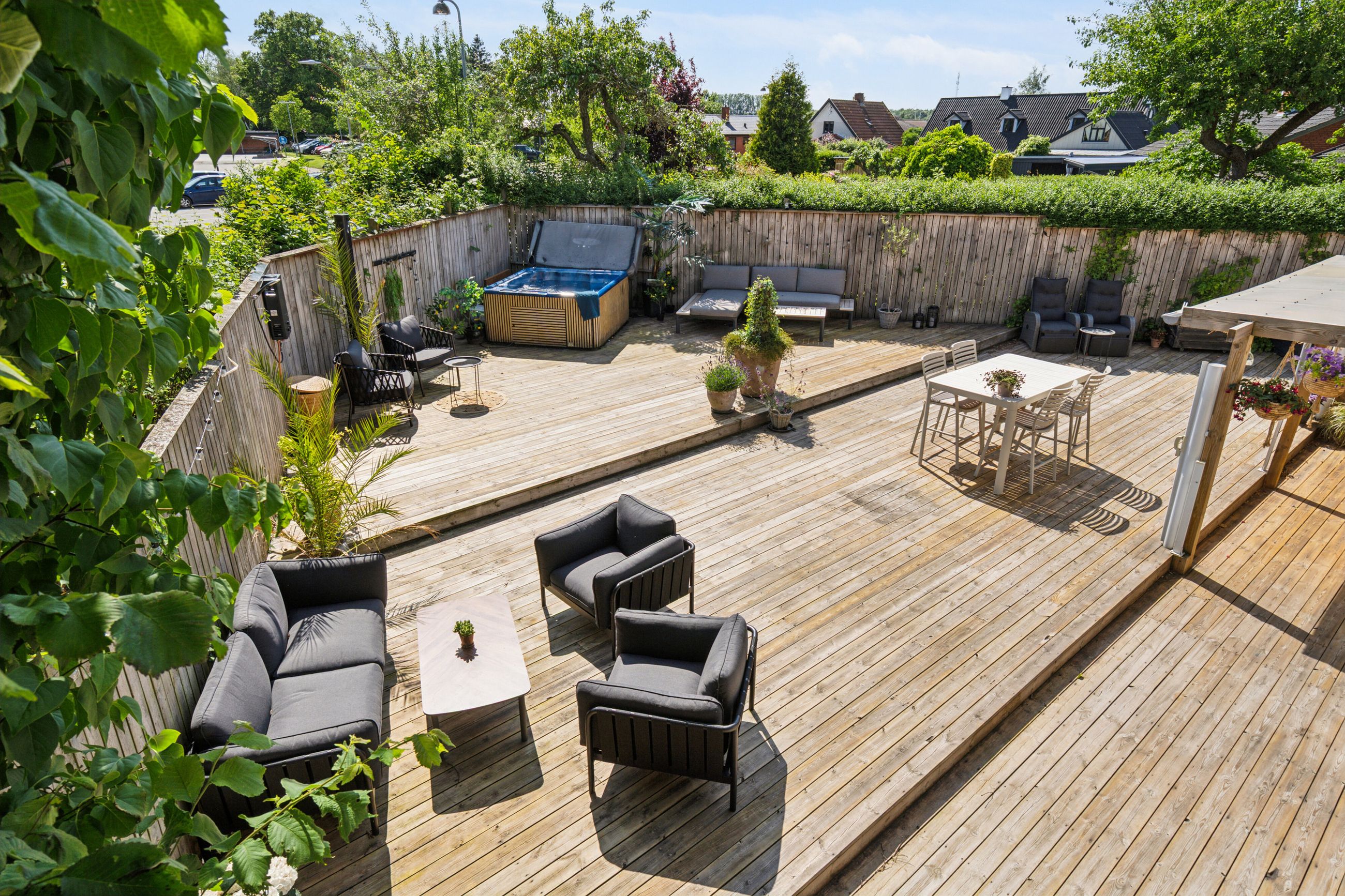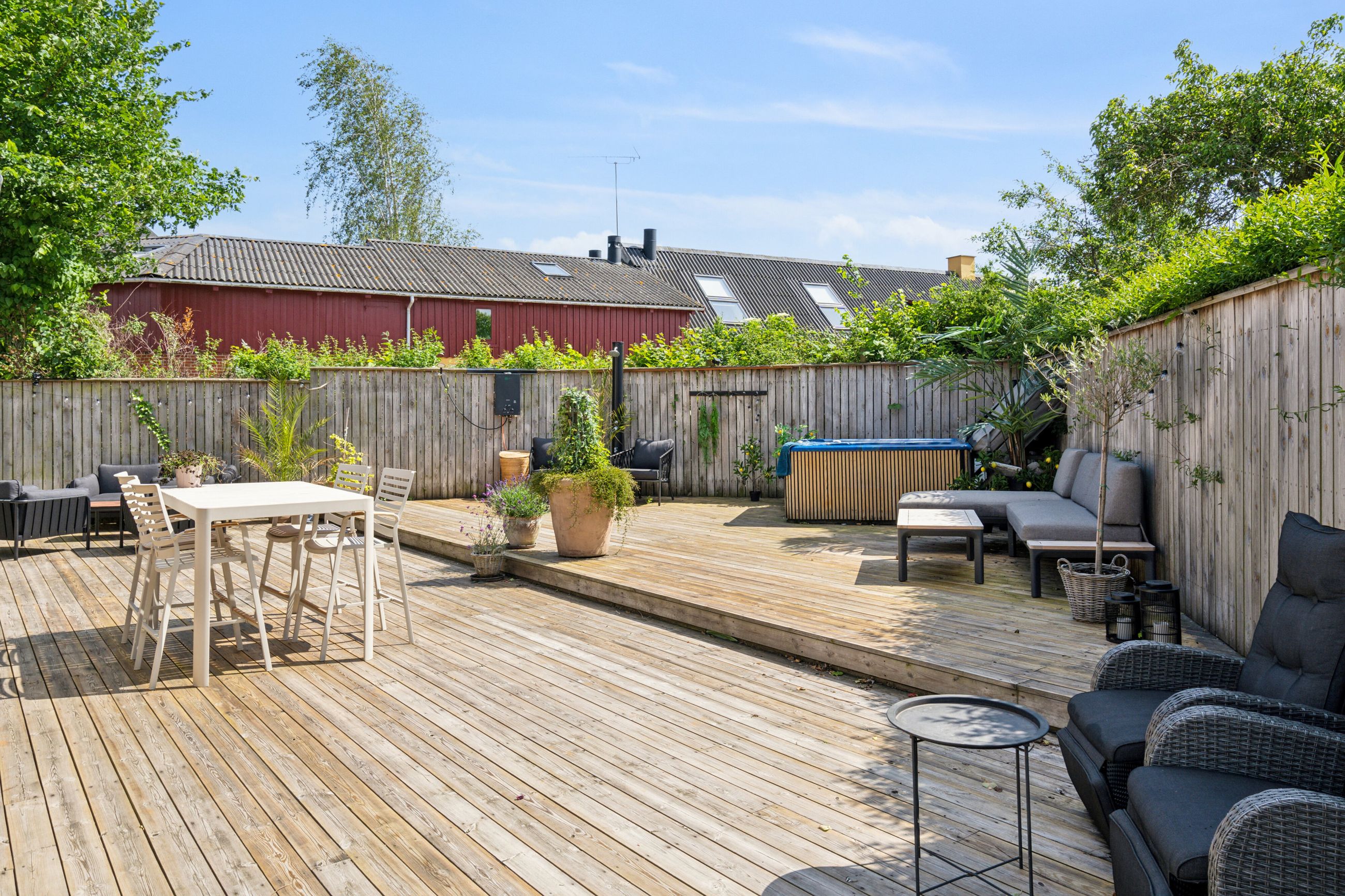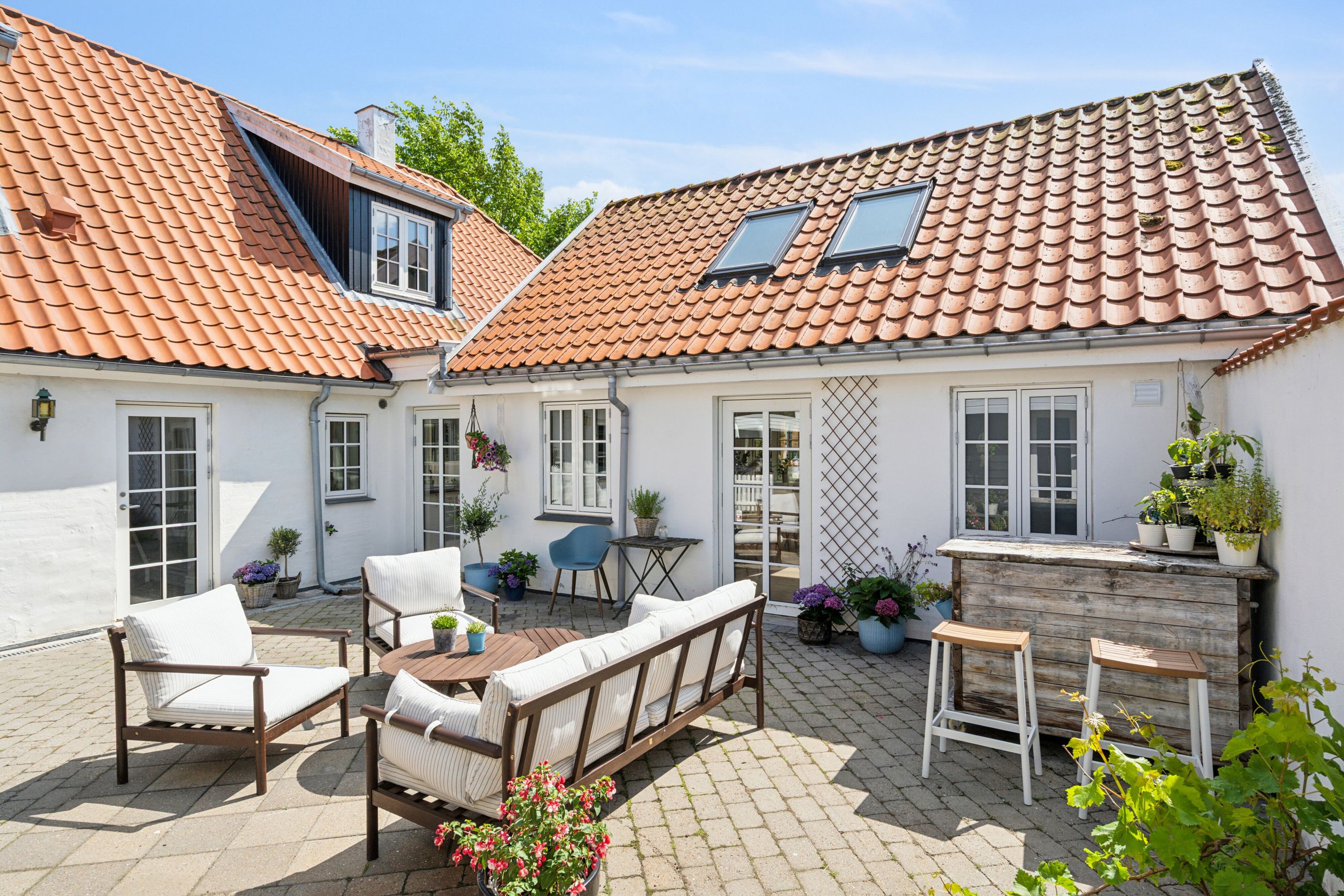 Ejendommen har fået nye vinduer i 2019 og et tag fra 2007, hvilket vidner om løbende vedligeholdelse af høj kvalitet. Den store terrasse inviterer til udendørs afslapning og hyggelige stunder under åben himmel, mens haven er opdelt i forskellige zoner for at nyde solen hele dagen.