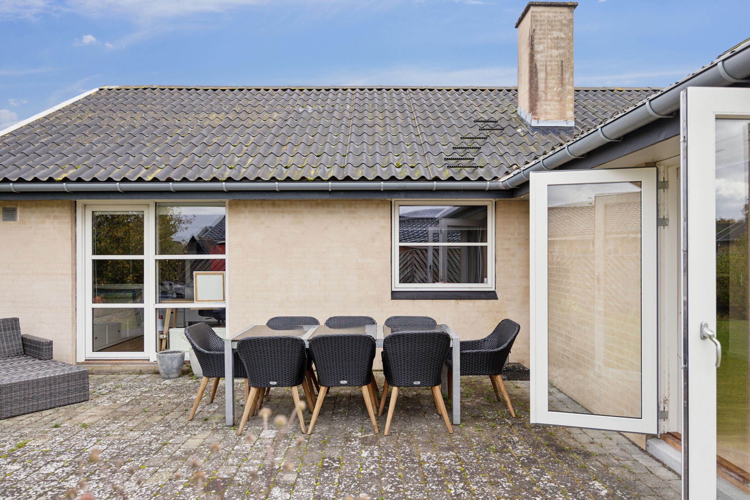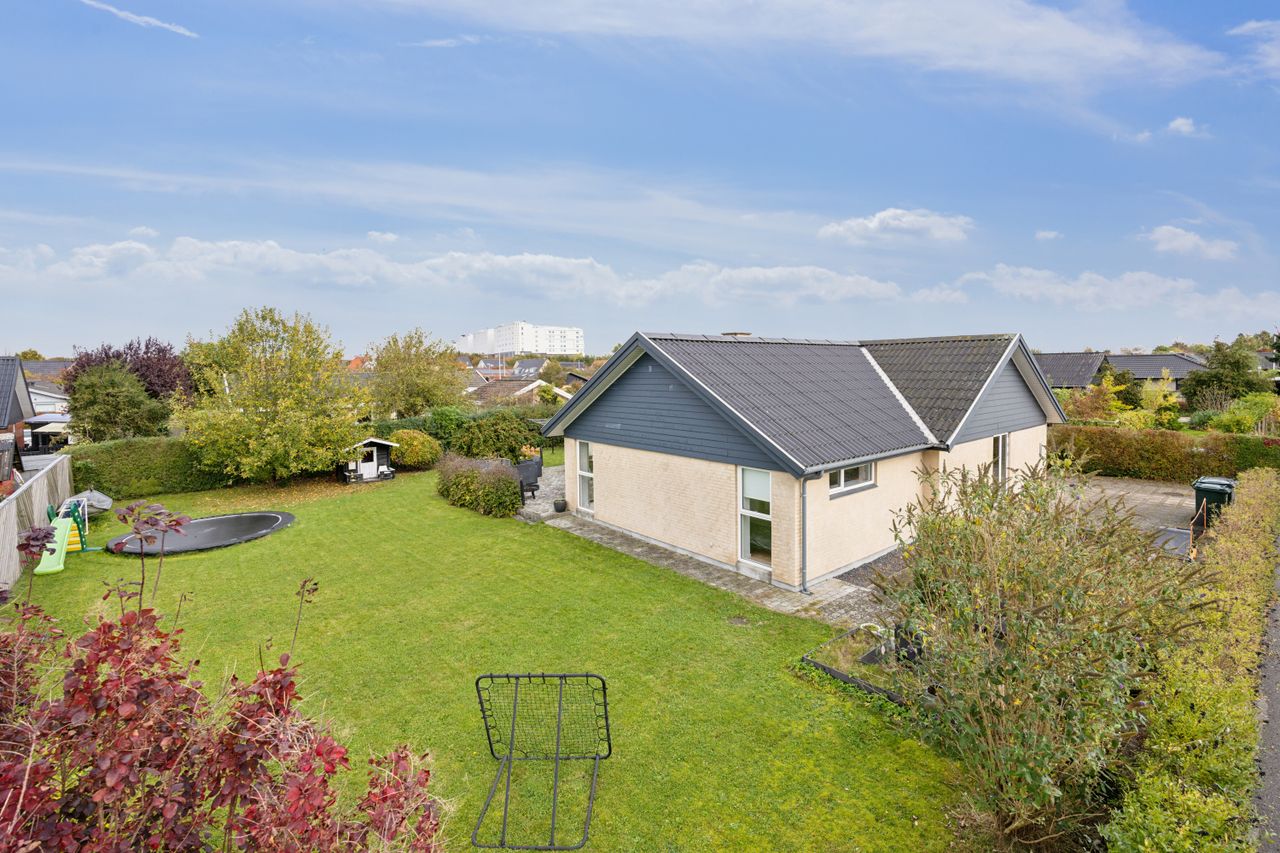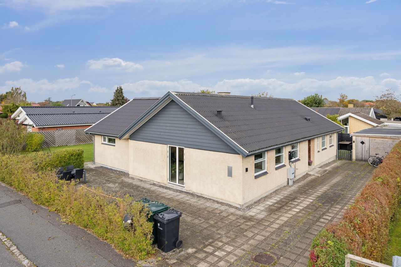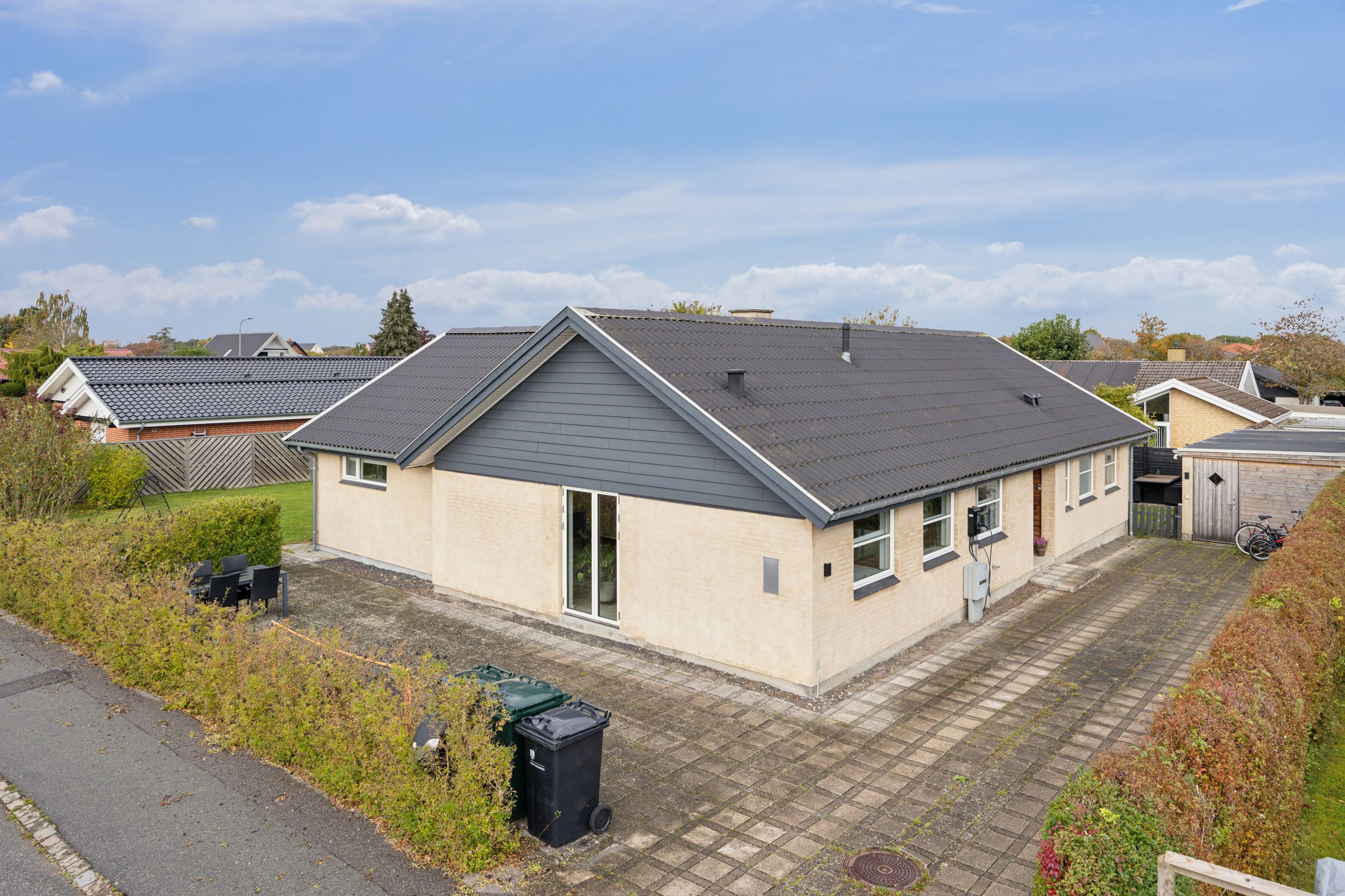 Udendørs venter en skøn sydvestvendt have, hvor solen kan nydes hele dagen lang. En dejlig terrasse strækker sig langs huset og giver rig mulighed for afslapning eller grillhygge om sommeren. Derudover er der plads til bilen i indkørslen samt et skur til opbevaring.