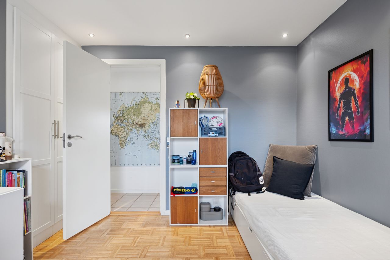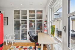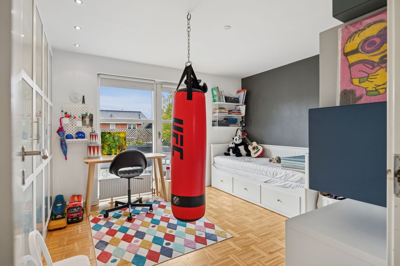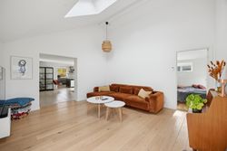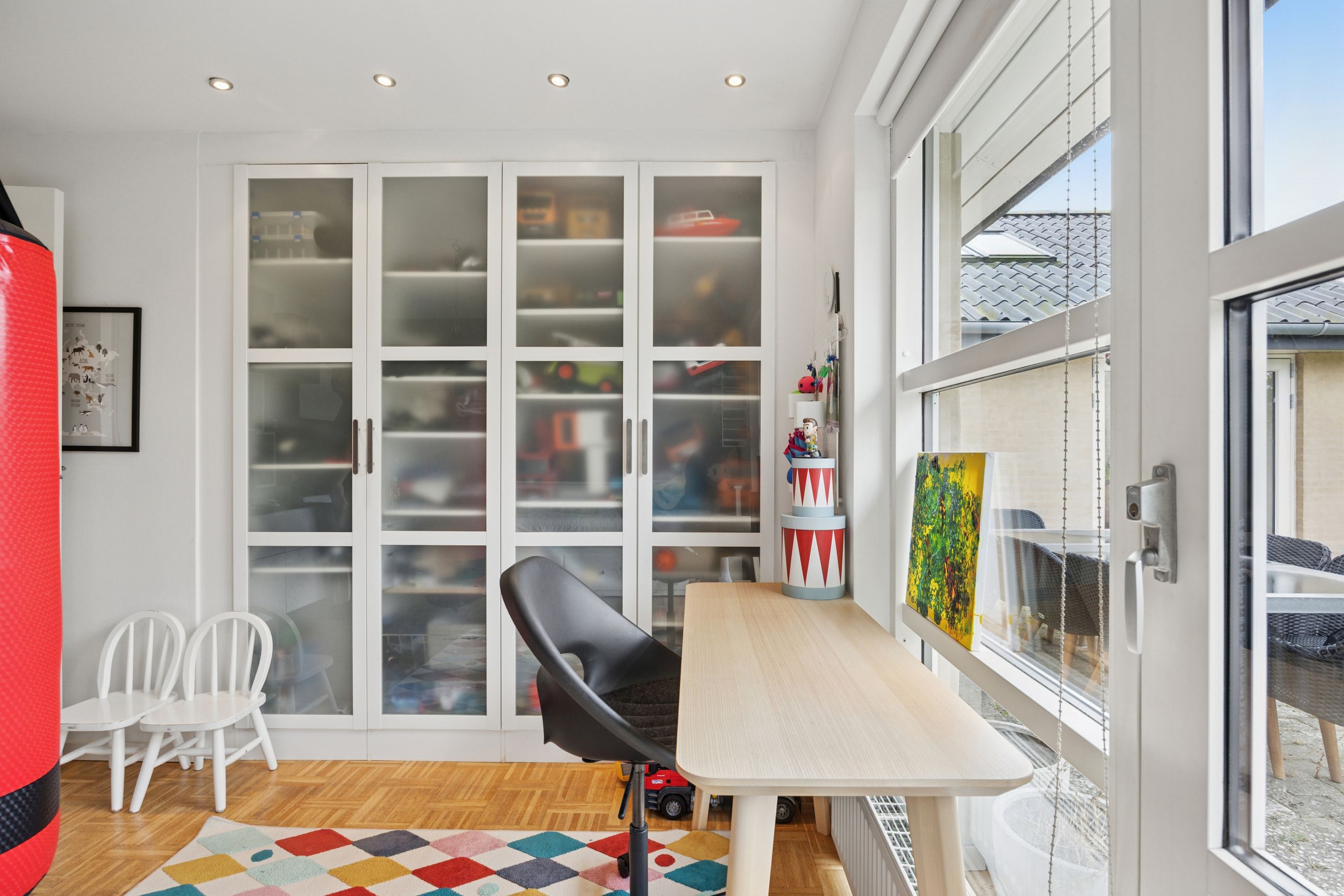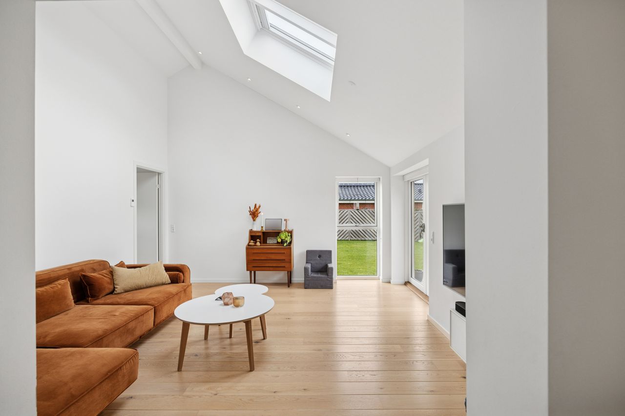 Det store alrum modtager et smukt lysindfald fra flere sider, hvilket skaber en lys og imødekommende atmosfære. Fra alrummet er der adgang til den nyere tilbygning, som rummer en ekstra stue med loft til kip samt ovenlys vinduer – her kan familien nyde hyggelige stunder året rundt. Tilbygningen inkluderer også et ekstra værelse med walk-in closet samt gulvvarme for optimal komfort.