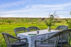 Udendørsområdet er lige så imponerende som indendørsfaciliteterne. Med privat udeområde kan du nyde solen uforstyrret eller arrangere hyggelige grillaftener med venner og familie. Den naturskønne beliggenhed ud til strandengen og skoven tæt på inviterer til lange gåture eller cykelture i det fri. Gode badestrande og skøn natur kan nås lige udenfor døren.
