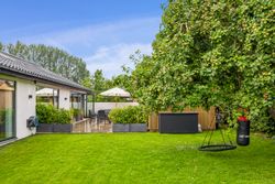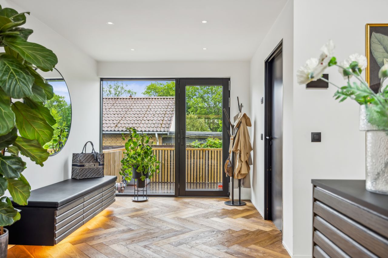Velkommen til denne enestående villa, der forener luksus, design og funktionalitet på højeste niveau. Med et boligareal på 184 kvadratmeter, oprindeligt opført i 1970, har ejendommen gennemgået en omfattende renovering og tilbygning, hvor alt er fornyet fra top til tå – fra det elegante nye tag til moderne installationer. Hver detalje er nøje udvalgt, fra håndtag, stilfulde døre og vinduer til det eksklusive Svanekøkken og badeværelser med Vola-armaturer og store, lækre fliser.
