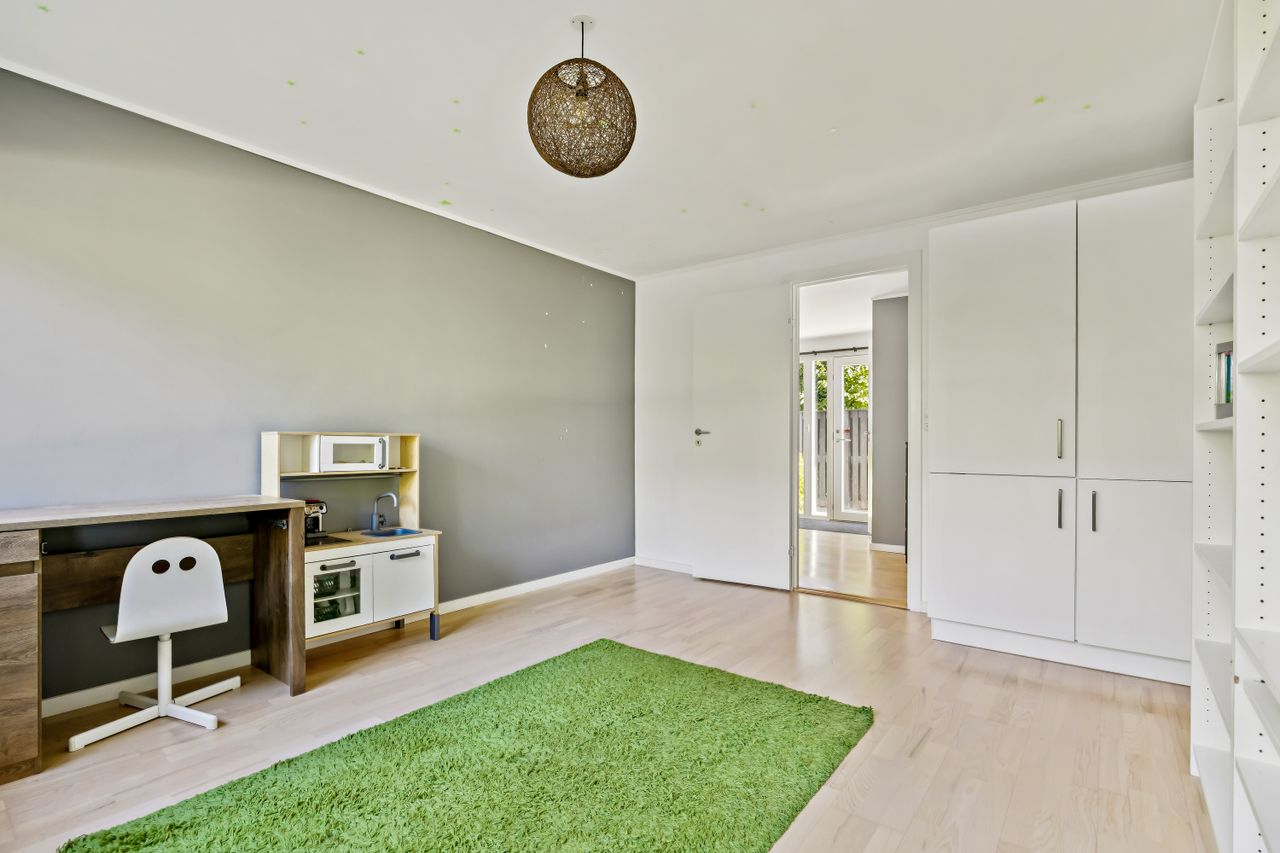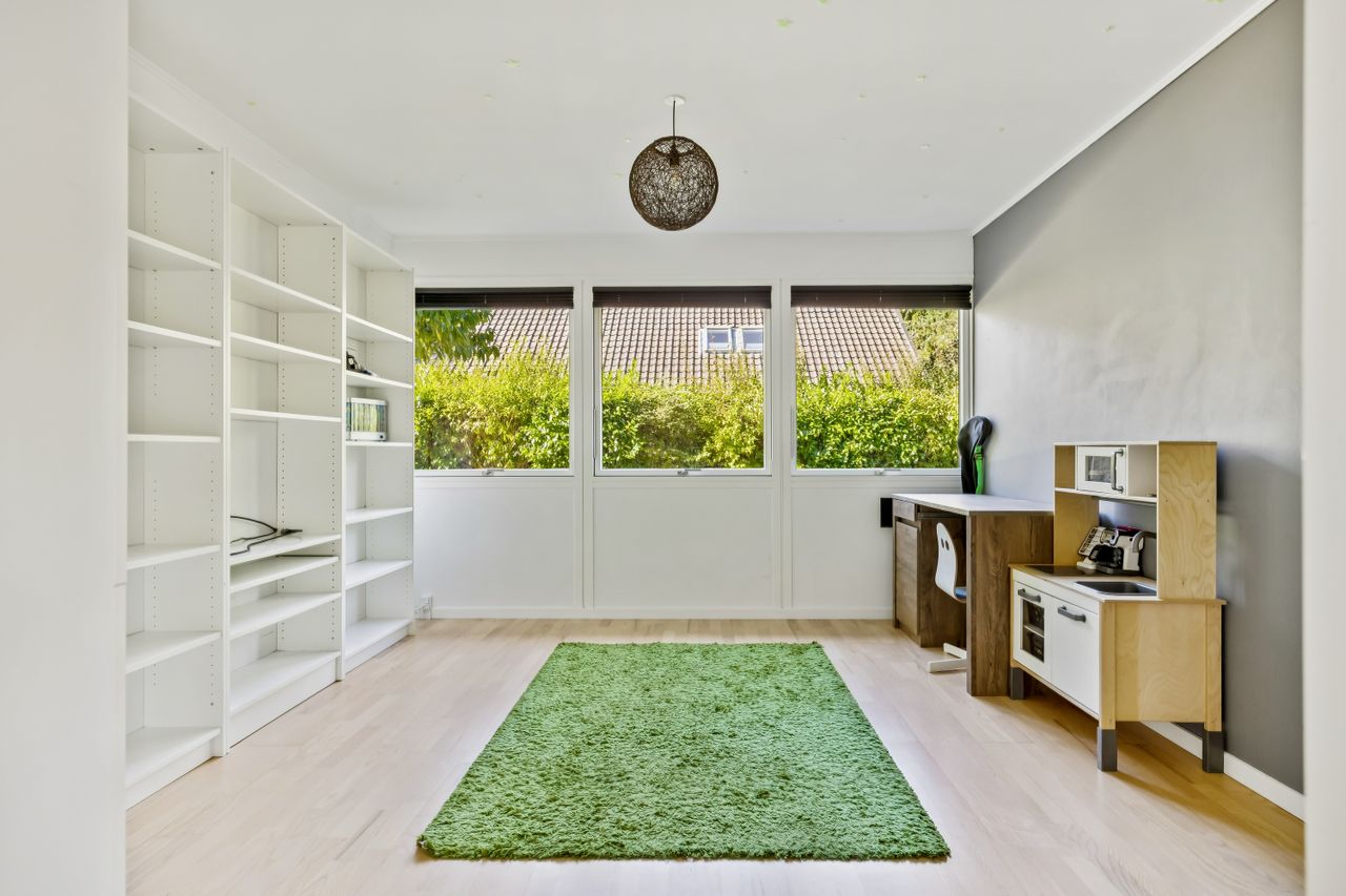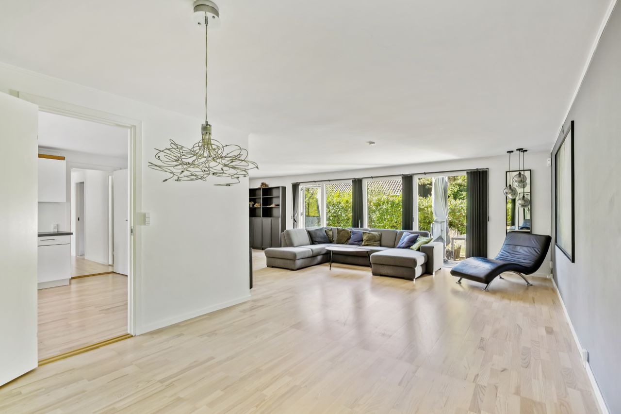 Velkommen til denne skønne familie villa, der tilbyder et boligareal på hele 163 kvadratmeter. Bygget i 1972, præsenterer denne charmerende ejendom sig som en ideel ramme for den moderne familie. Villaen er opført i ét plan og byder på en stor vinkelret spise- og opholdsstue, hvor familien kan samles til hyggelige stunder. De tre lyse værelser giver masser af plads til både børn og voksne, mens det mindre værelse tidligere har tjent som hjemmekontor – perfekt til dem, der arbejder hjemmefra.