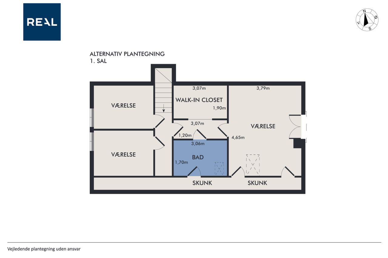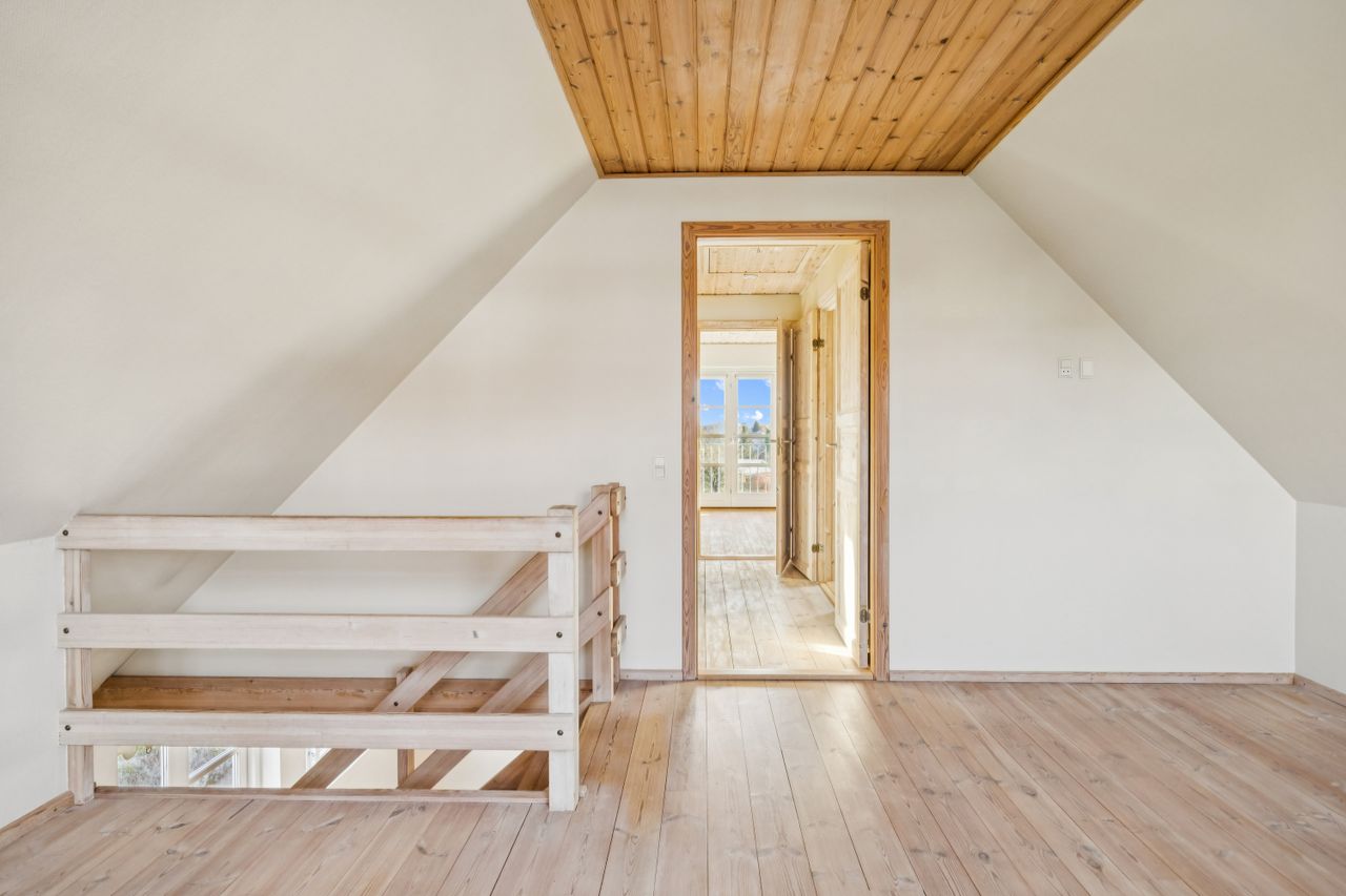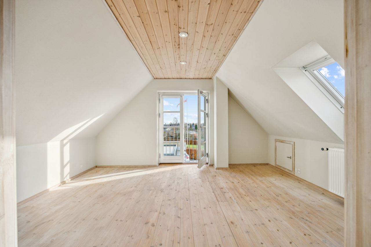 På første sal finder du en hyggelig stue samt et ekstra værelse og endnu et rum, som let kan omdannes til to yderligere værelser hvis familien vokser eller behovene ændrer sig. Der er også mulighed for at etablere et badeværelse i det ene værelse – se alternativ planløsning for inspiration. Fra første sal får du desuden en flot udsigt over de naturskønne Hastrup søer.