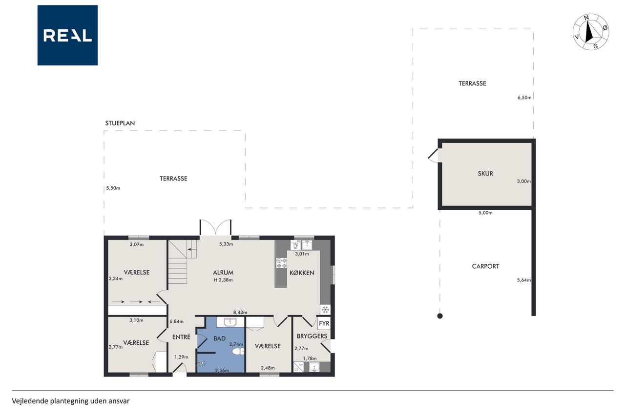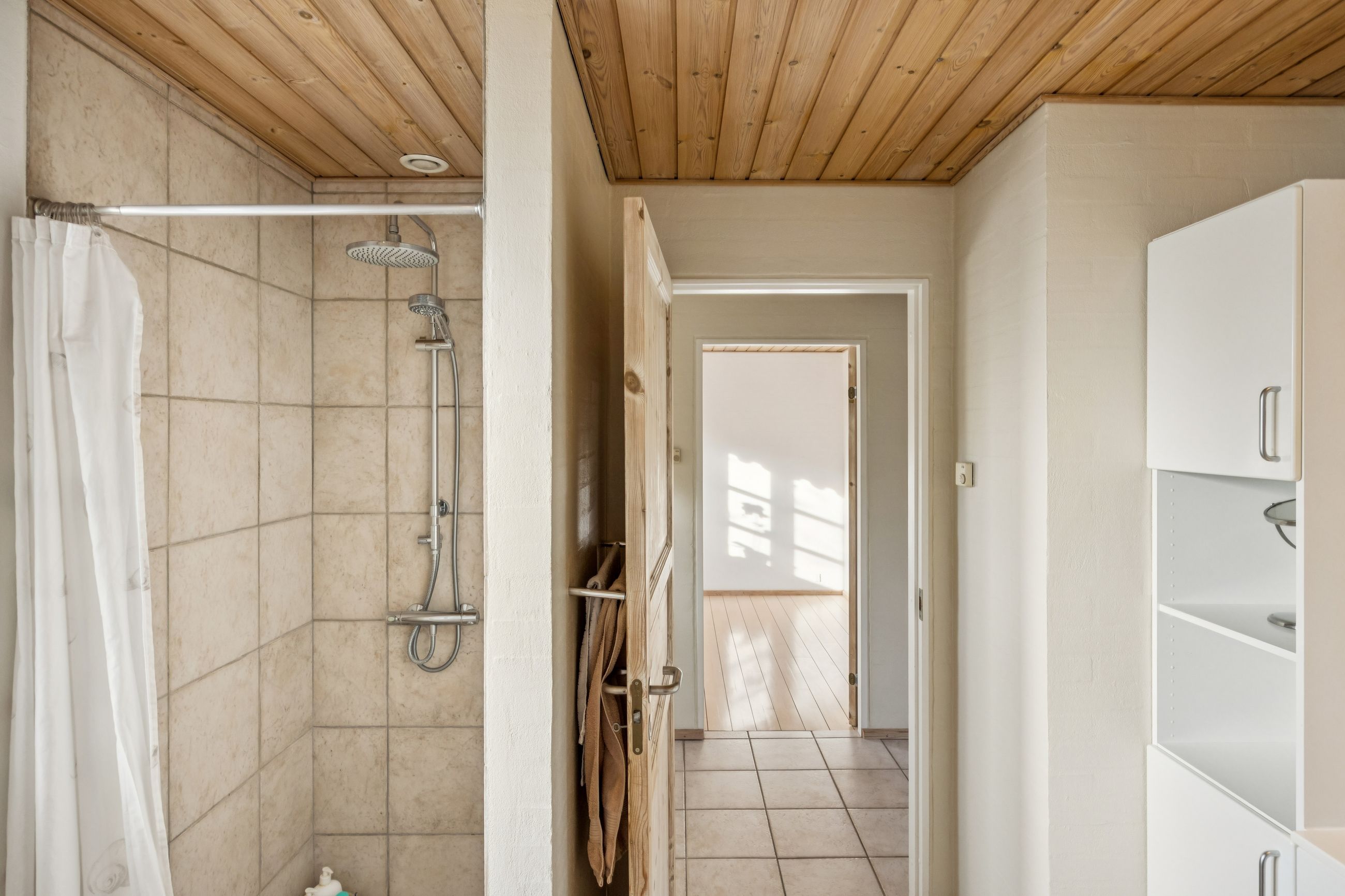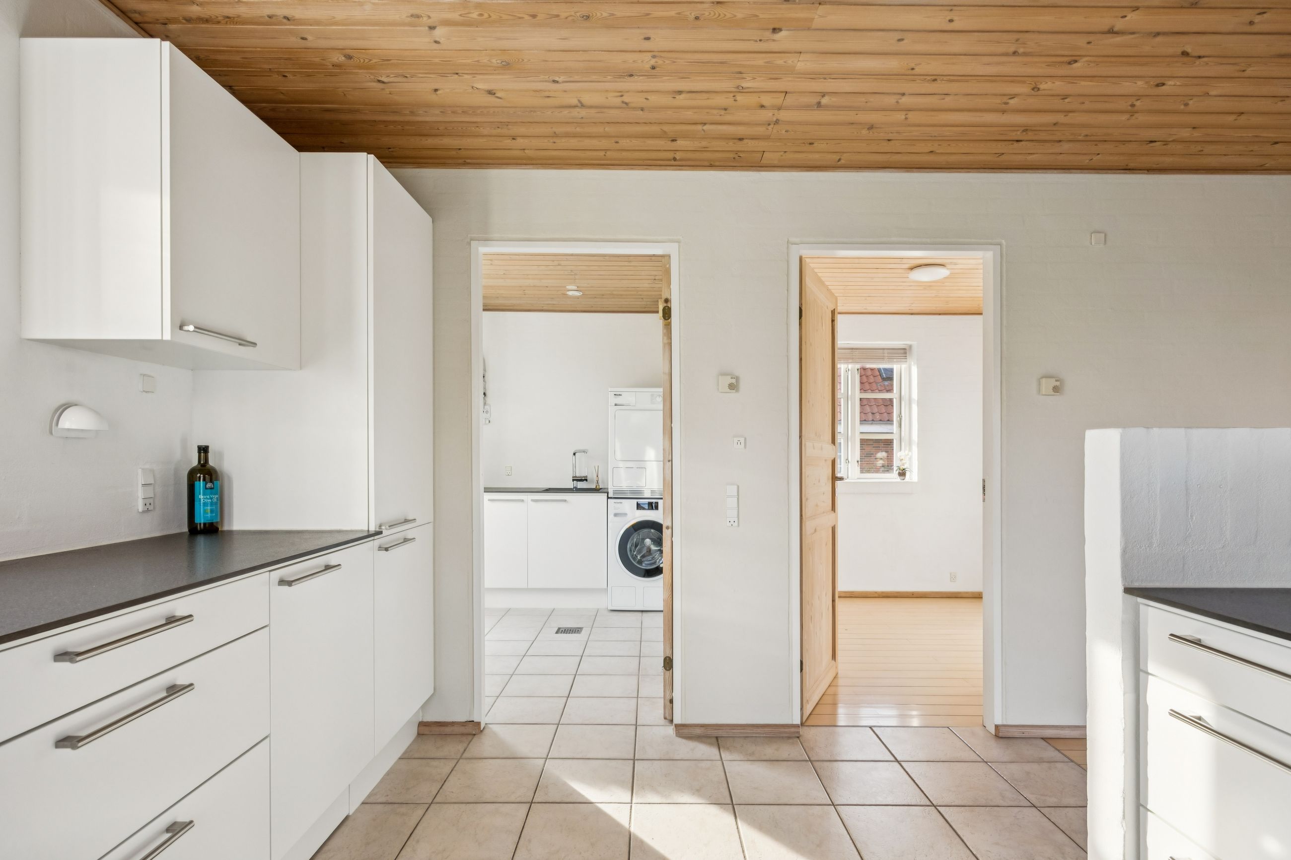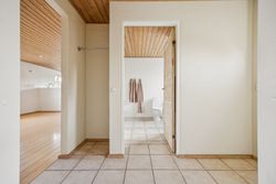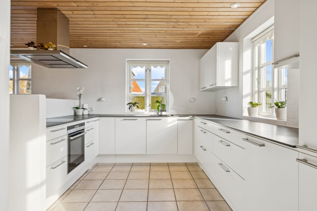Stueplanet rummer tre værelser, hvilket giver mulighed for både soveværelser og kontorplads alt efter behov. Hvis ønsket er et større køkken-alrum, kan man nemt åbne op til det ene værelse. Det pæne badeværelse og bryggerset fuldender stueplanet sammen med behagelig gulvvarme, der sikrer komfort året rundt.
